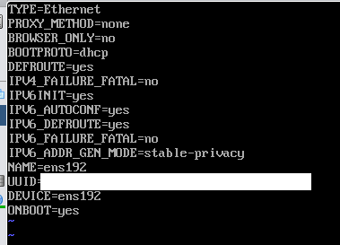 # vi /etc/sysconfig/network-scripts/ifcfg-ens192