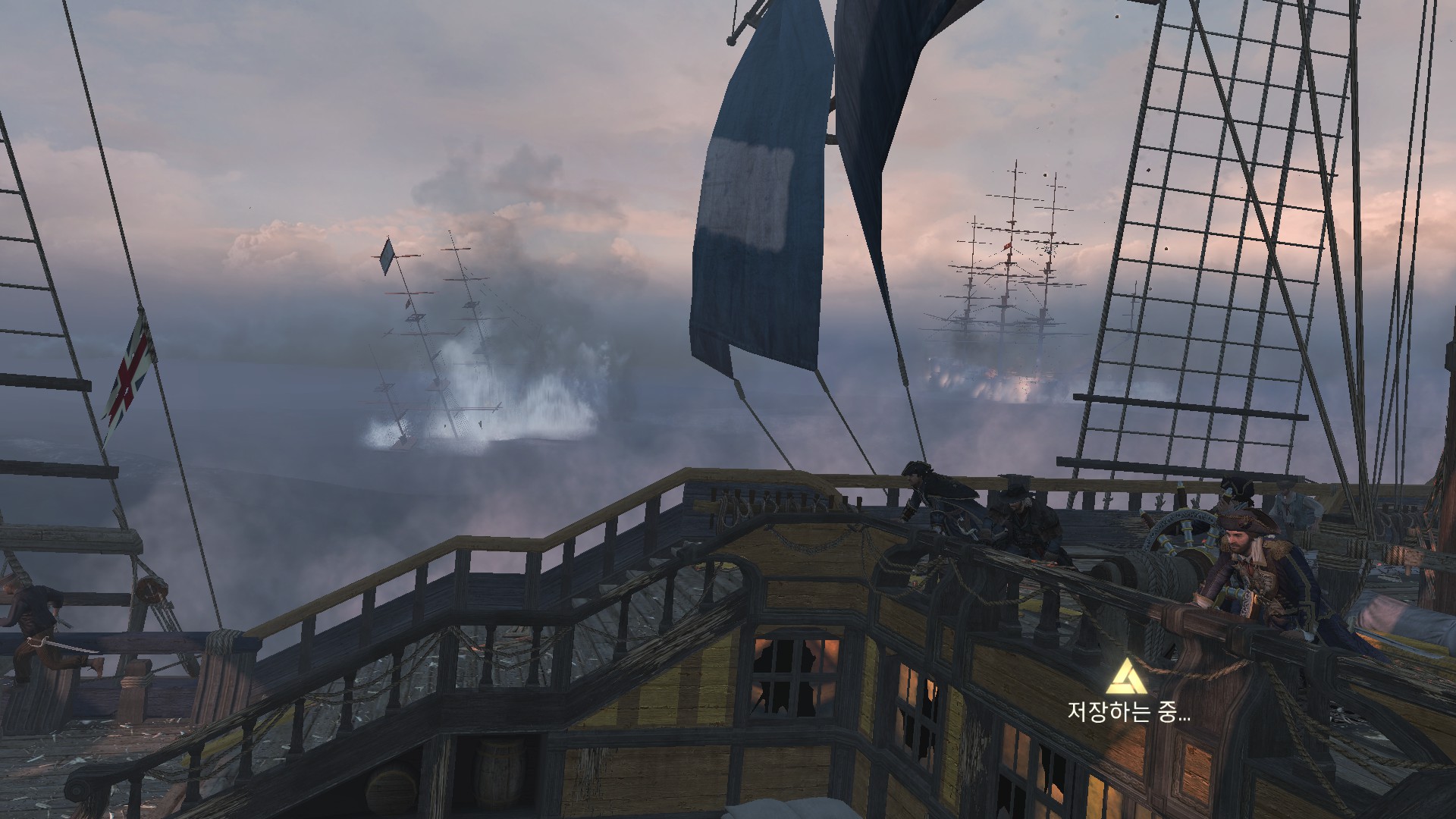 영국함대와 프랑스함대가 해전을 벌이고 있습니다.