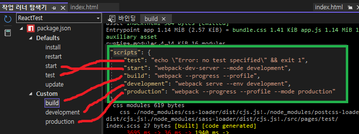 'devDependencies'는 개발에서 빌드까지를 담당하는 패키지를 넣는 곳입니다.