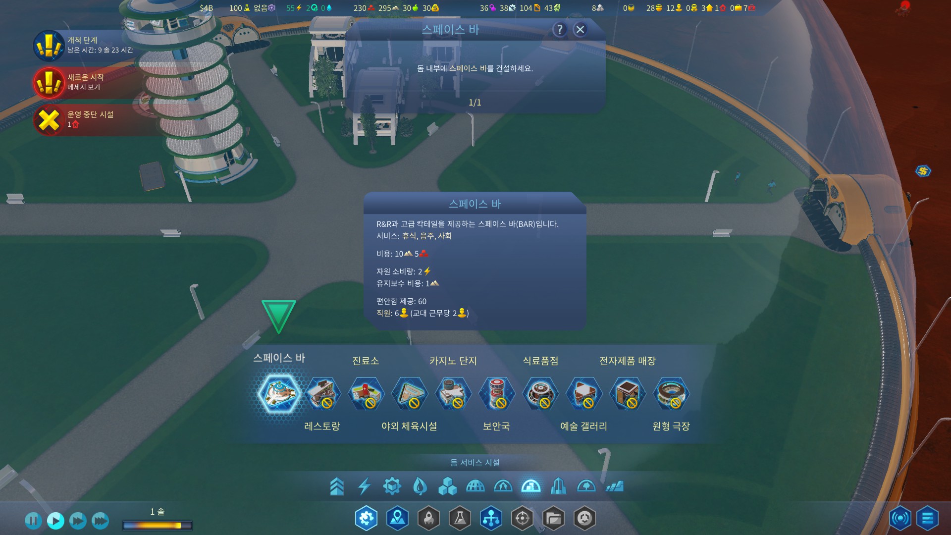 거주민을 위한 돔을 건설하고 각종시설을 짓습니다.
