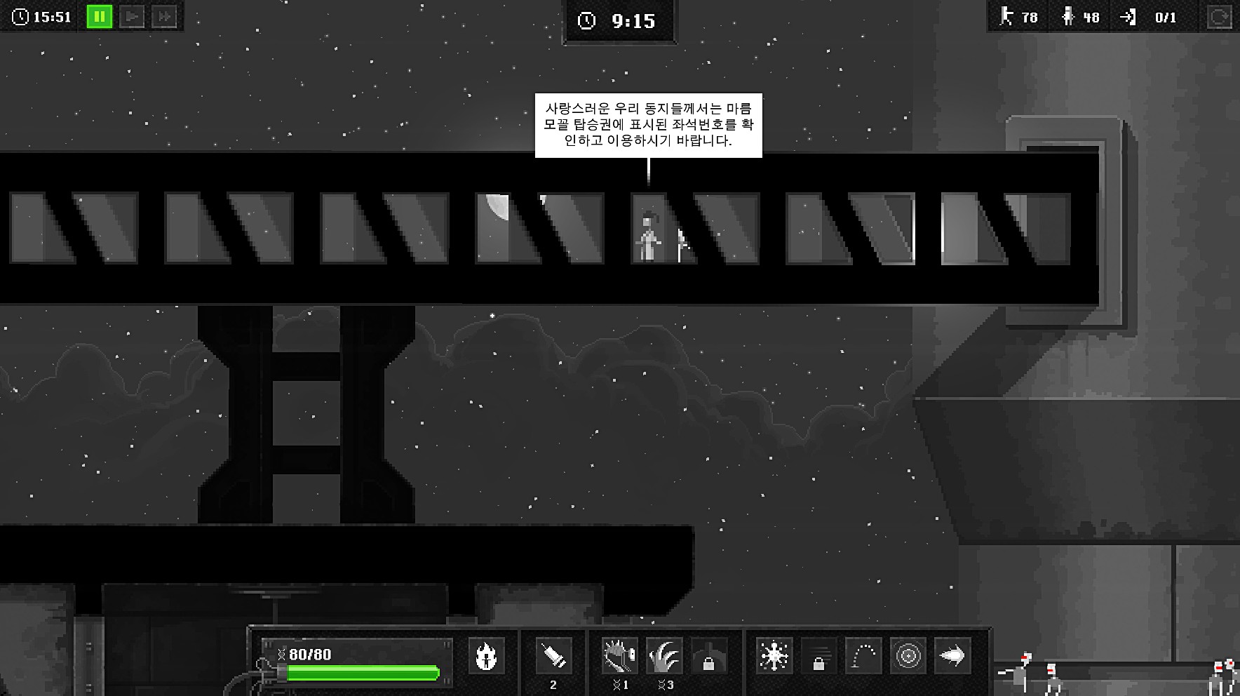 우주선에 타기위해 고군분투하는 시나리오입니다.