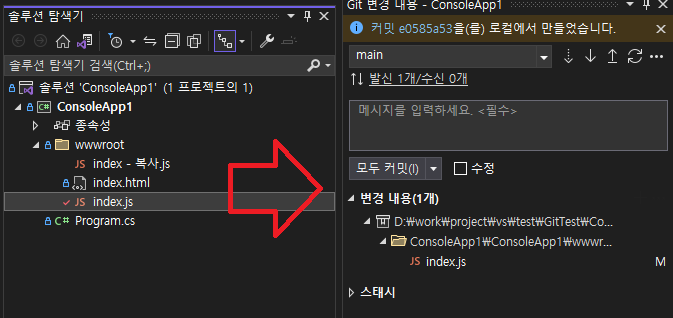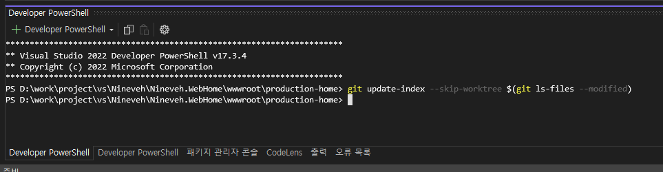 터미널이 열리면 이 솔루션의 깃 설정이 연결되므로