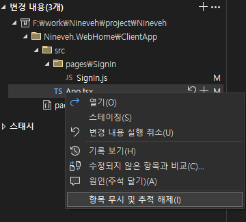 오른쪽 클릭 > 항목 무시 및 추적 해제