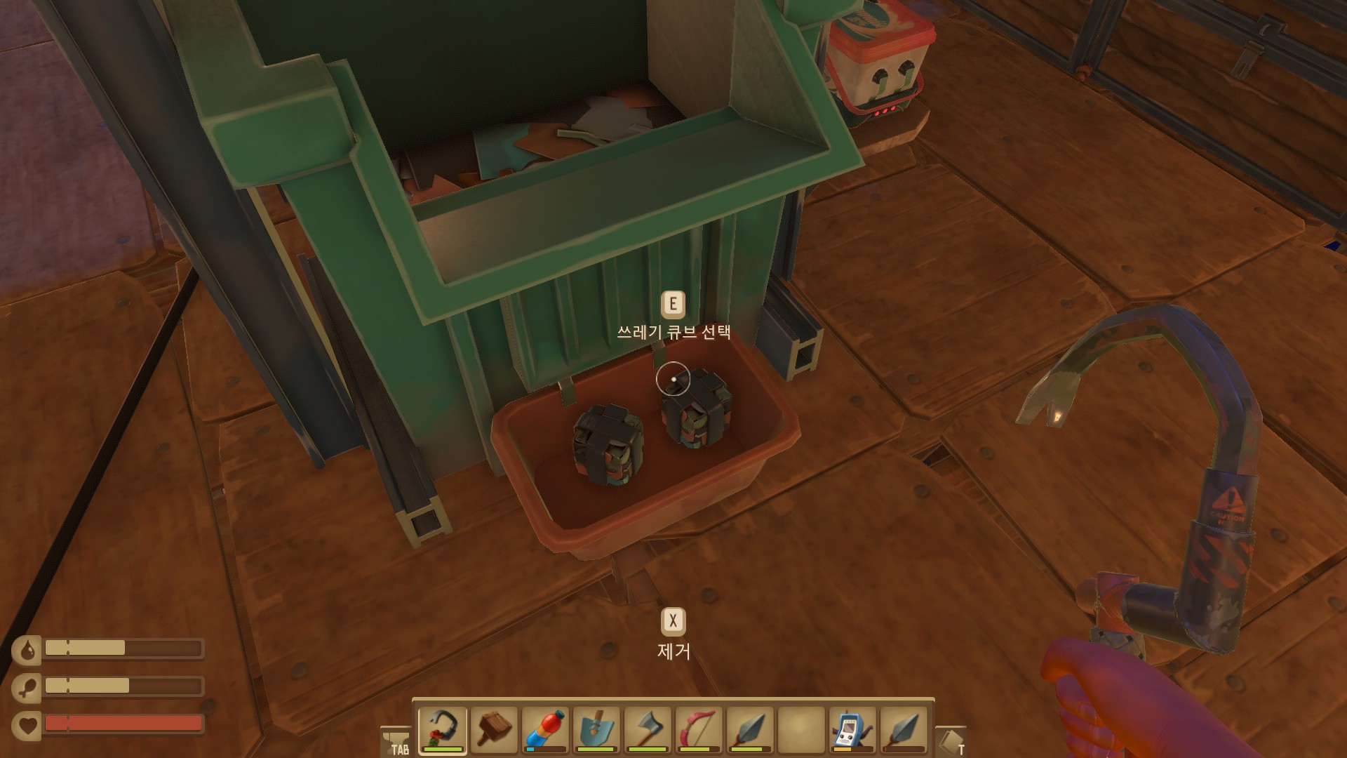 재활용기는 잡템을 넣으면 큐브로 만들어주는 기계입니다.
