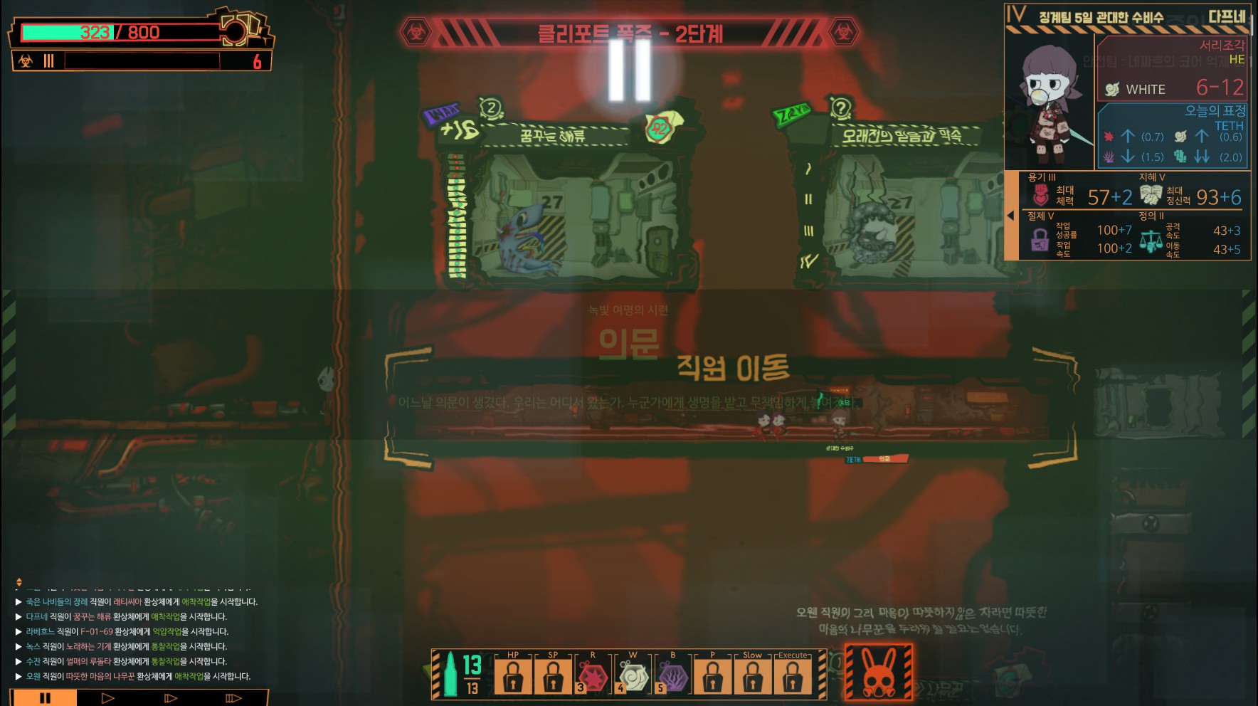 정신력 체력이 회복되지 않으니 계산 잘해가며 싸워야 합니다.