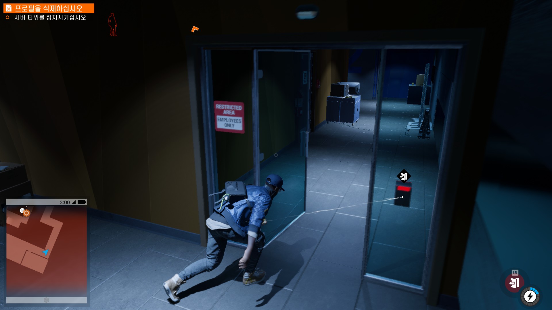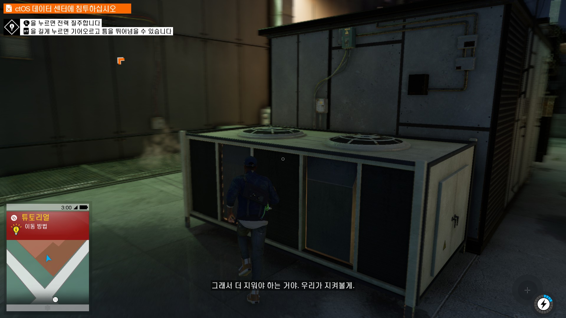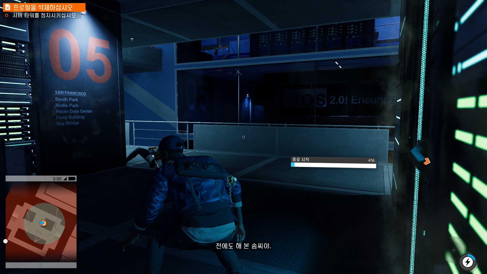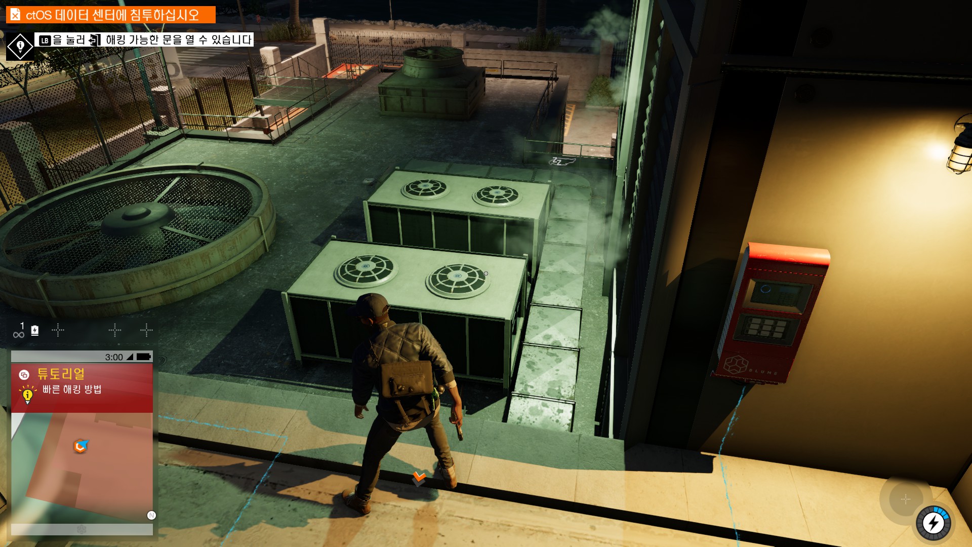 마커스가 시작부터 물리적 해킹을 하러 돌입하고 있습니다.