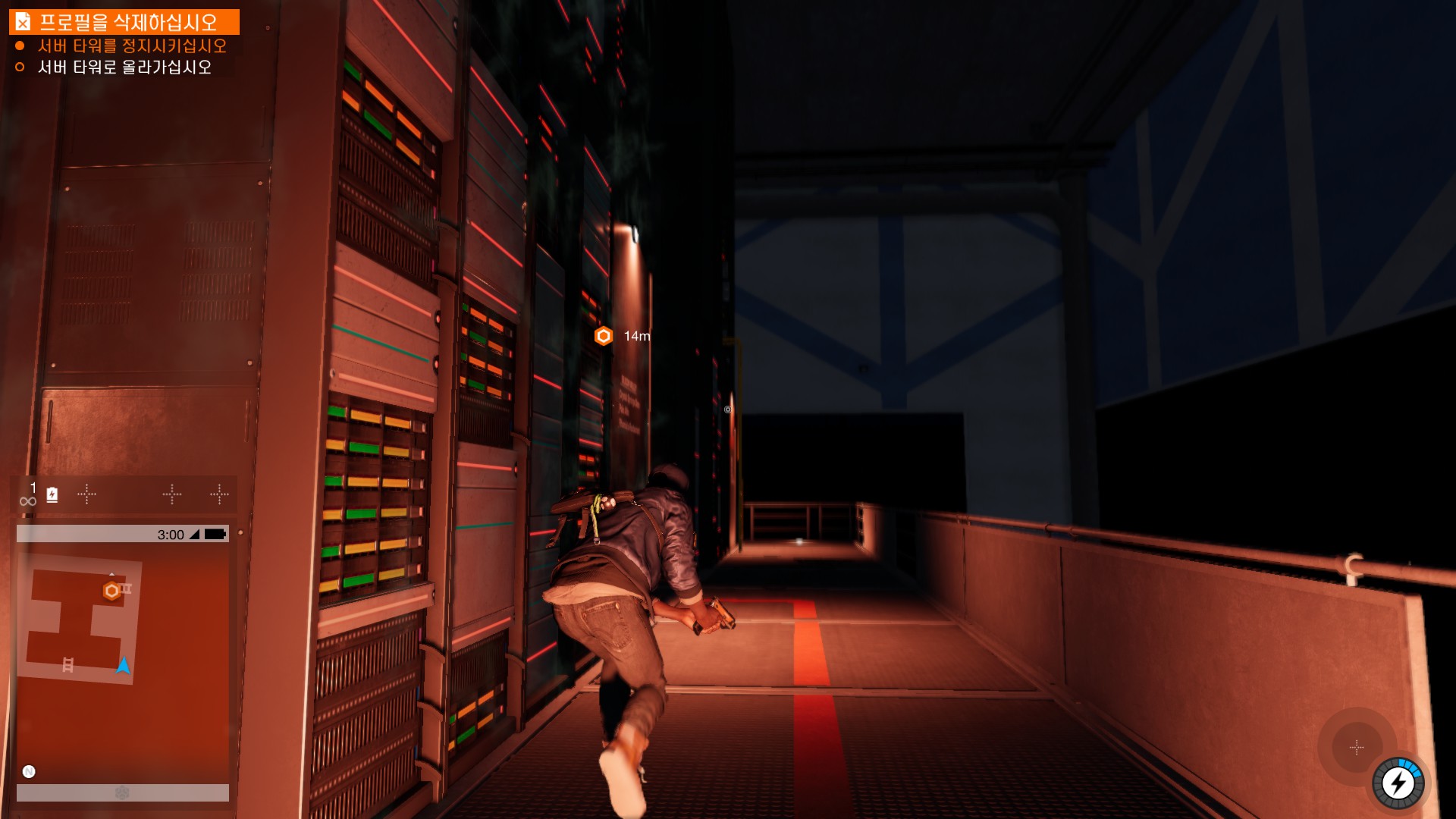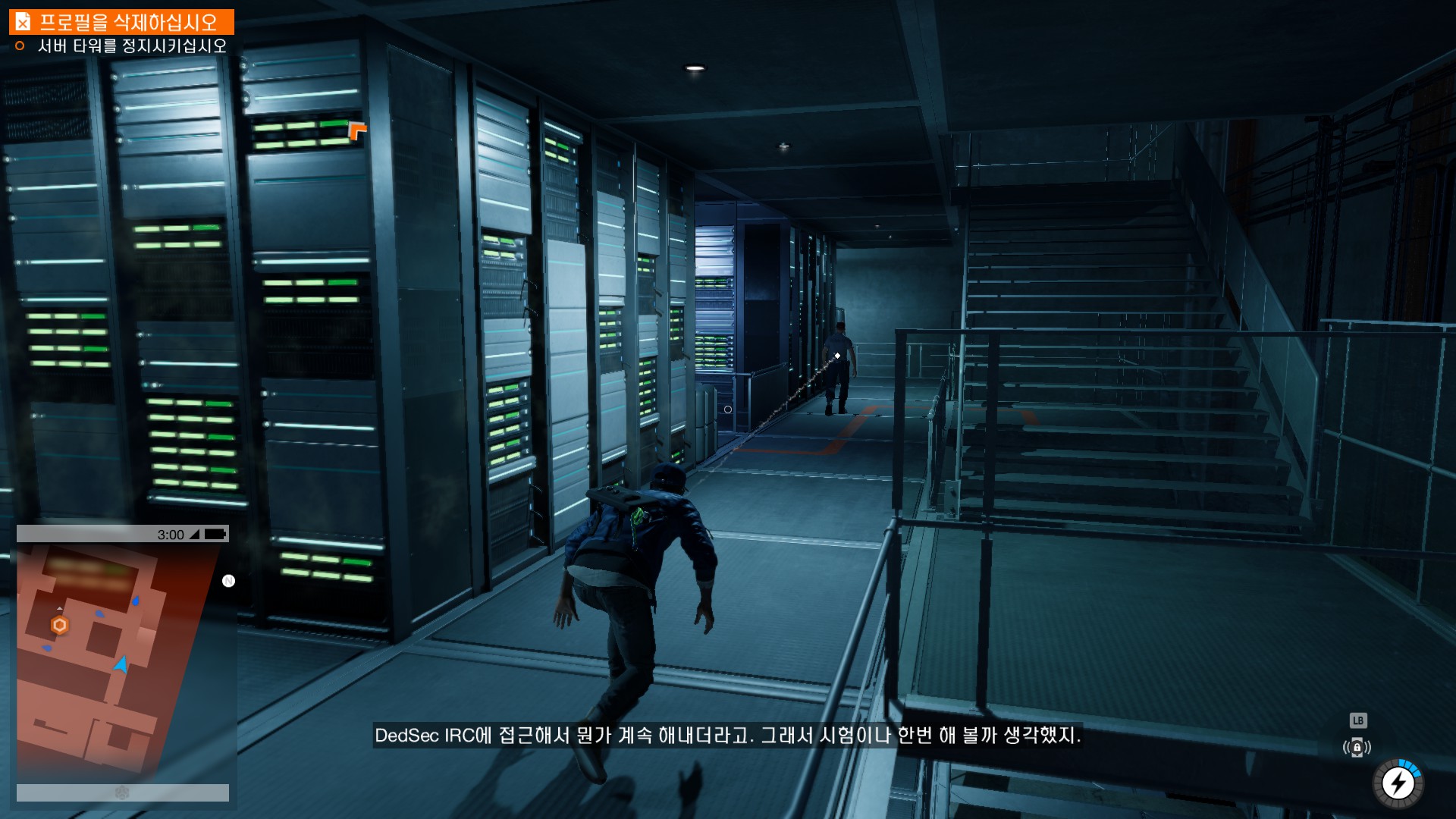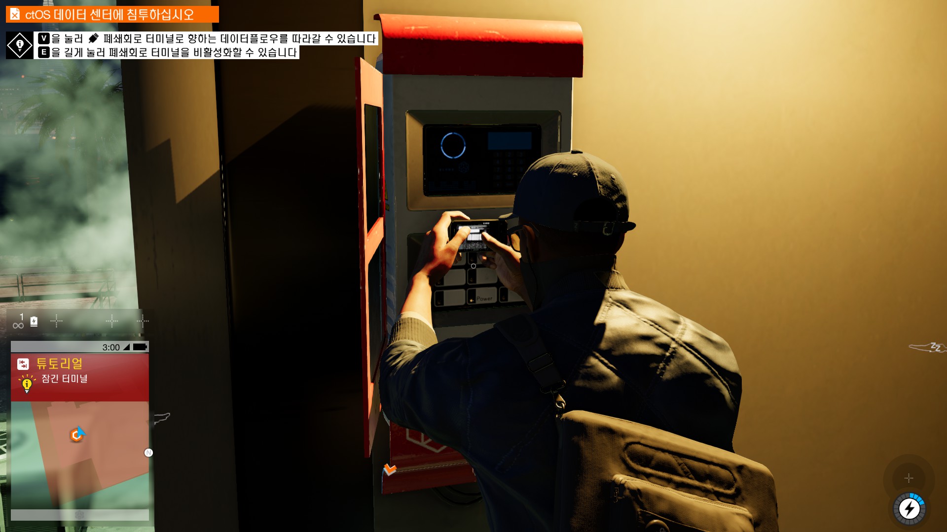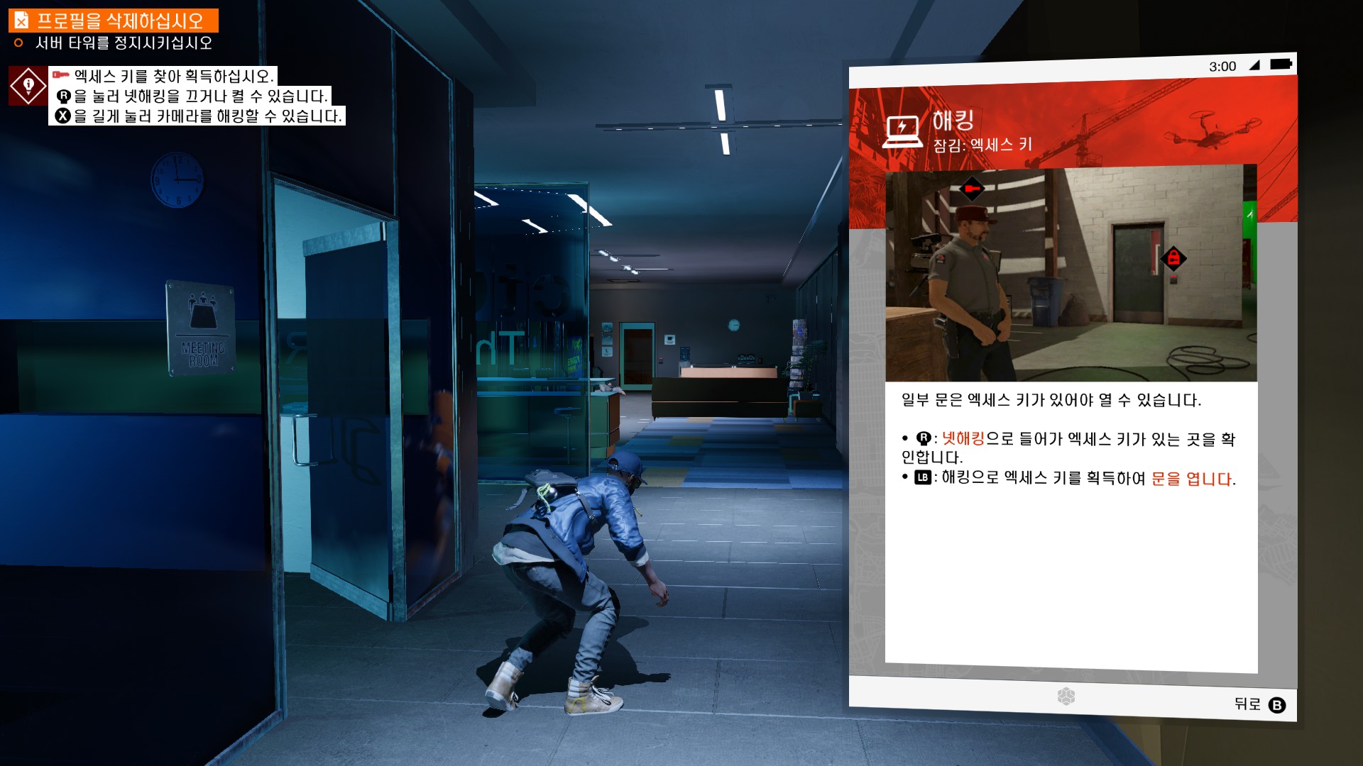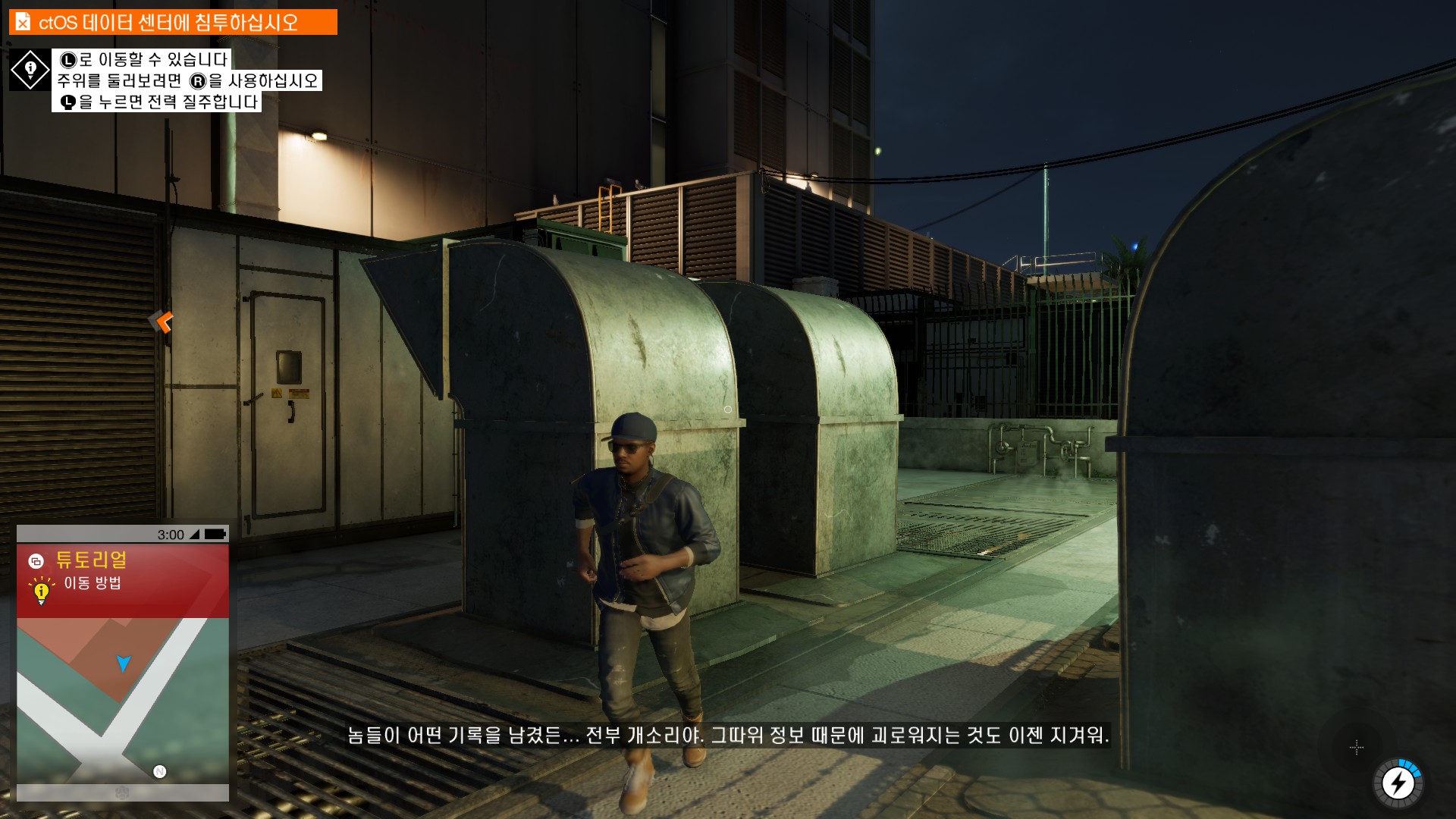 마커스가 시작부터 물리적 해킹을 하러 돌입하고 있습니다.
