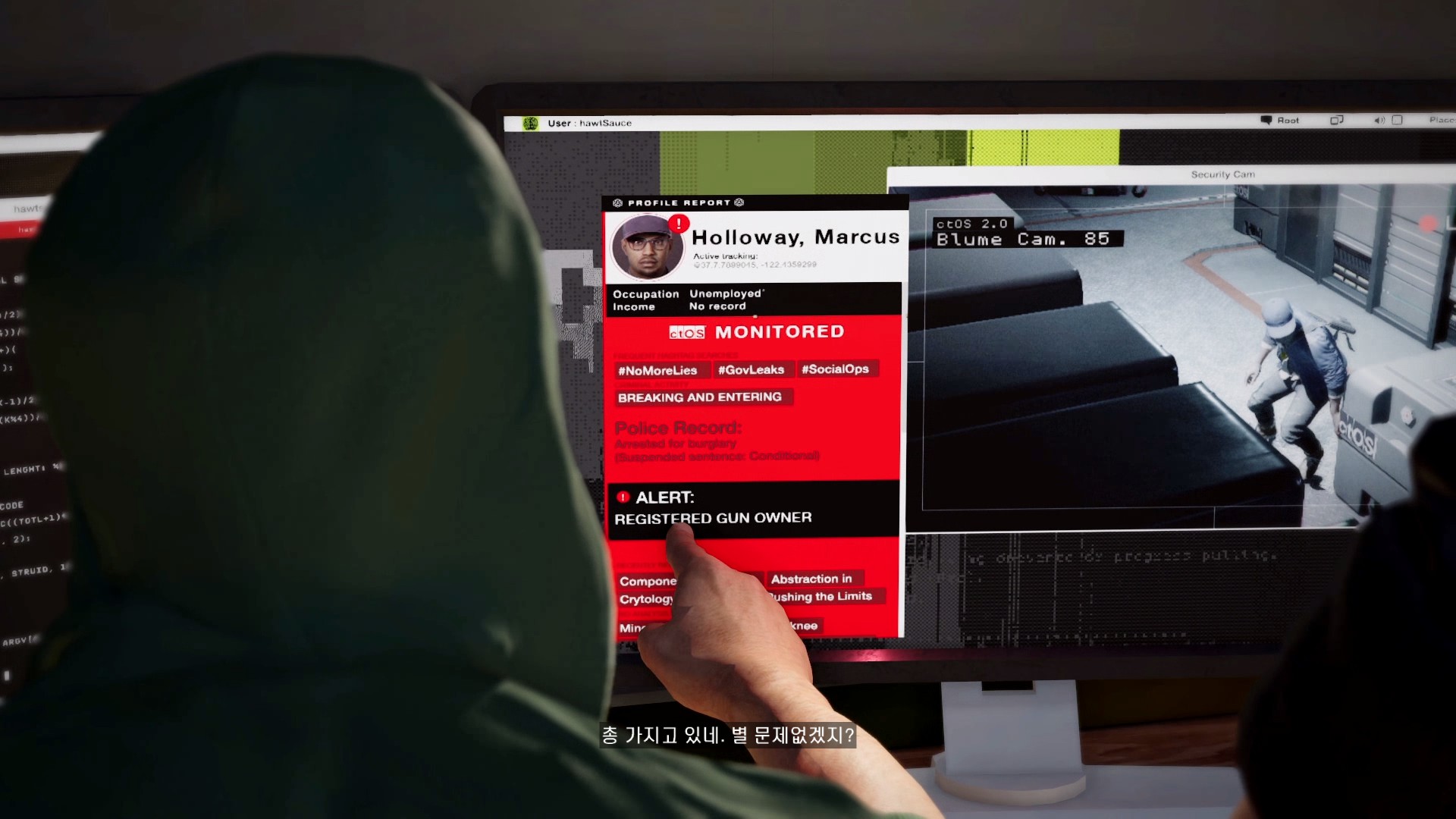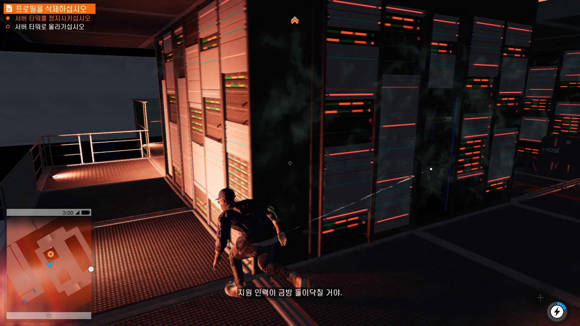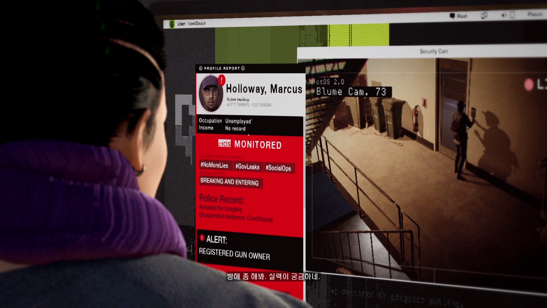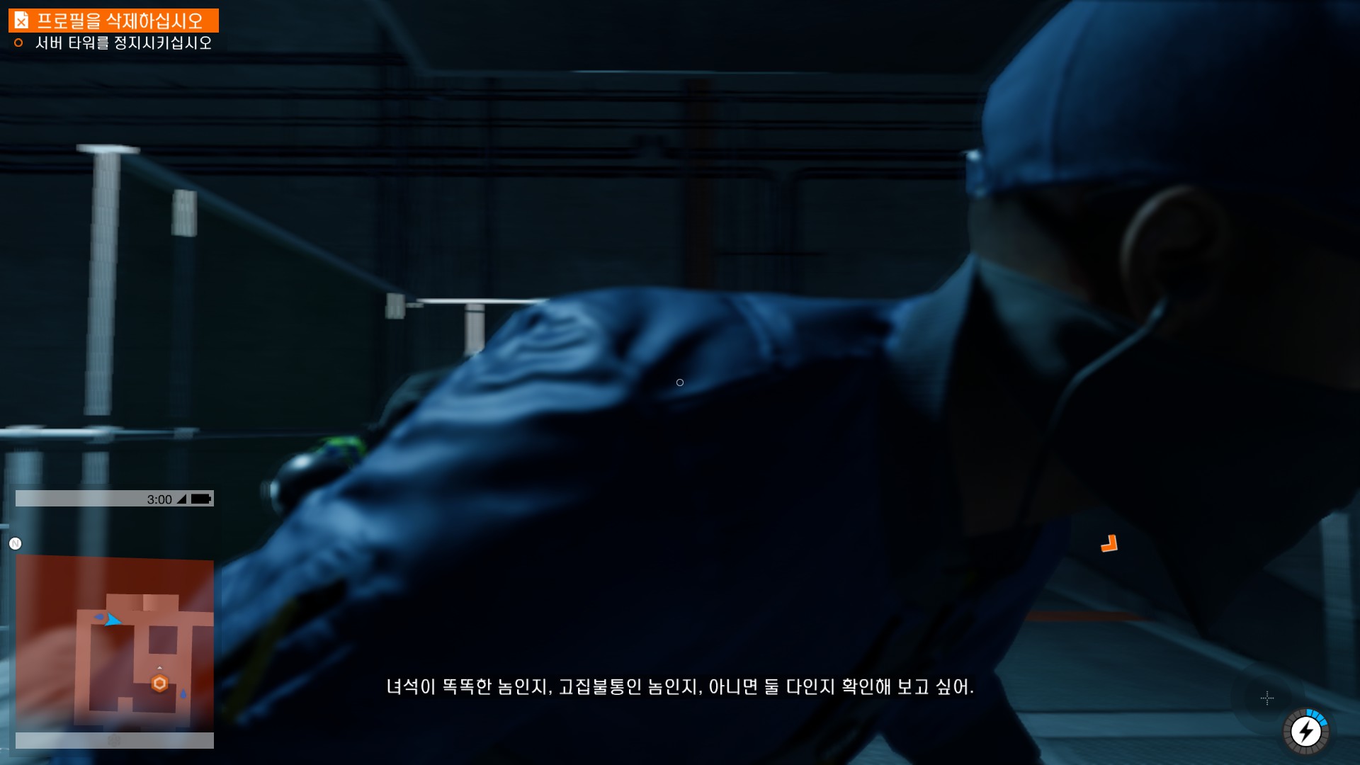 마커스가 시작부터 물리적 해킹을 하러 돌입하고 있습니다.