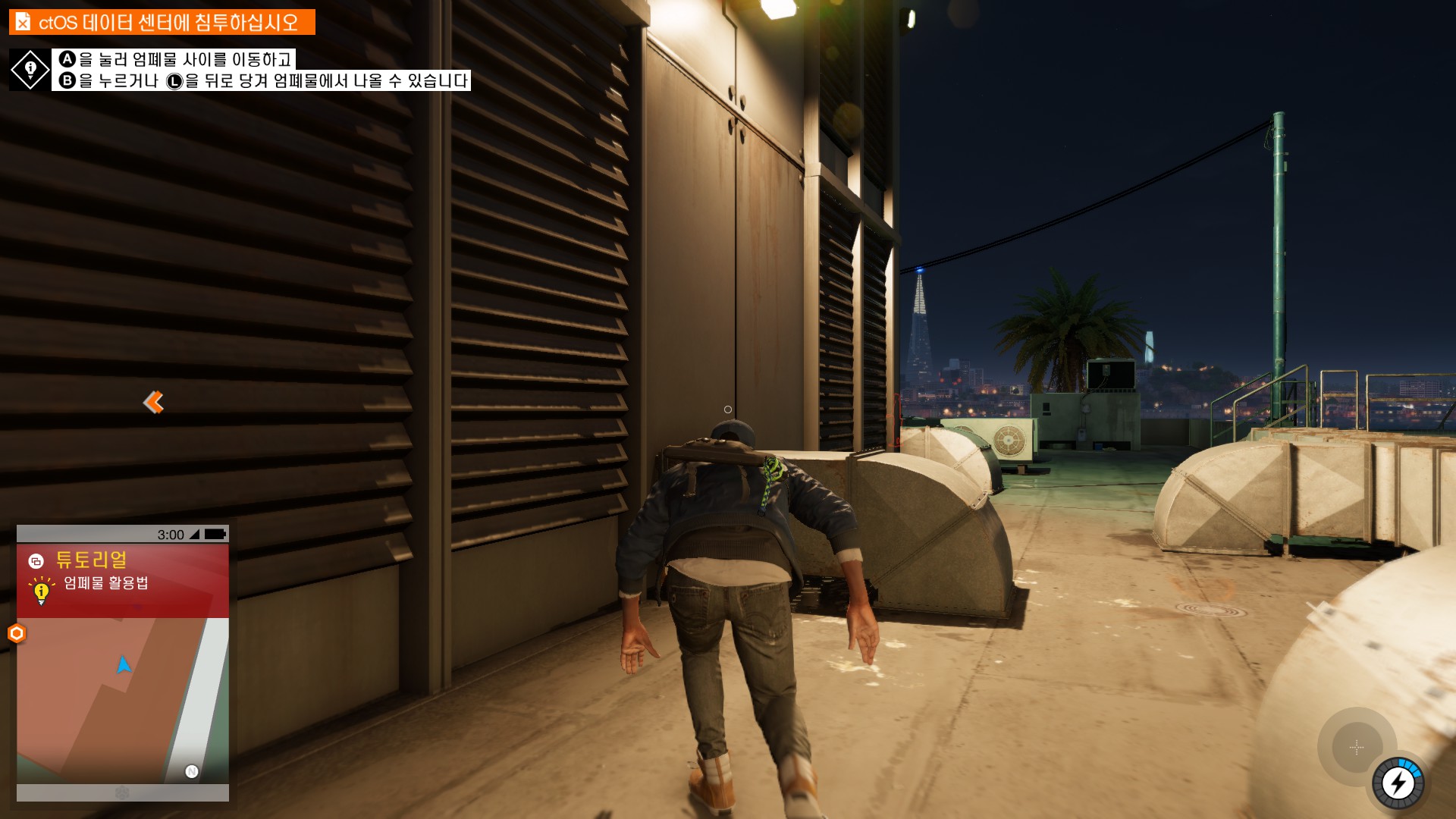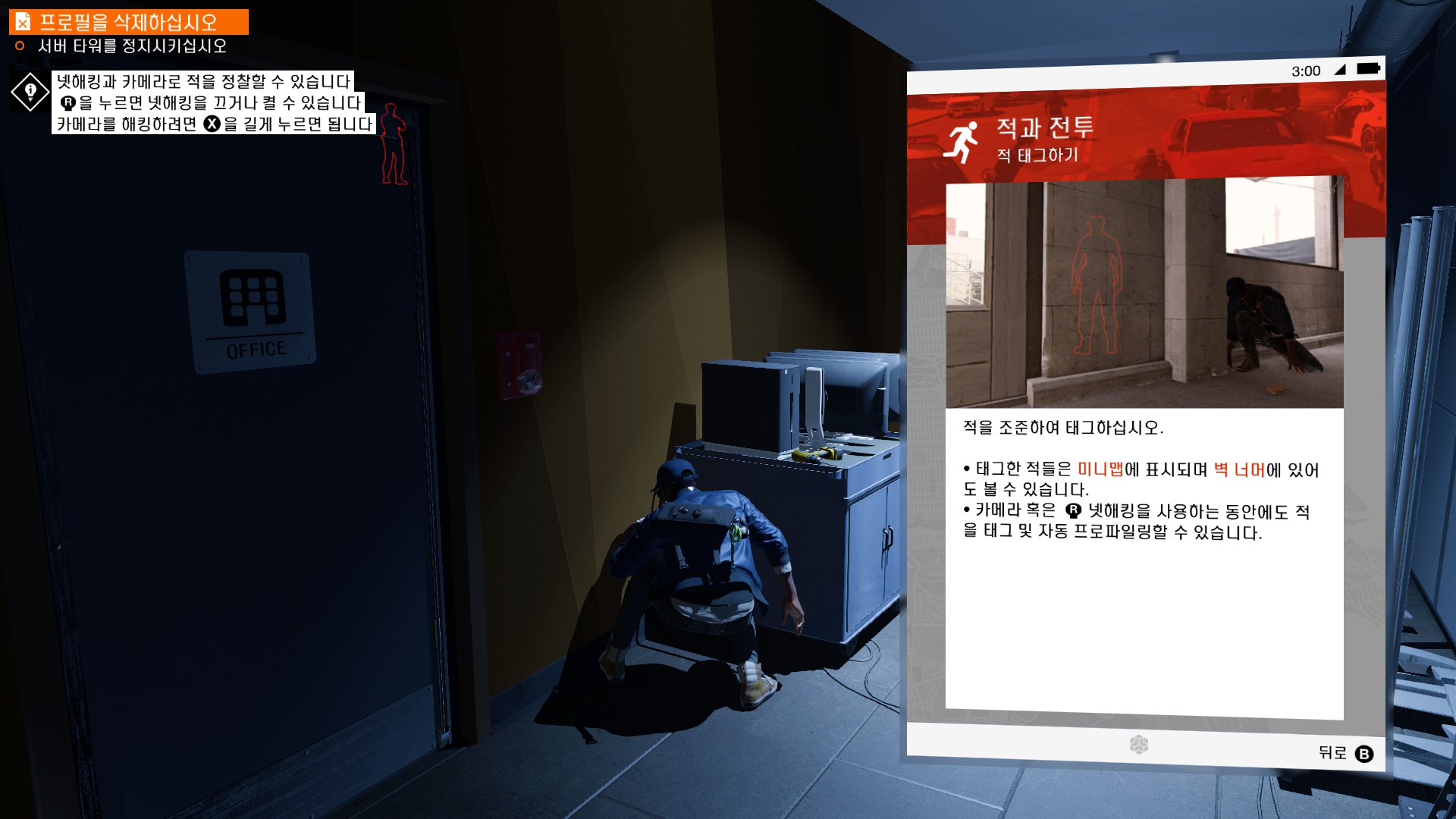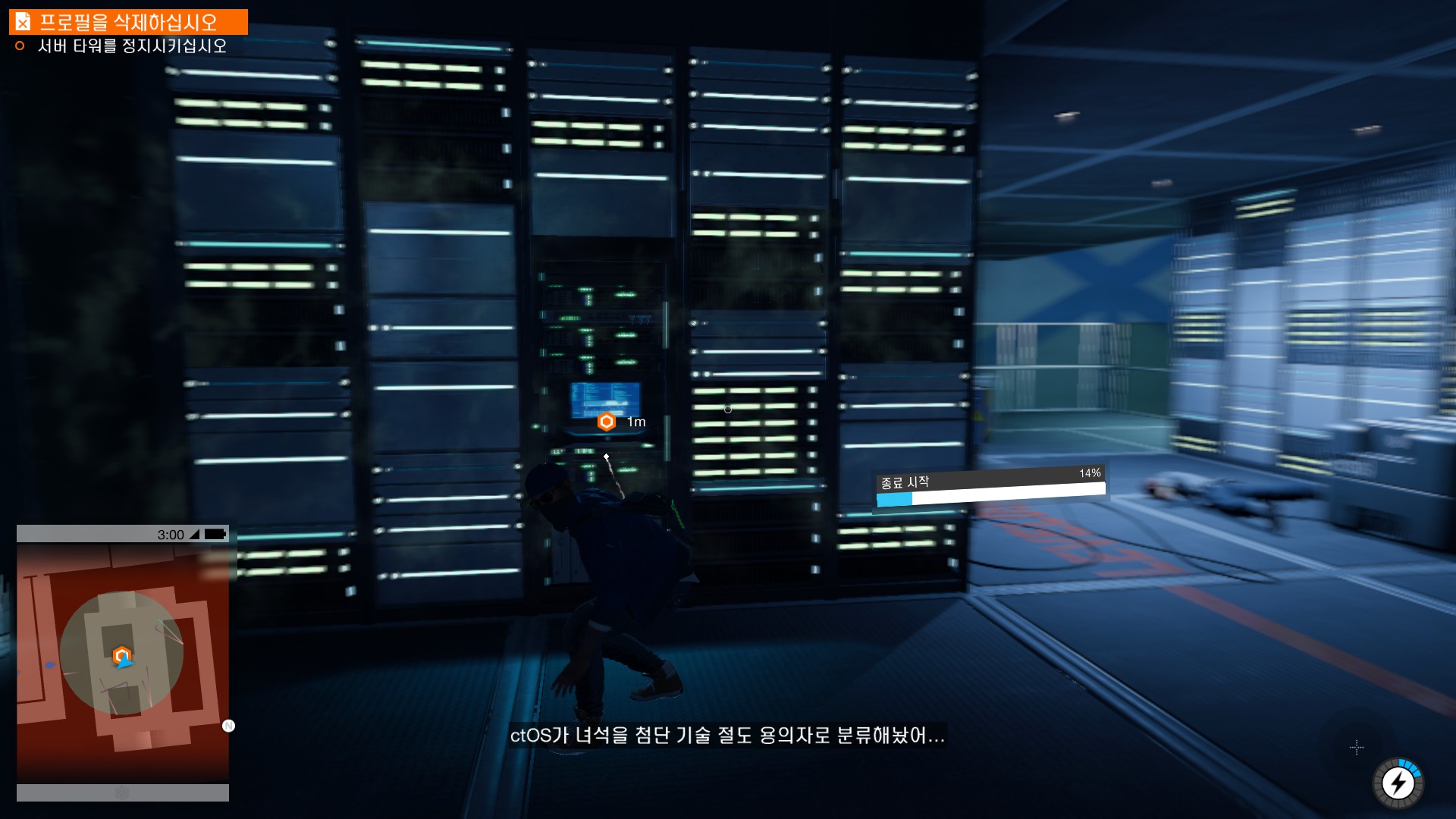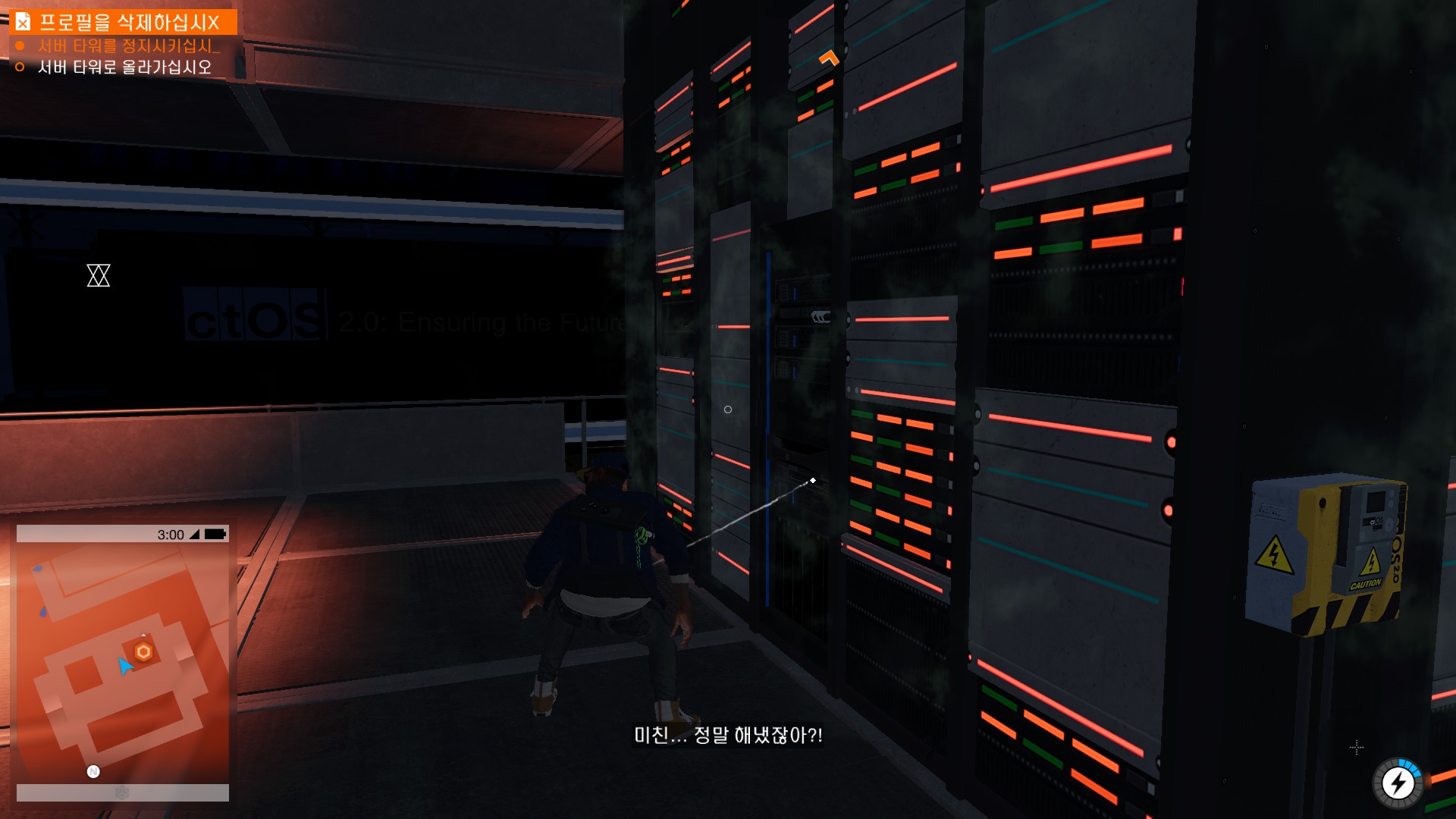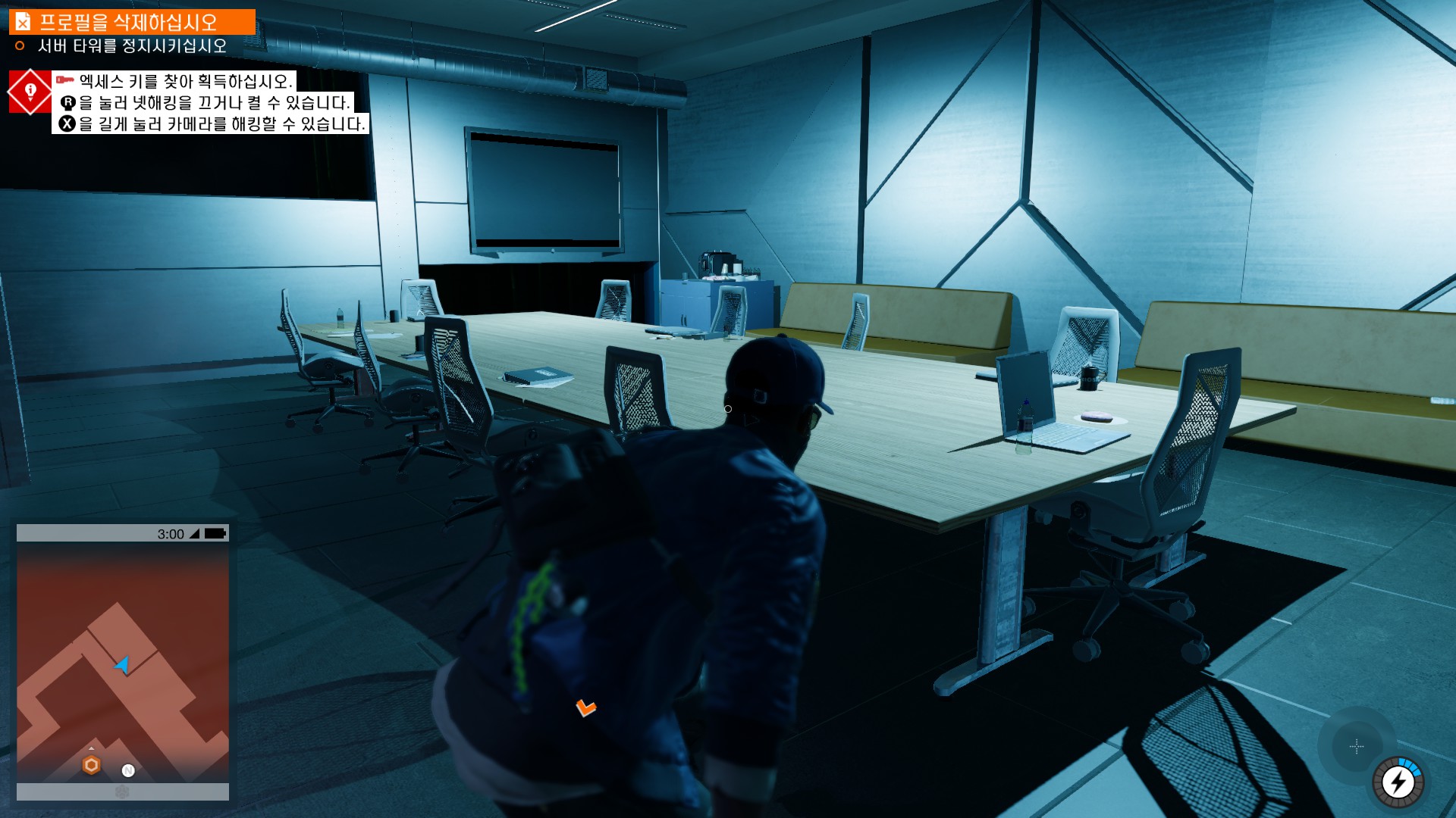 마커스가 시작부터 물리적 해킹을 하러 돌입하고 있습니다.