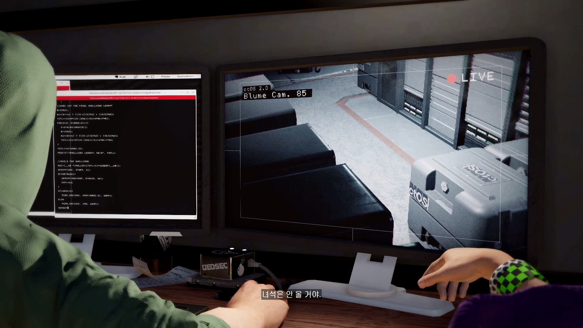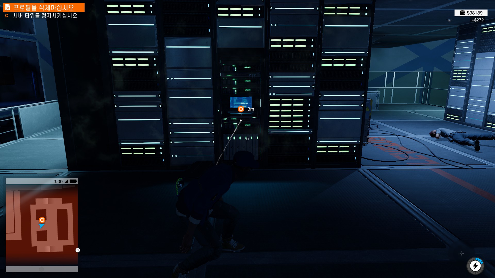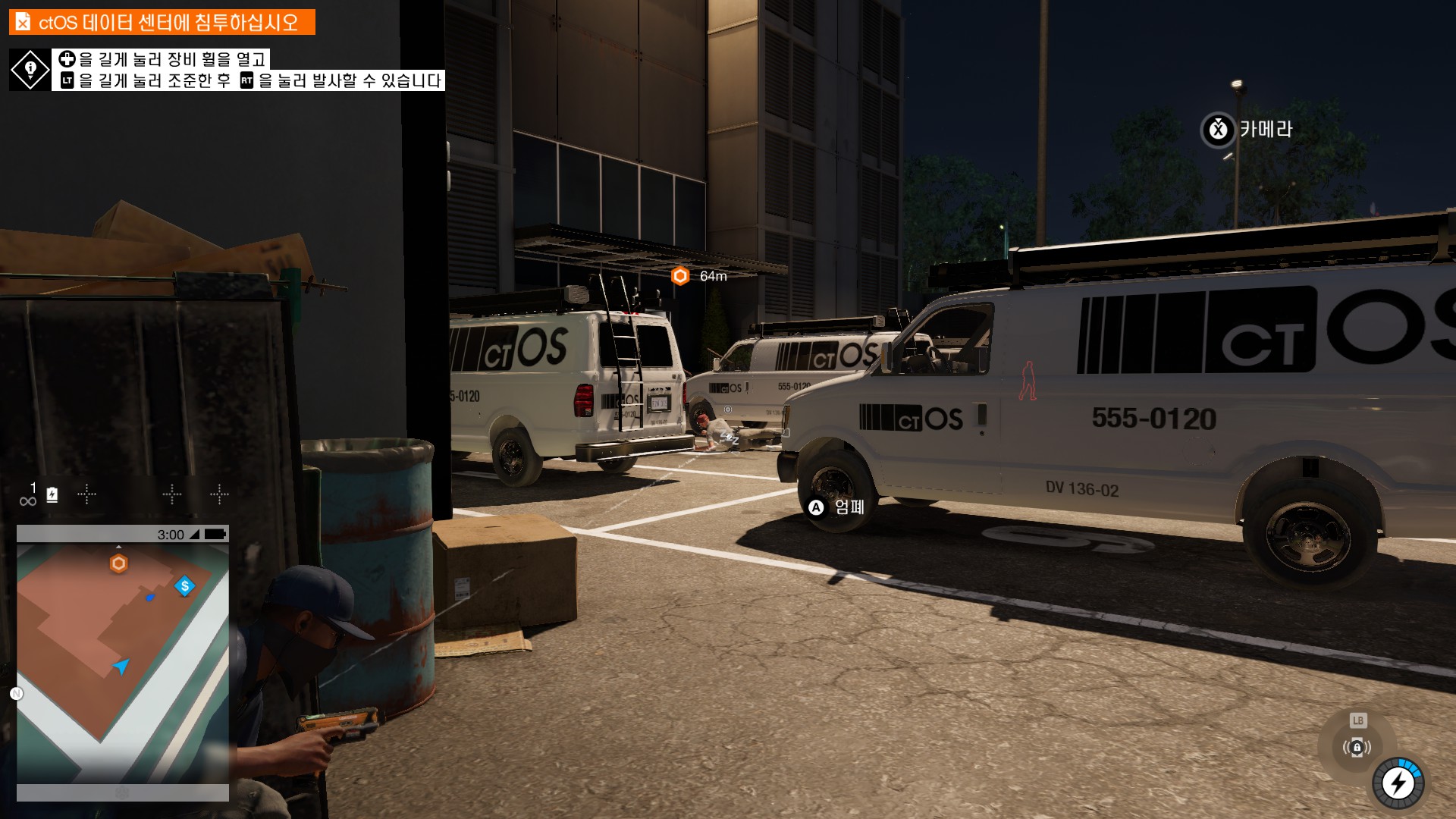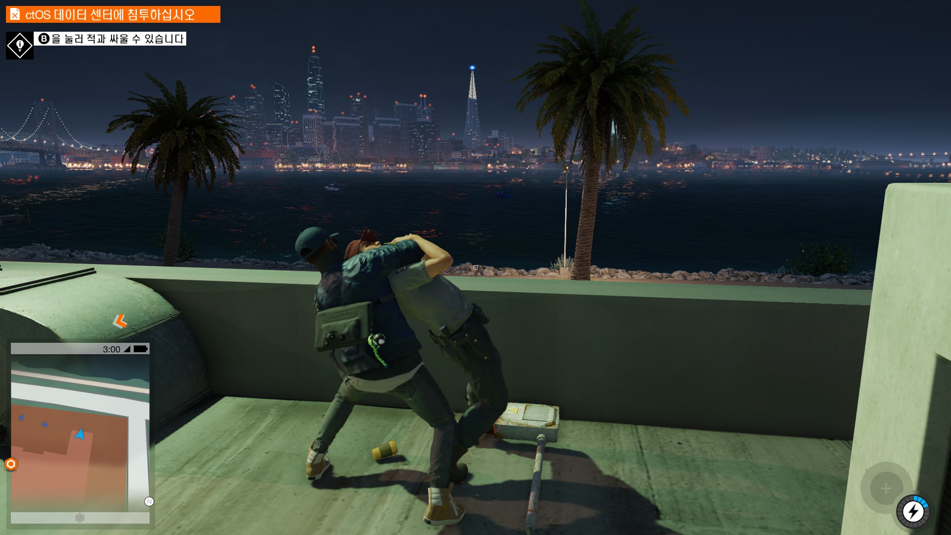 마커스가 시작부터 물리적 해킹을 하러 돌입하고 있습니다.