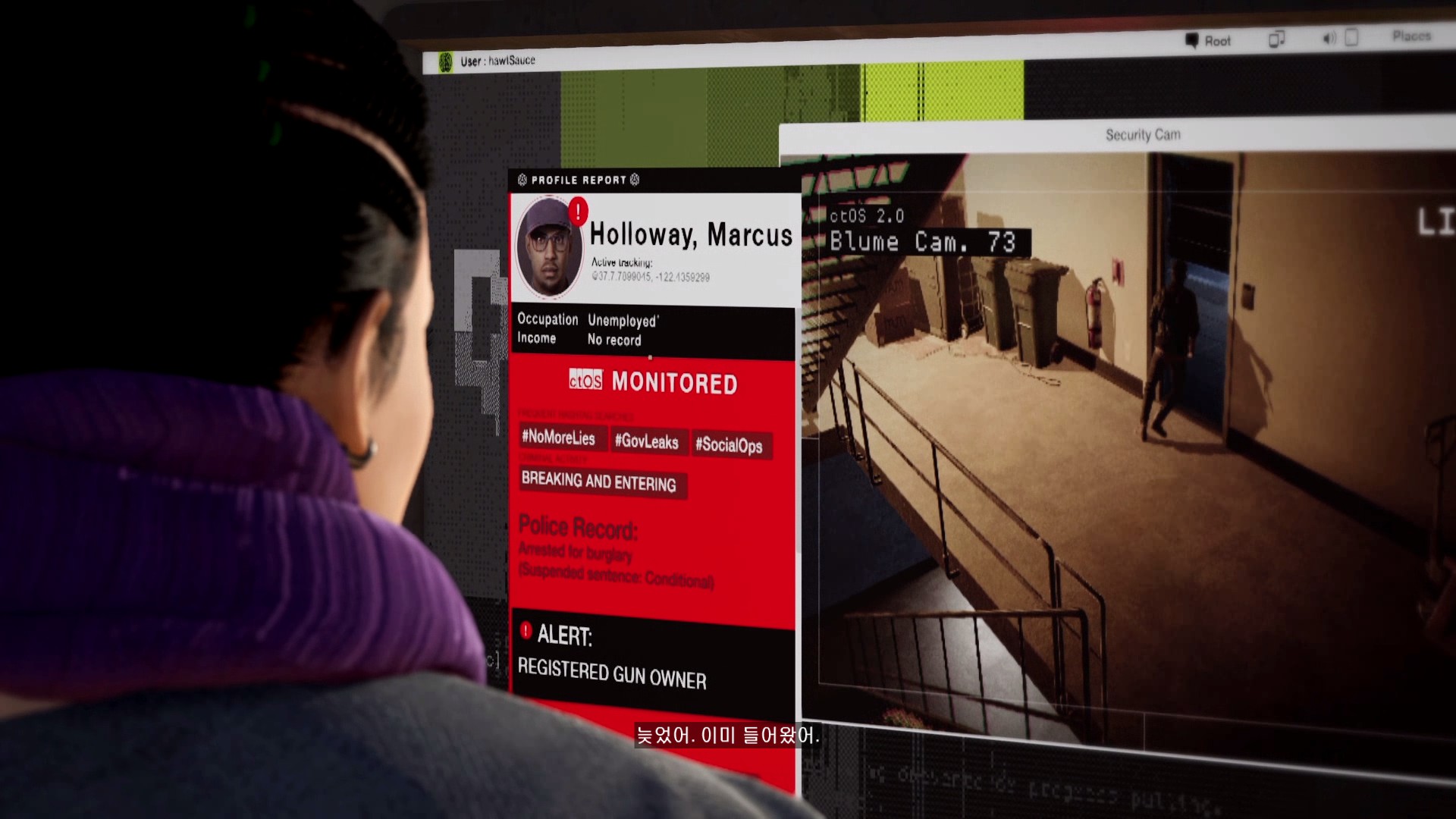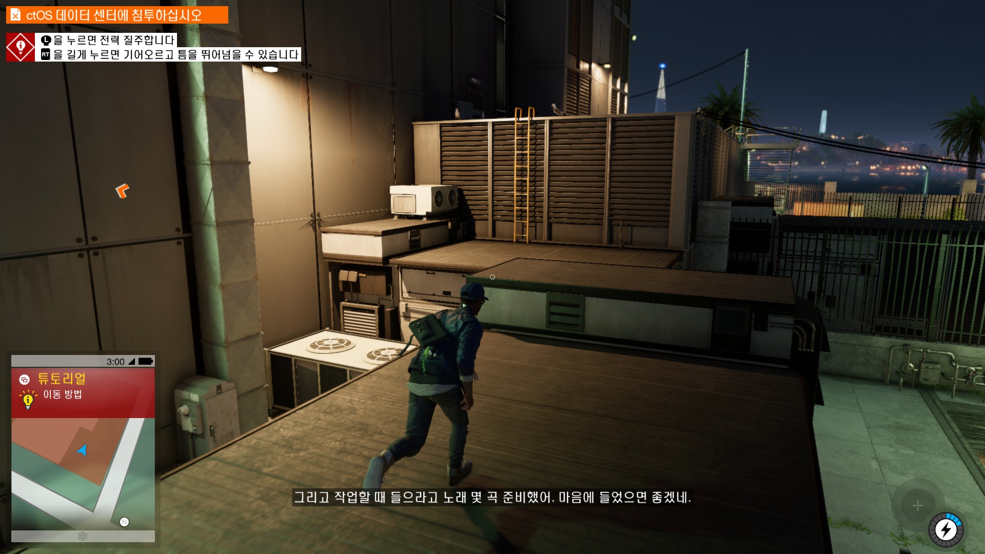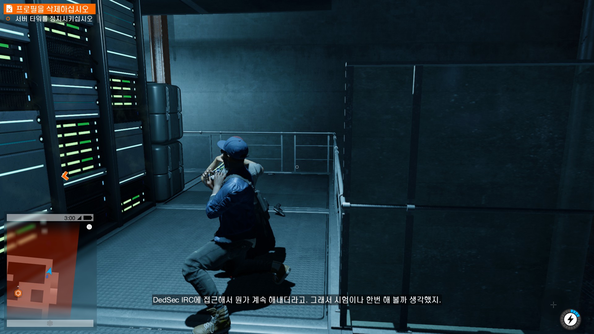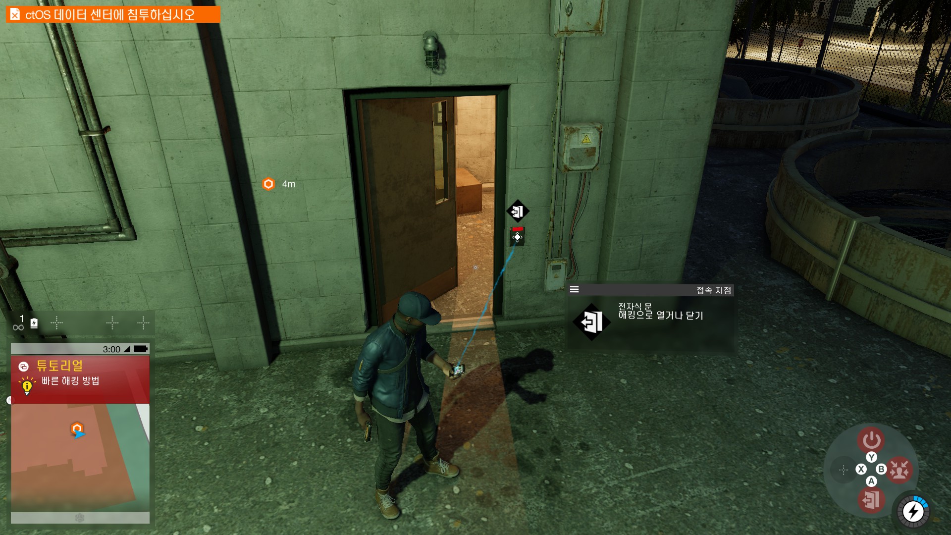마커스가 시작부터 물리적 해킹을 하러 돌입하고 있습니다.