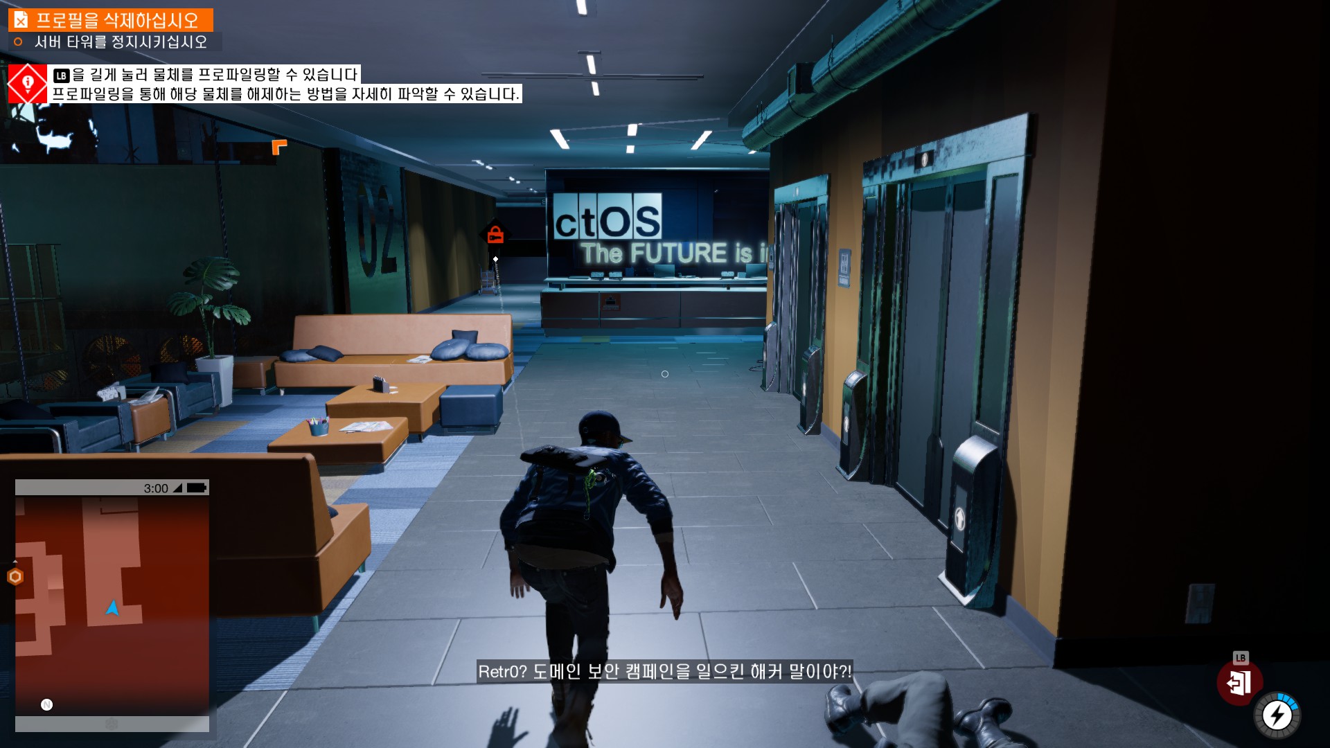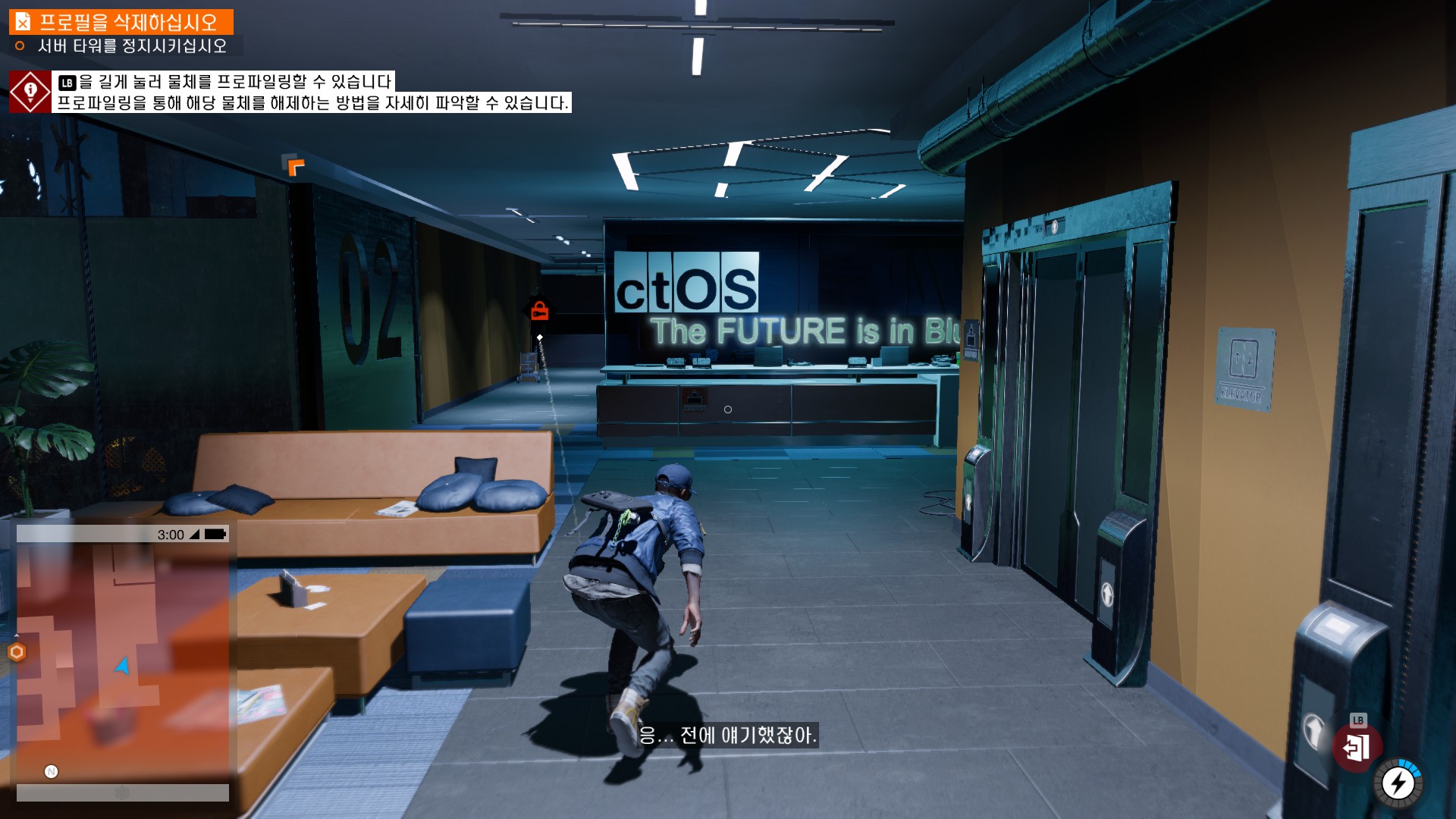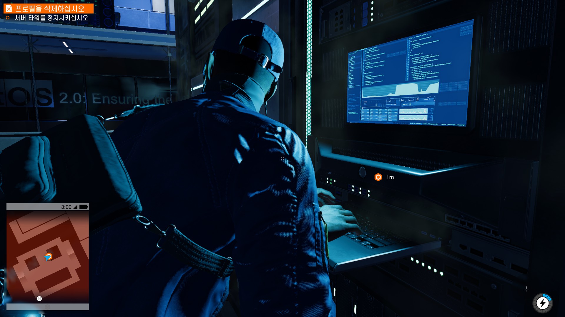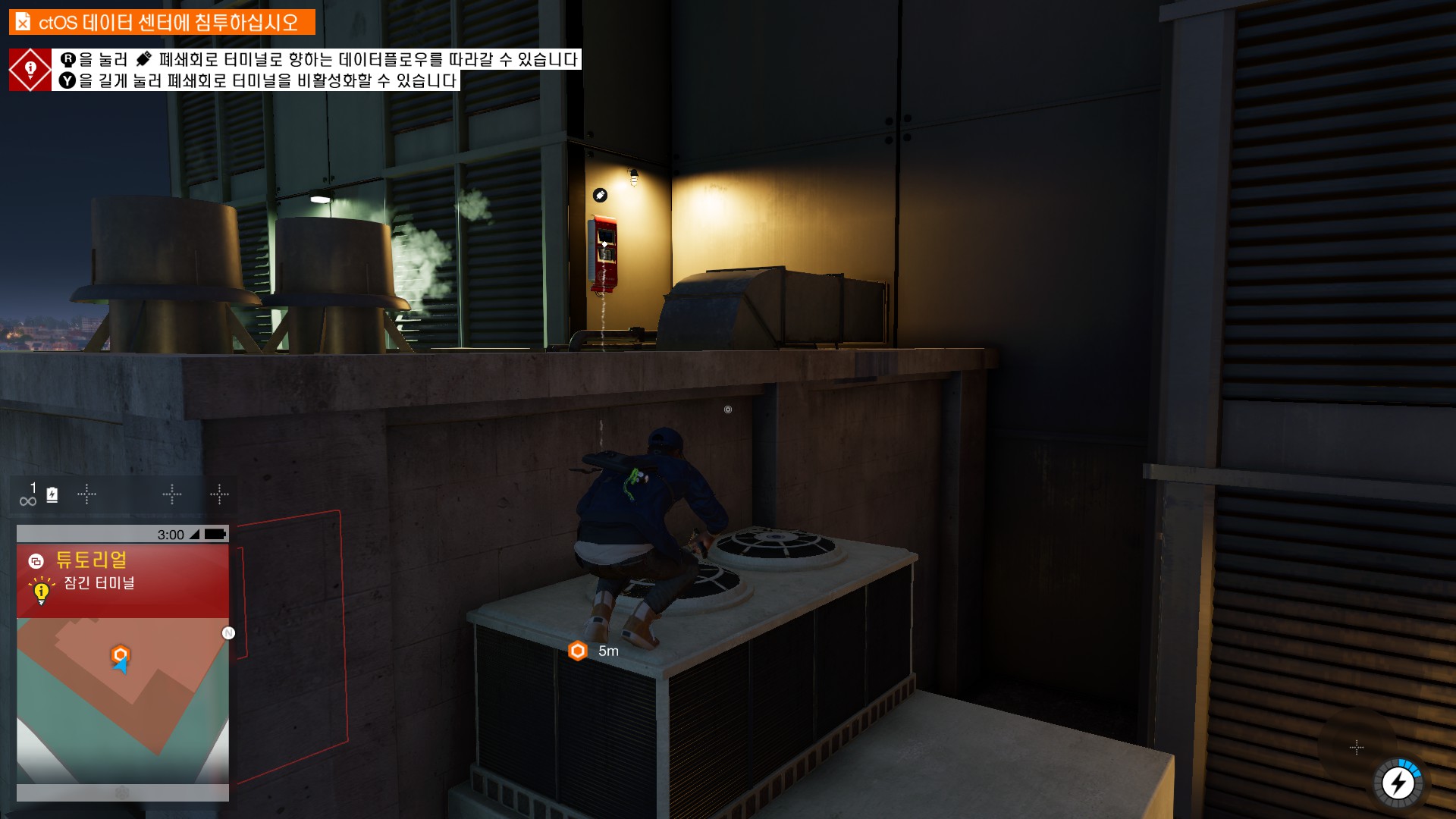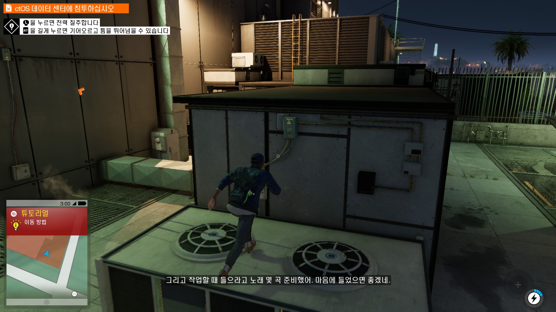 마커스가 시작부터 물리적 해킹을 하러 돌입하고 있습니다.