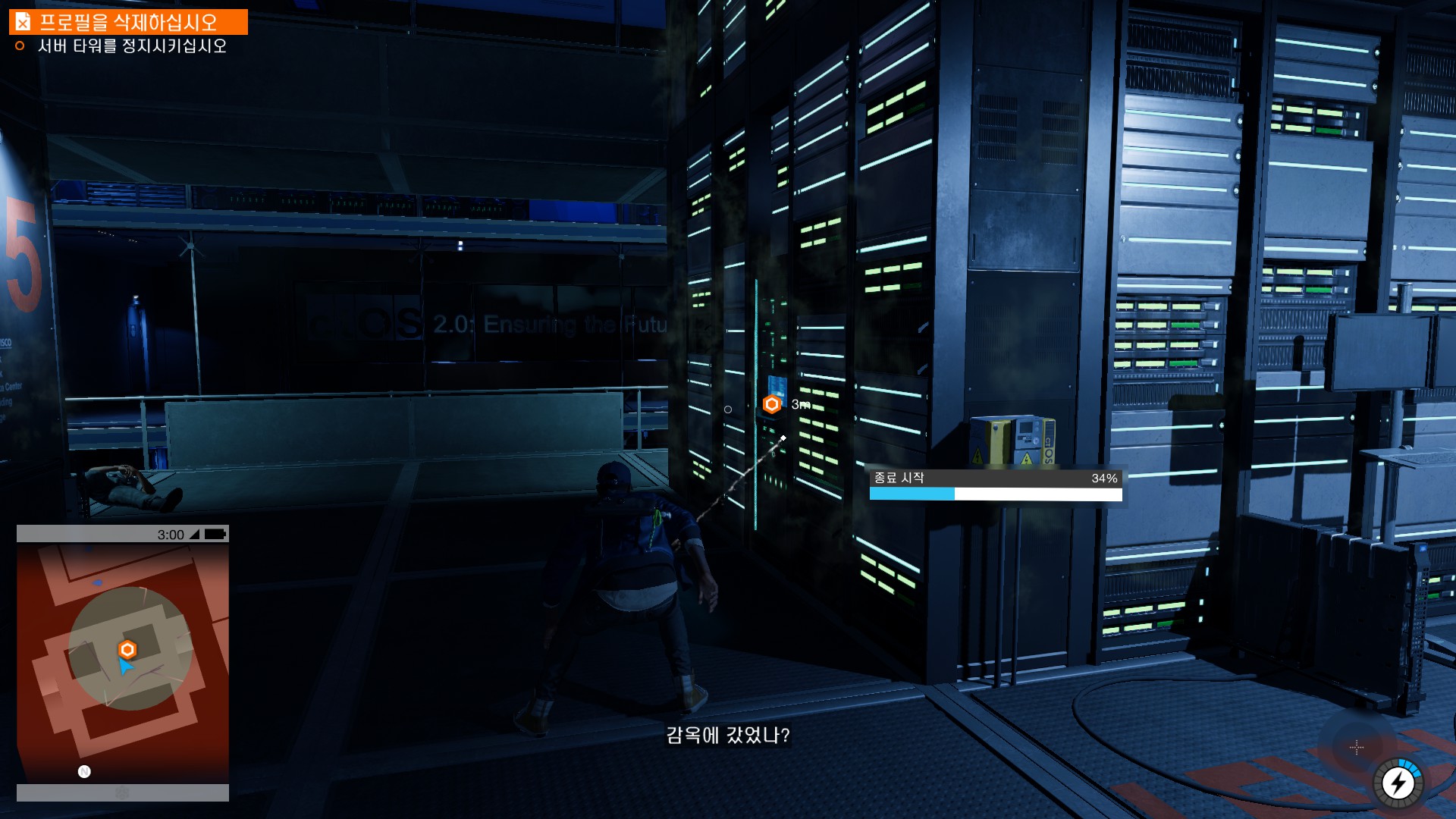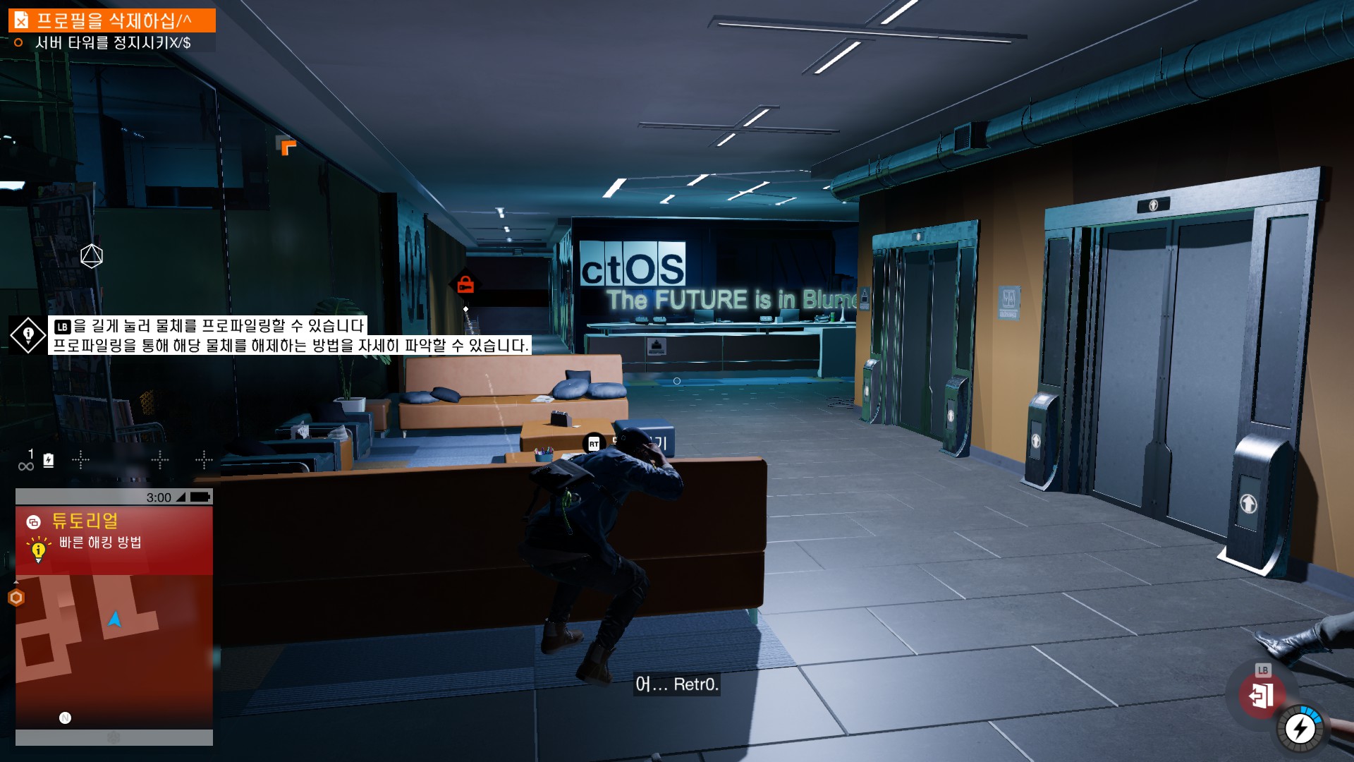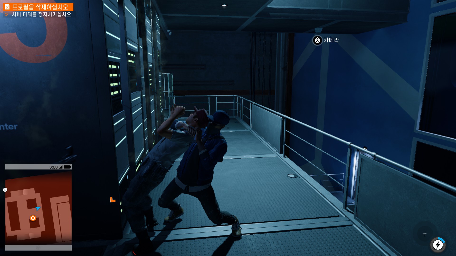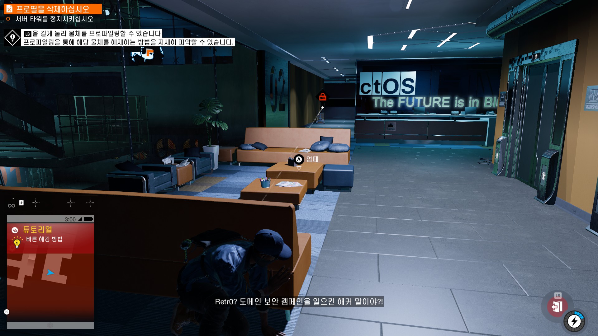마커스가 시작부터 물리적 해킹을 하러 돌입하고 있습니다.