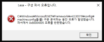 '0x80004005' 오류코드 자체는 닷넷 설치가 제대로 되지 않았음을 의미하는 코드입니다.