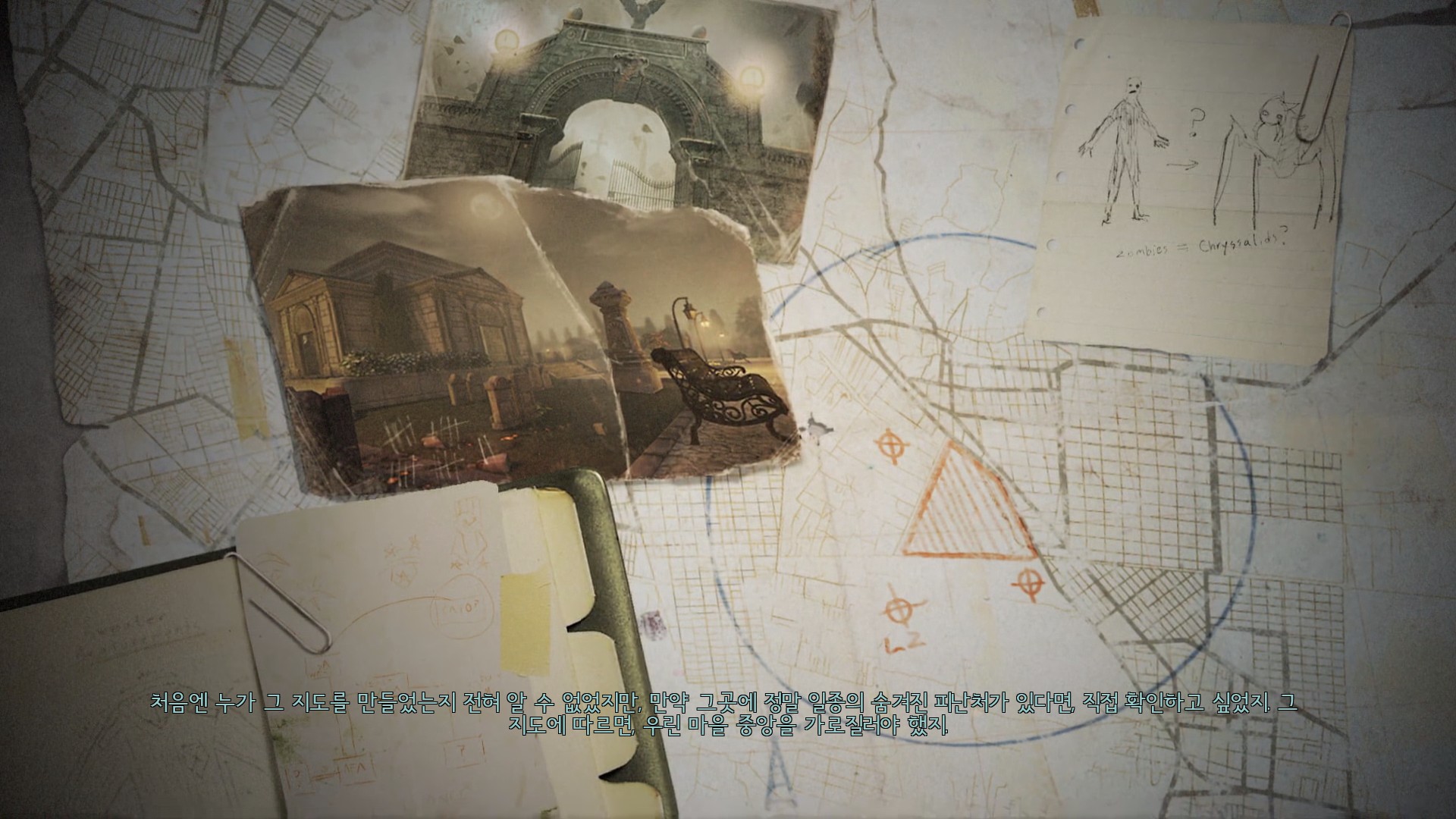 지도를 따라서 묘지를 지나가야 합니다.