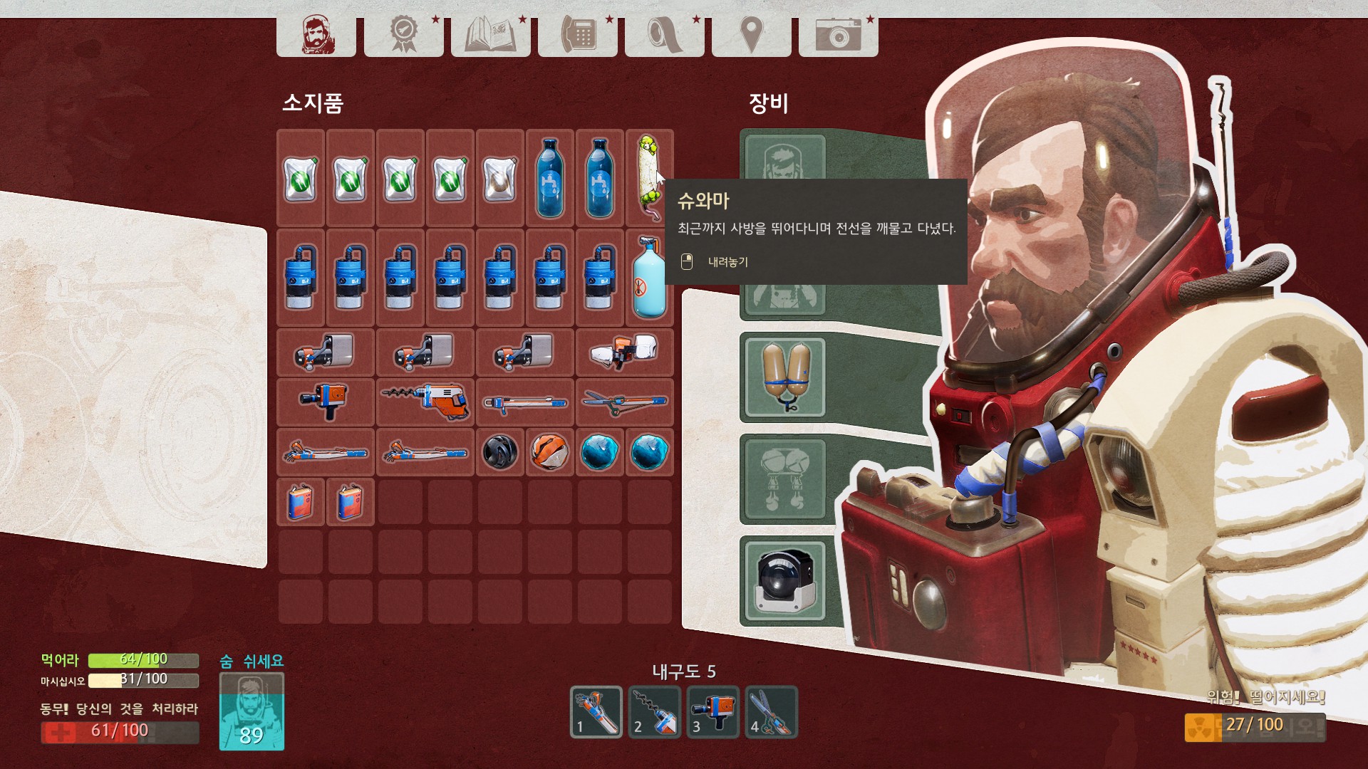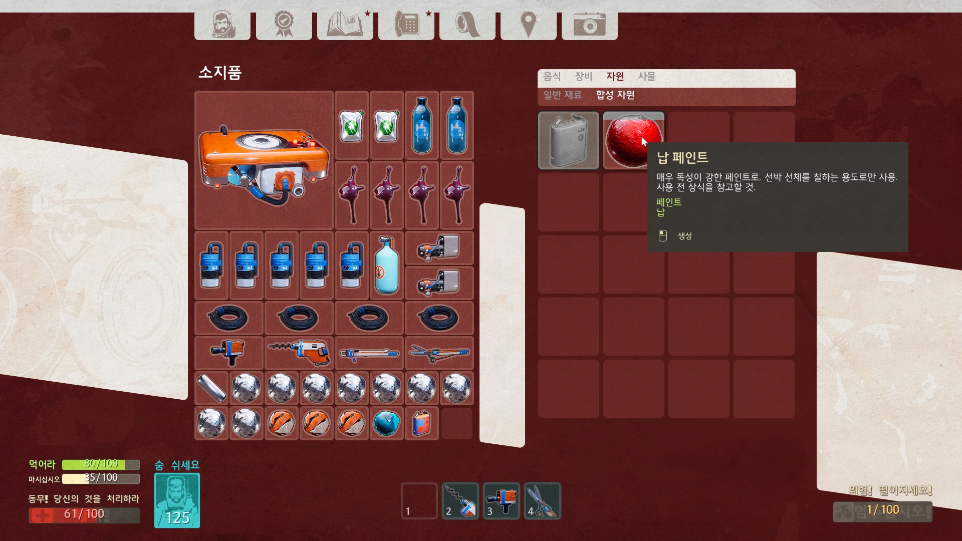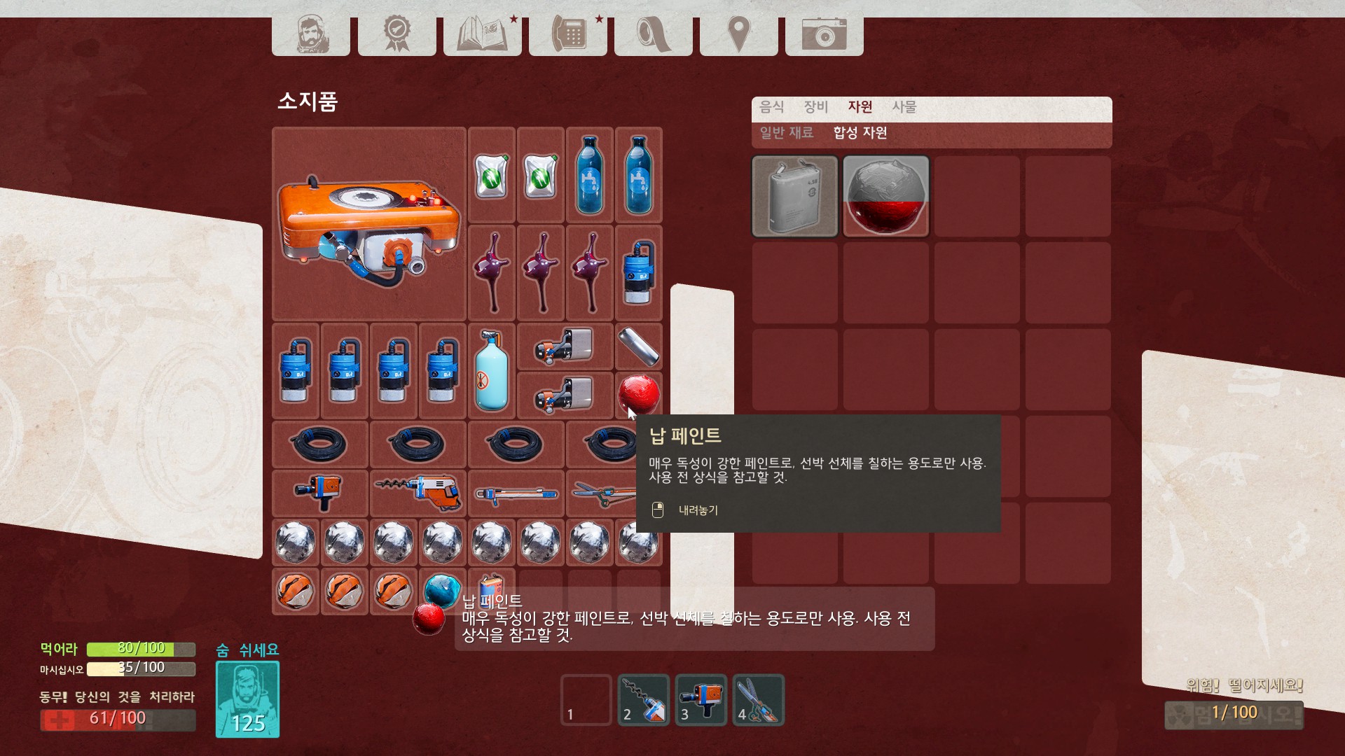 비교적 멀리와야 수집할 수 있는 납과 페인트를 찾으러 왔습니다.