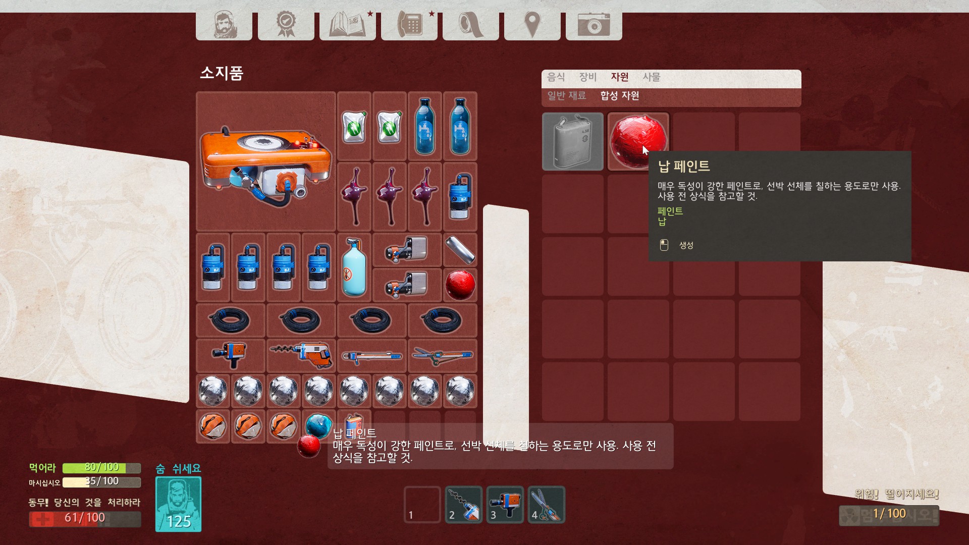 비교적 멀리와야 수집할 수 있는 납과 페인트를 찾으러 왔습니다.