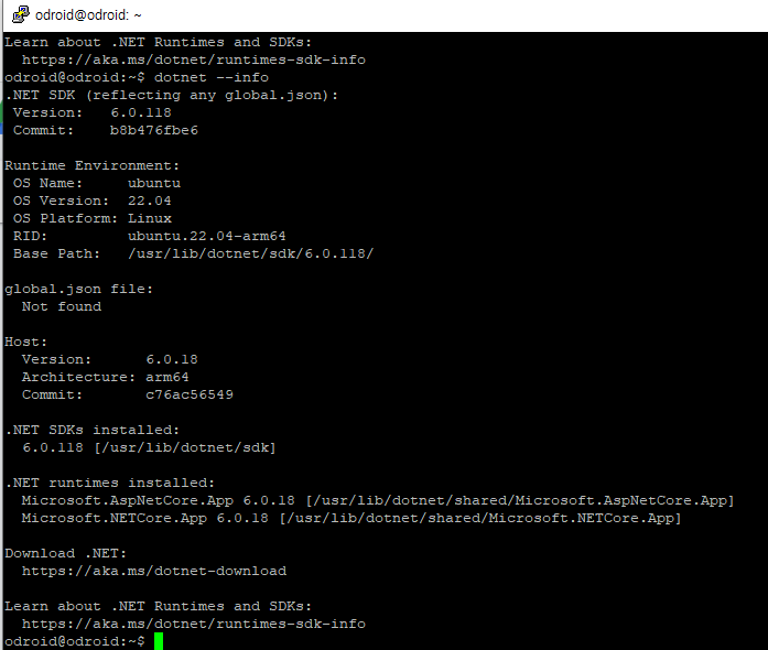 sudo apt-get install -y dotnet-sdk-6.0