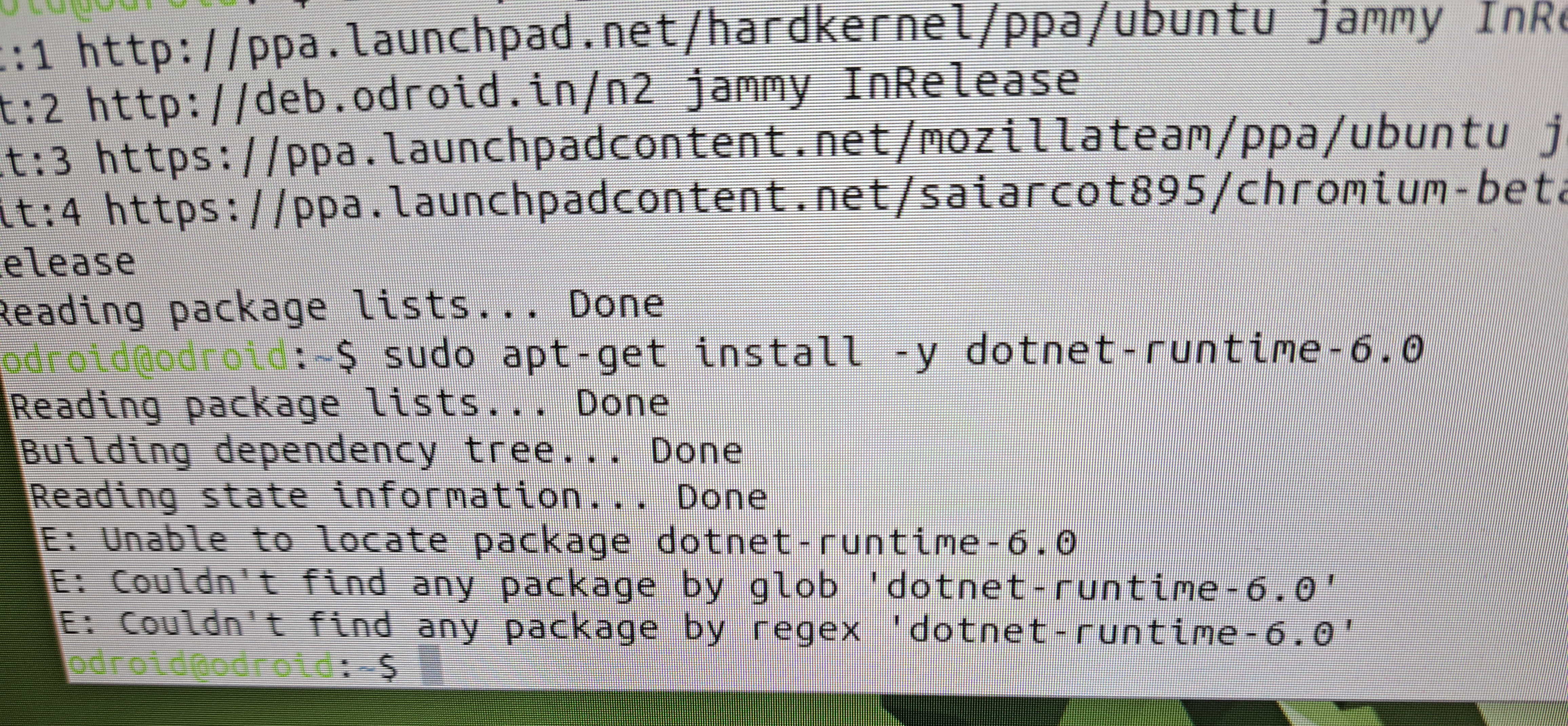 sudo apt-get install -y dotnet-runtime-6.0