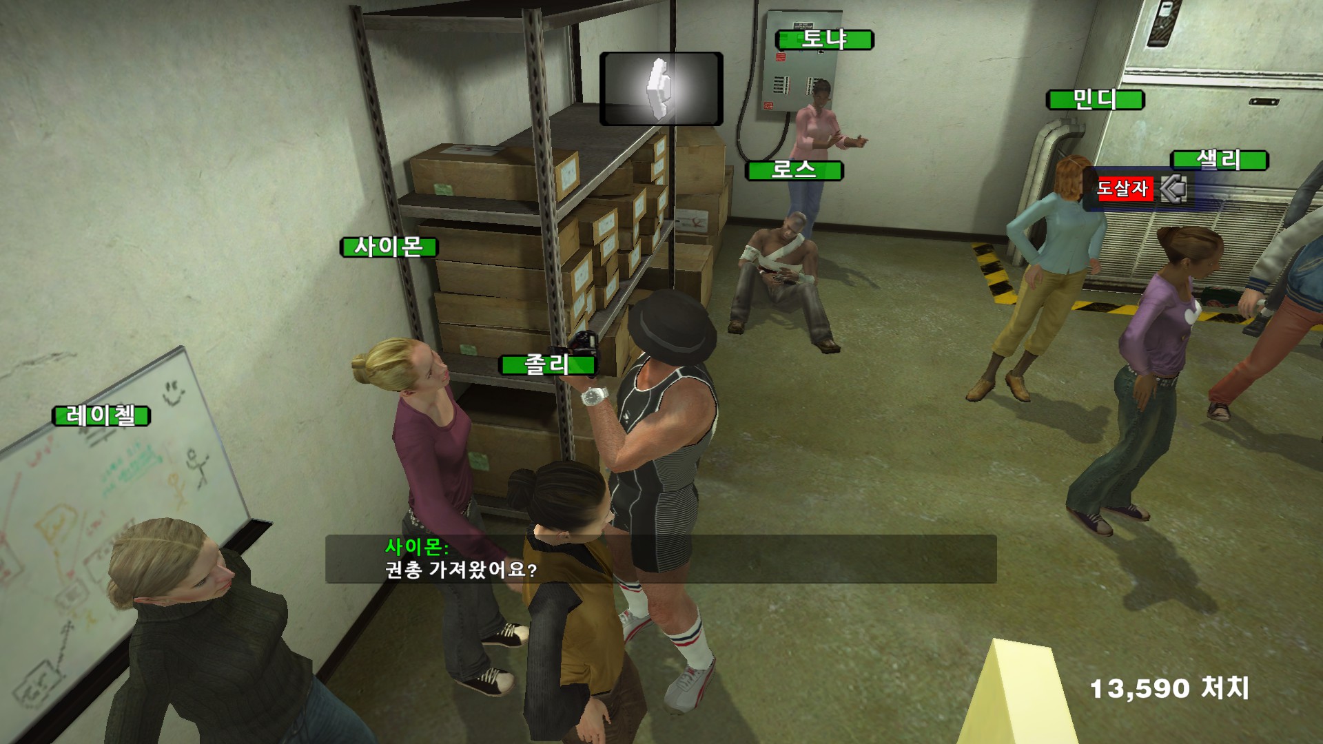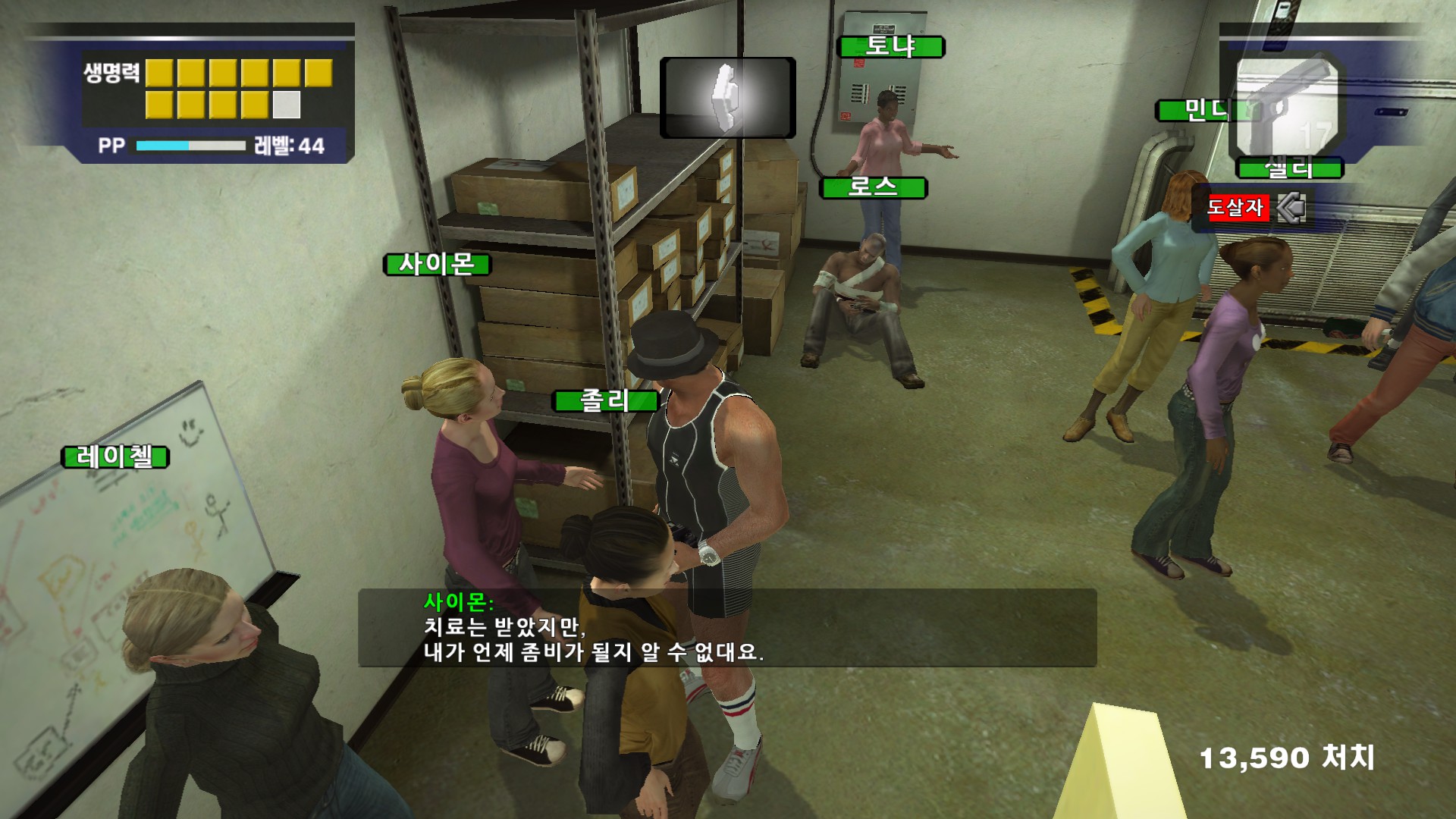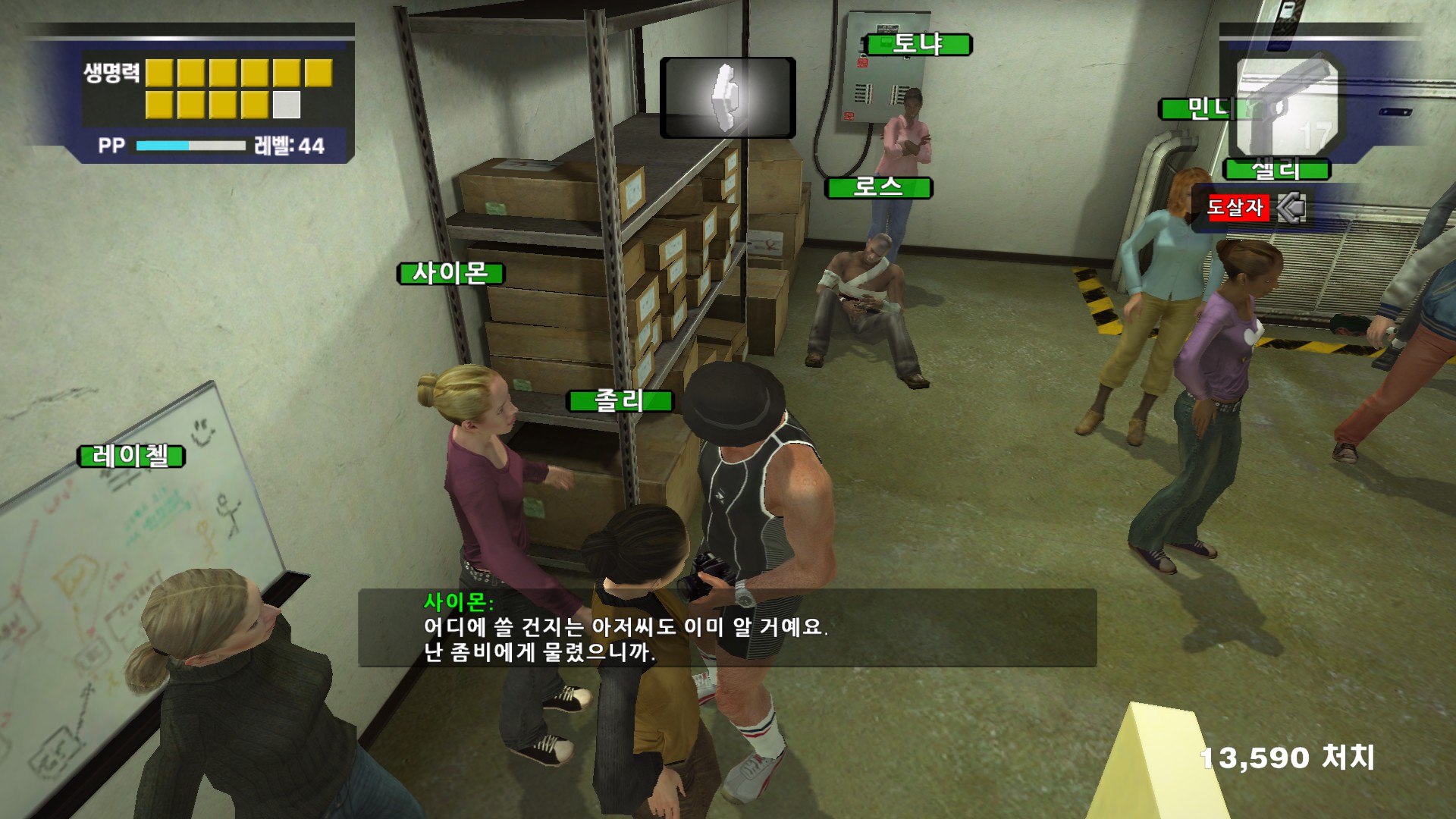 사이몬이 자기가 좀비가 될때를 대비해서 총을 가지고 있고 싶어합니다....