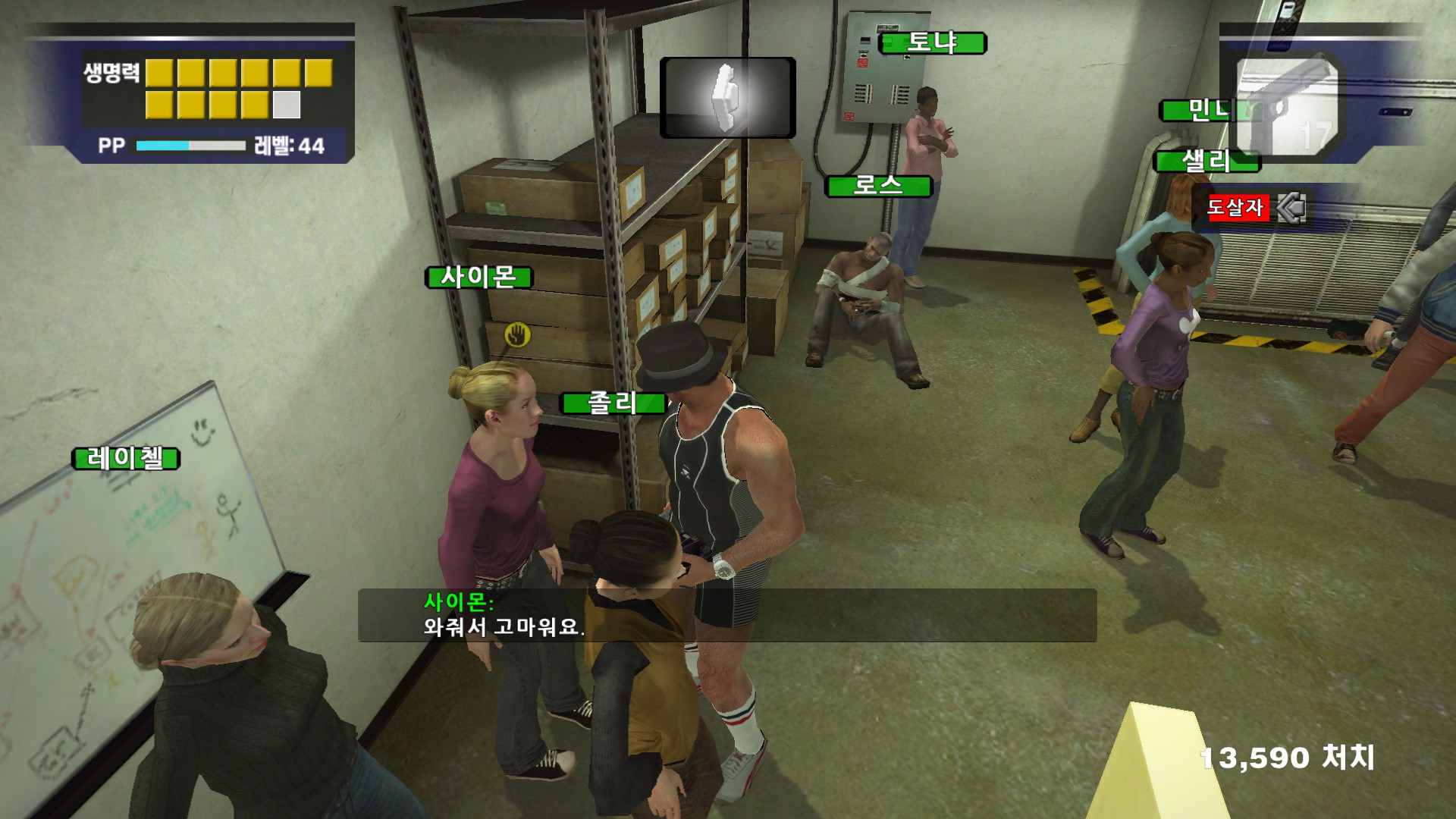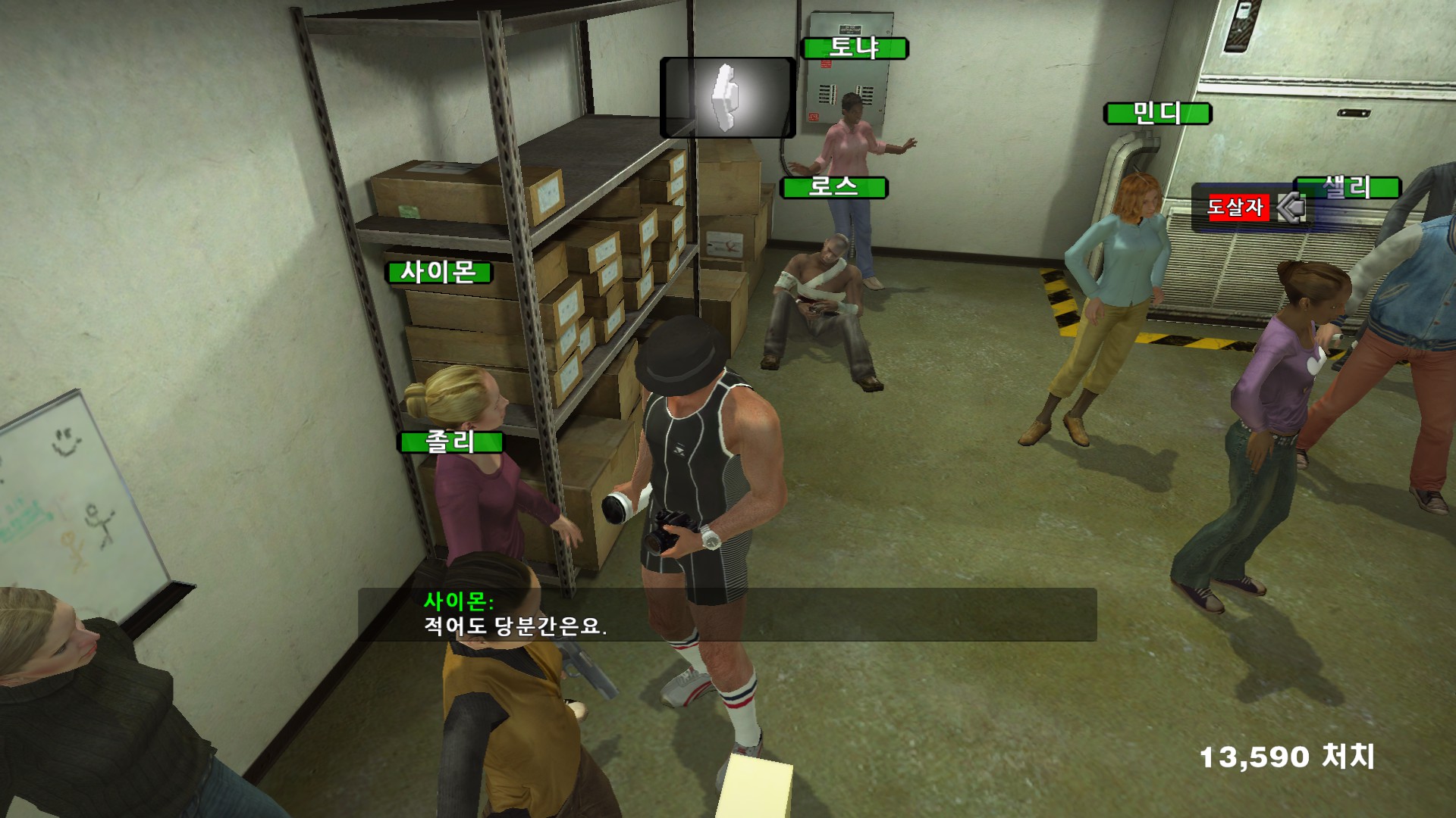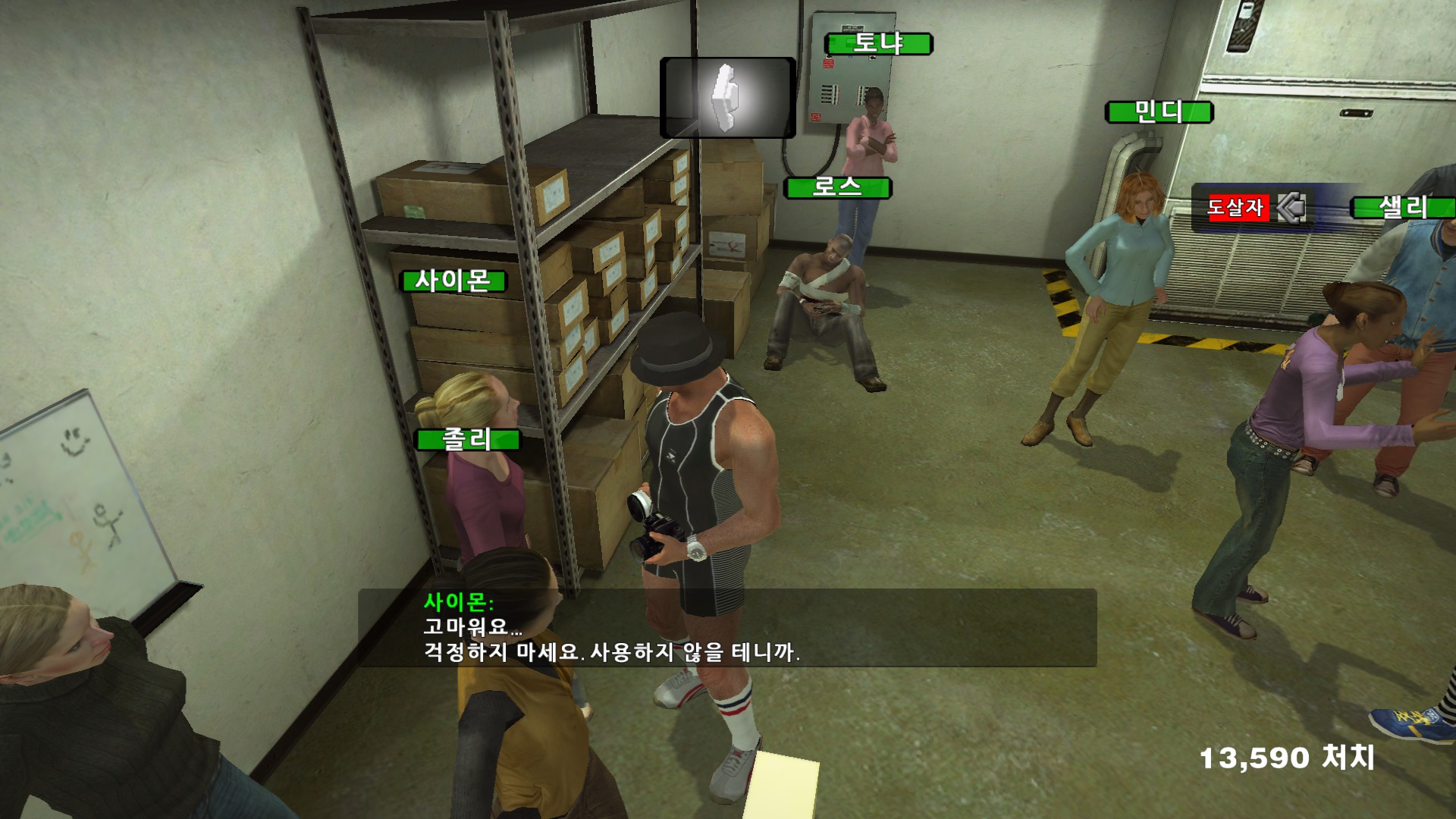 사이몬이 자기가 좀비가 될때를 대비해서 총을 가지고 있고 싶어합니다....