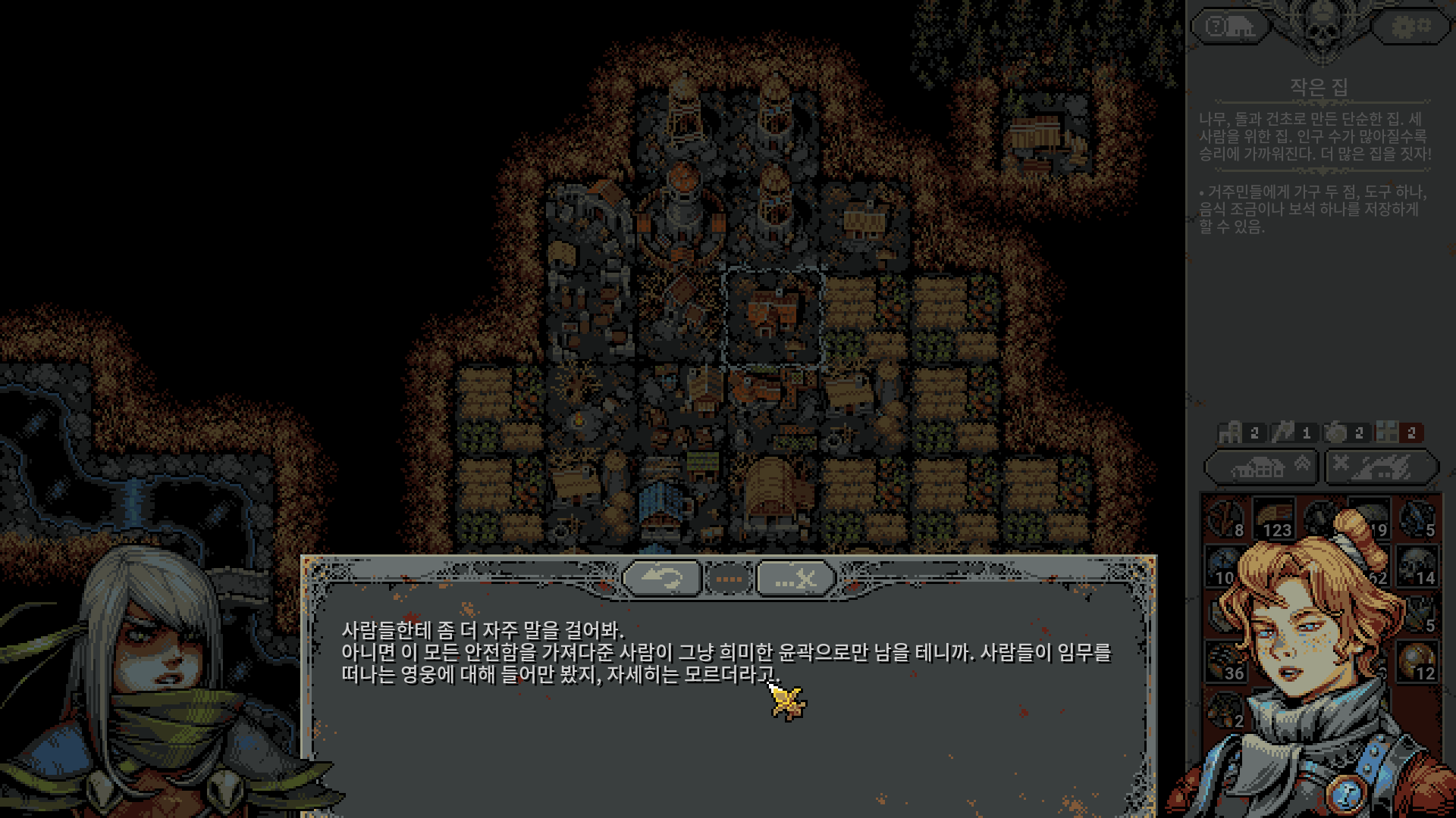 마을에 뭔가 지을때마다 하는 만담이 재미있습니다.