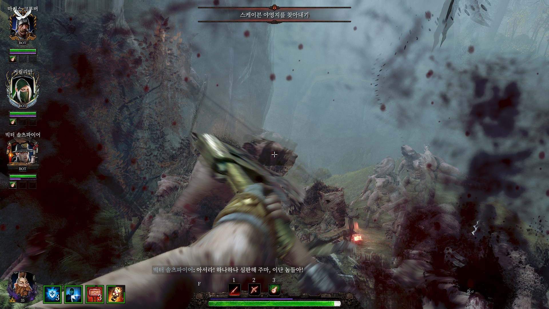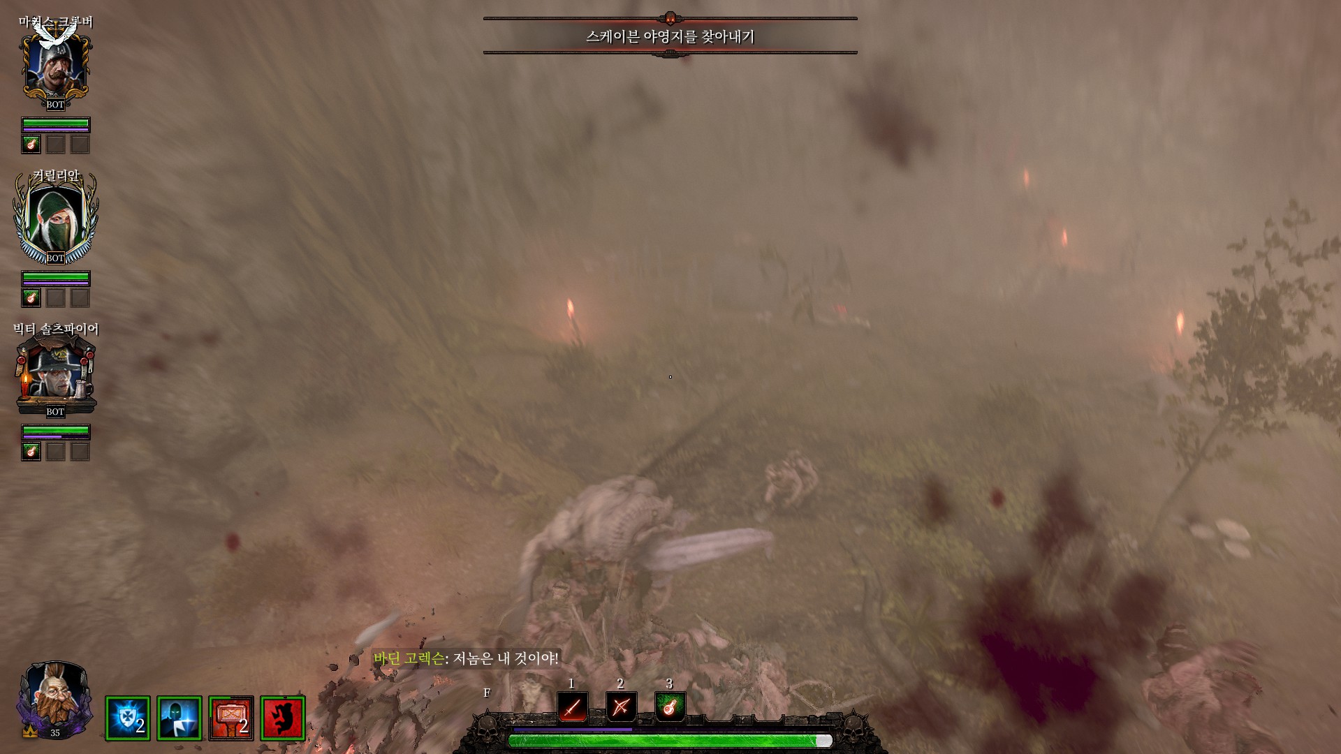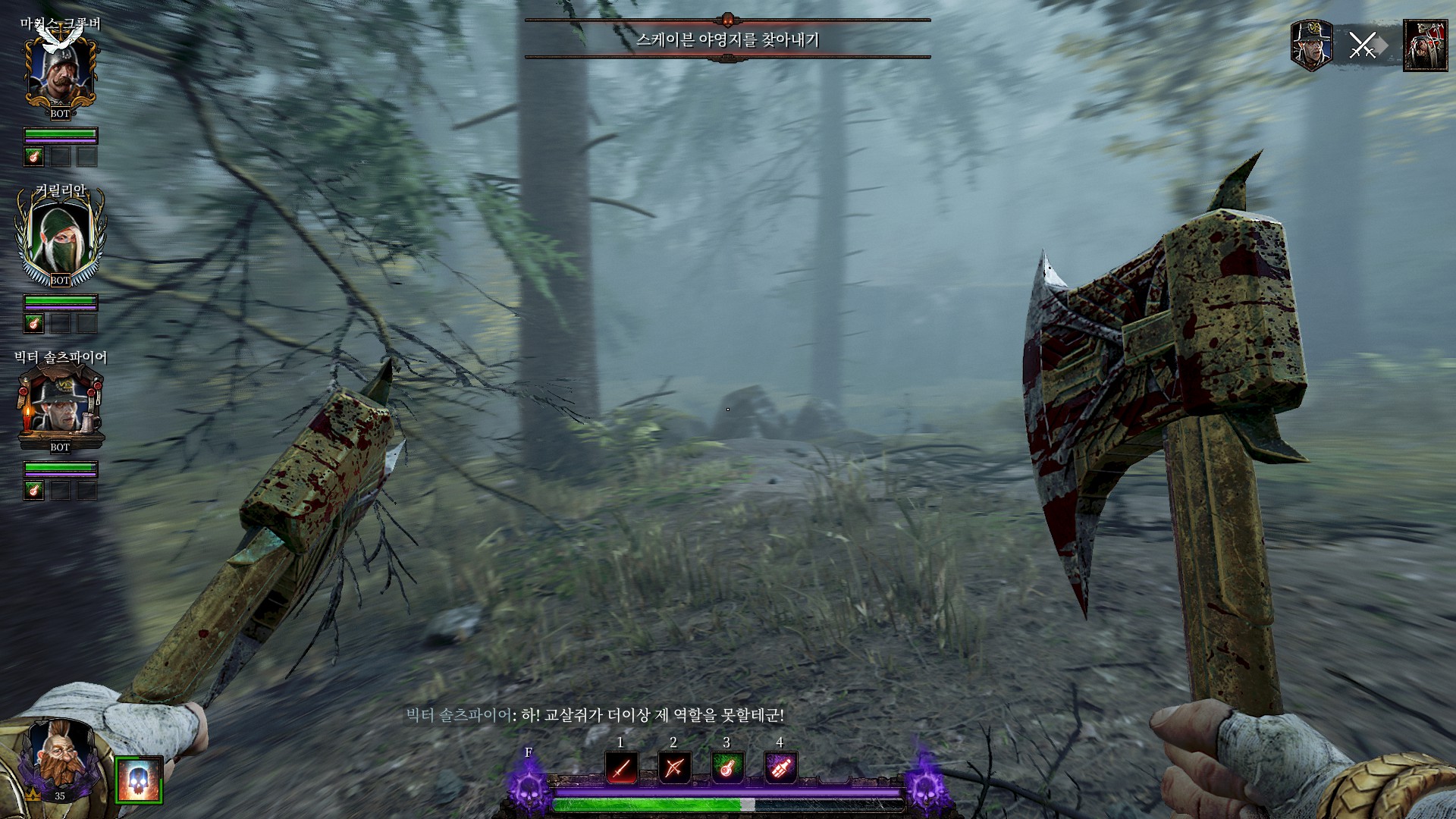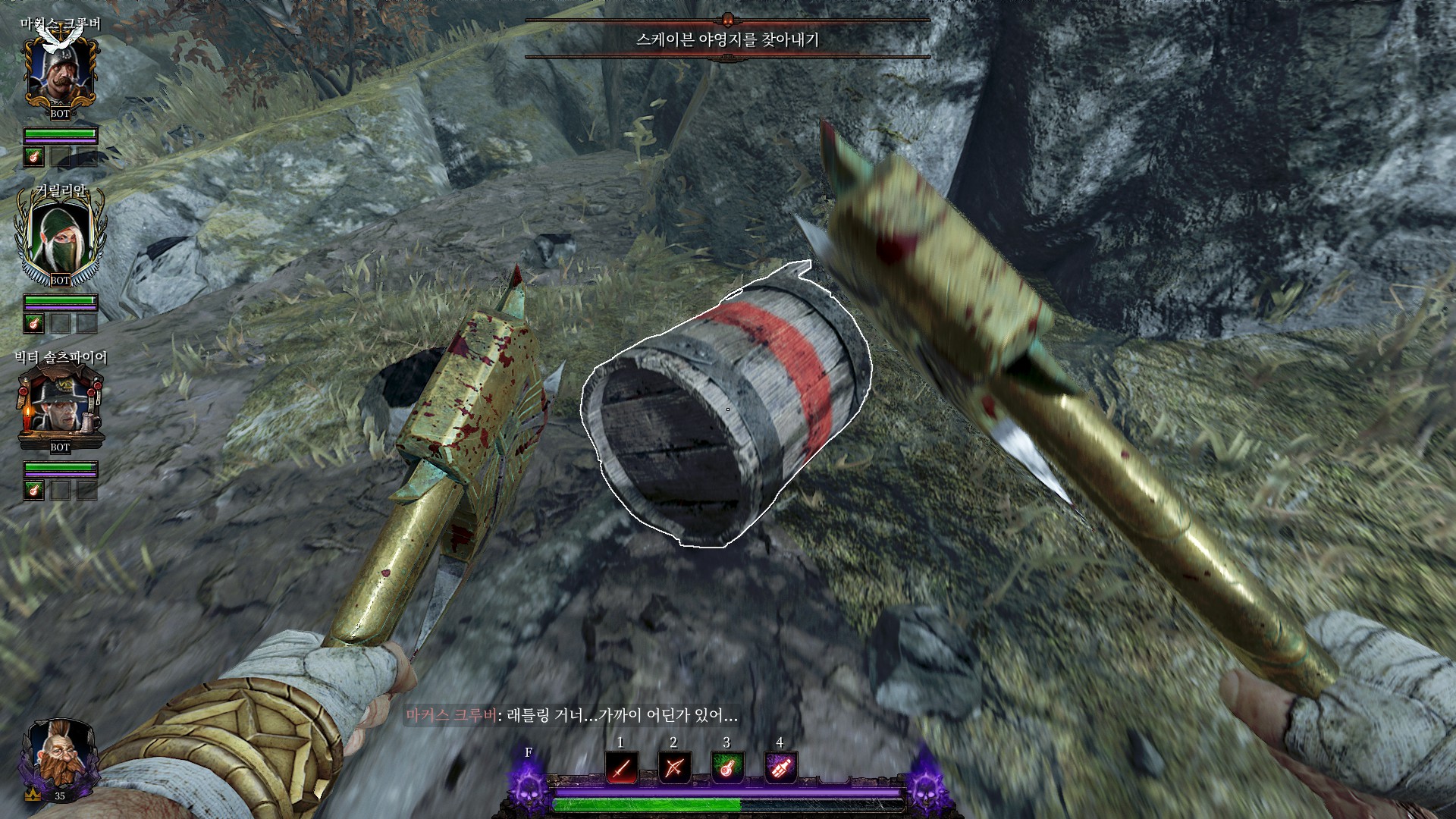 스크라이어 클랜의 전쟁기계소굴로 가서 다 때려부수라고 합니다.