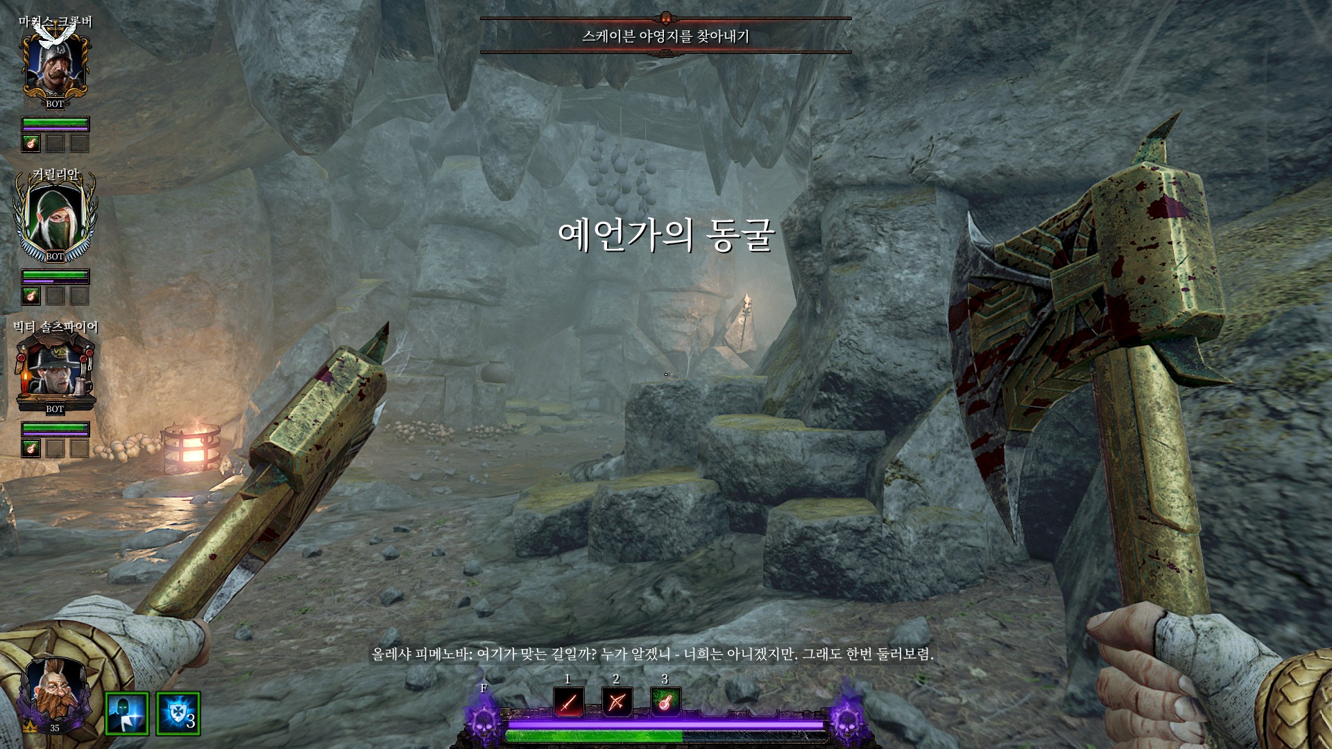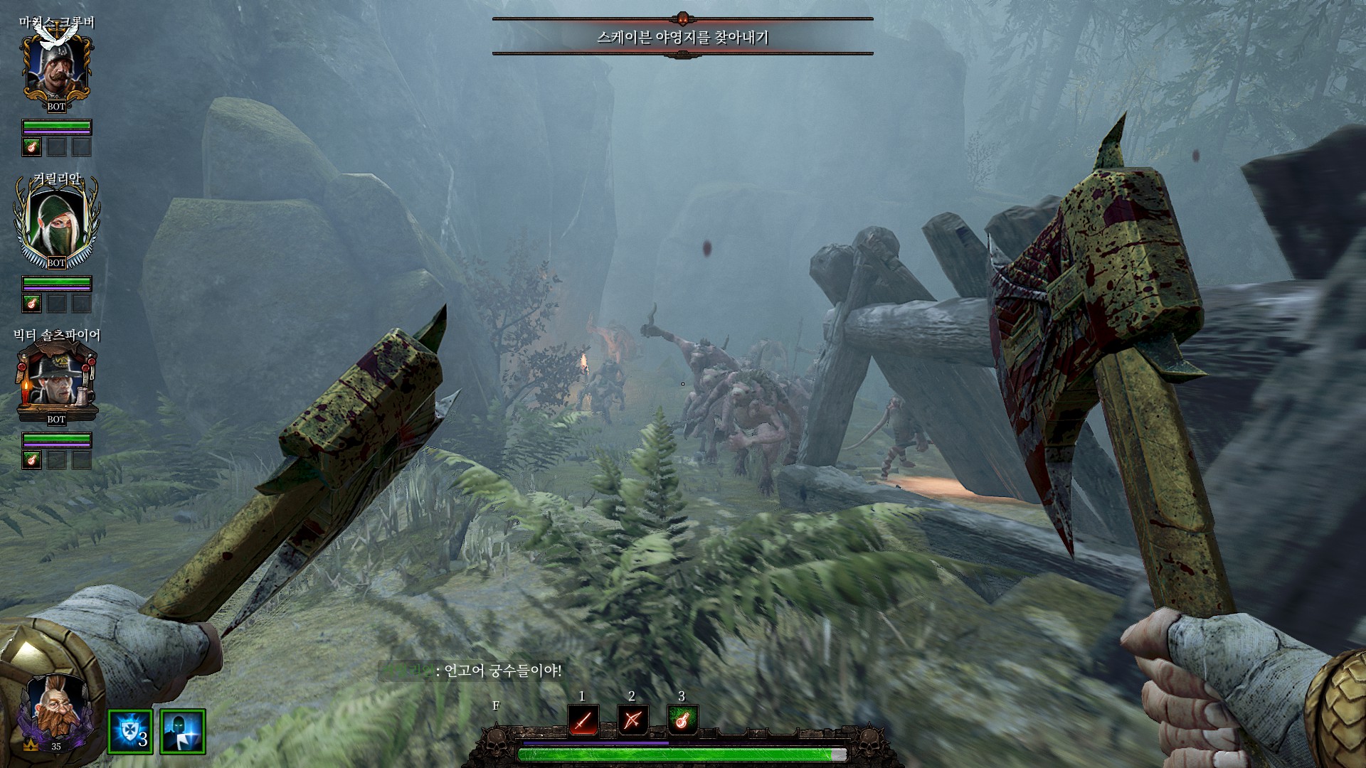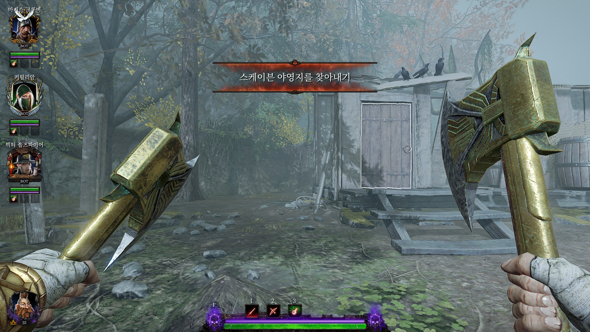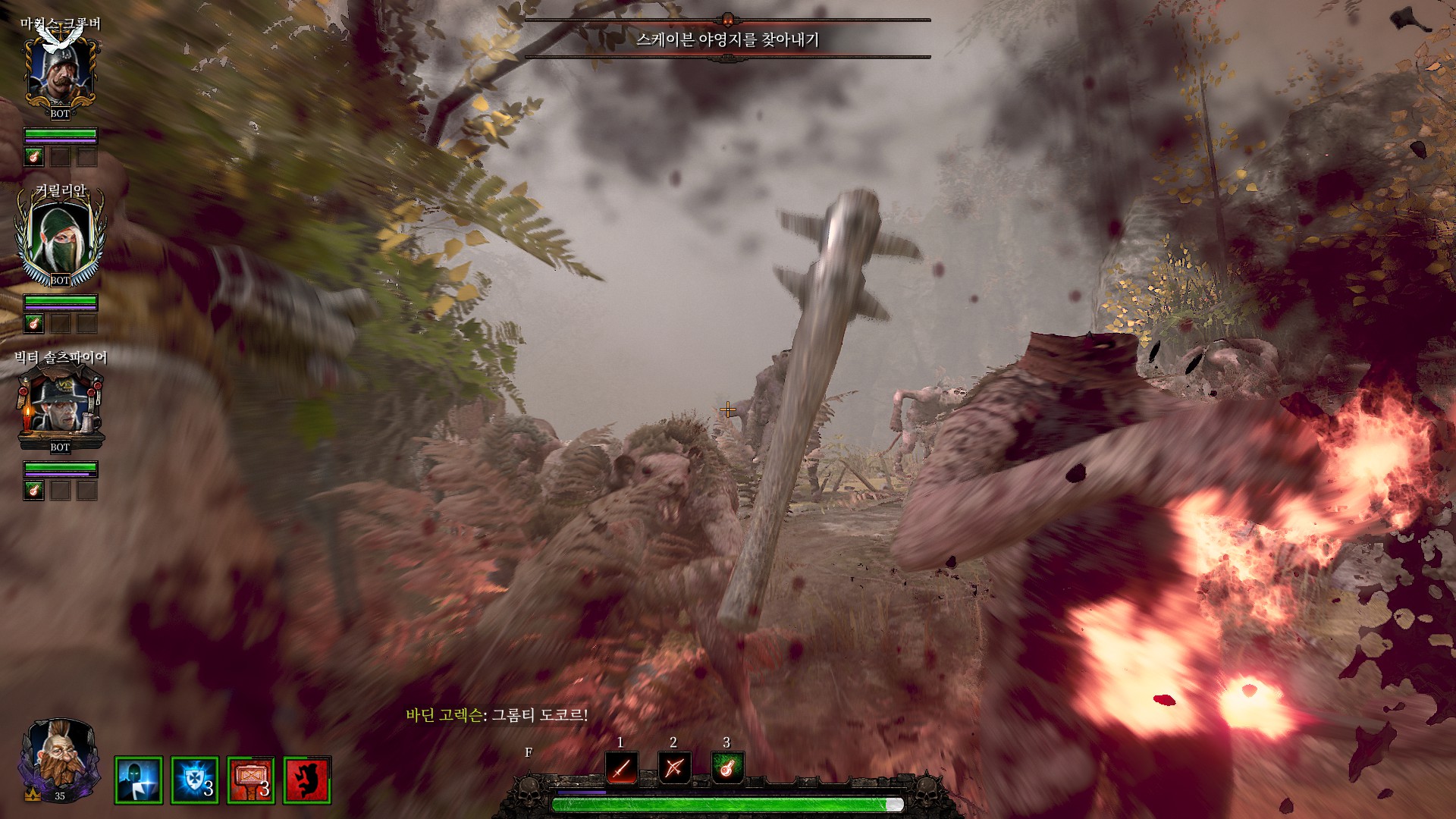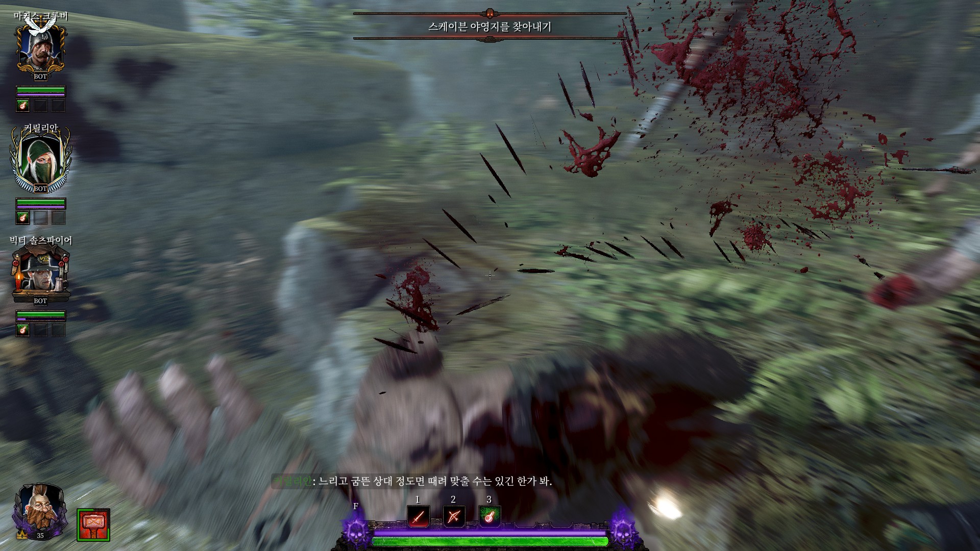 스크라이어 클랜의 전쟁기계소굴로 가서 다 때려부수라고 합니다.