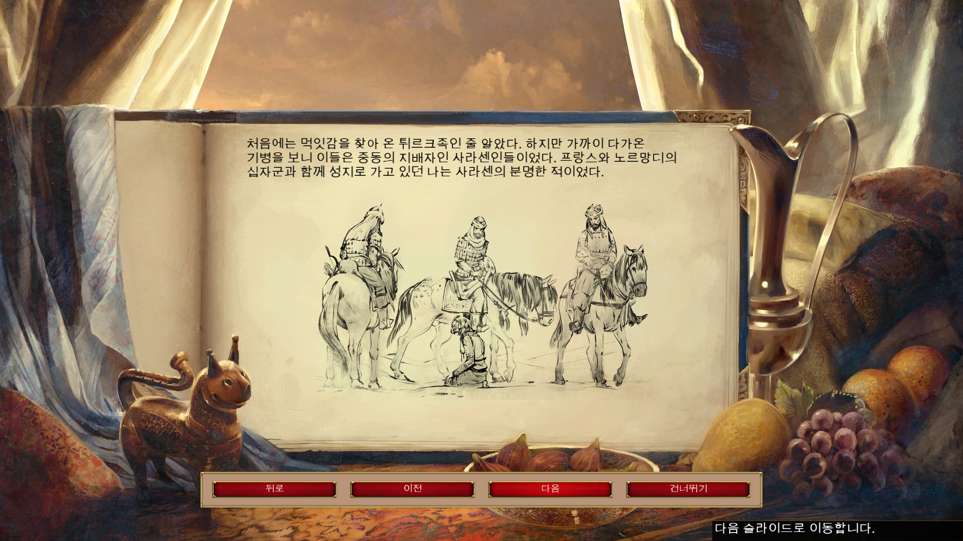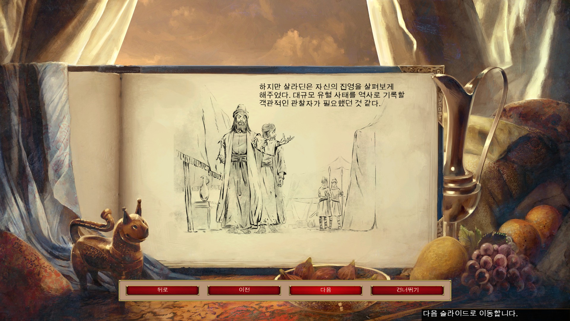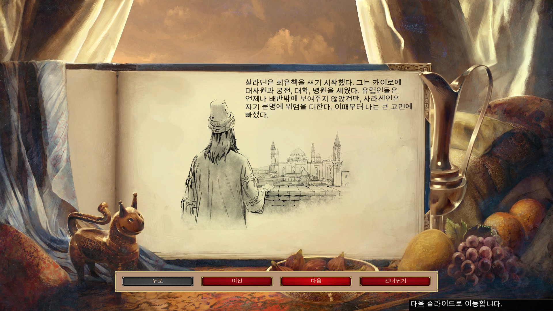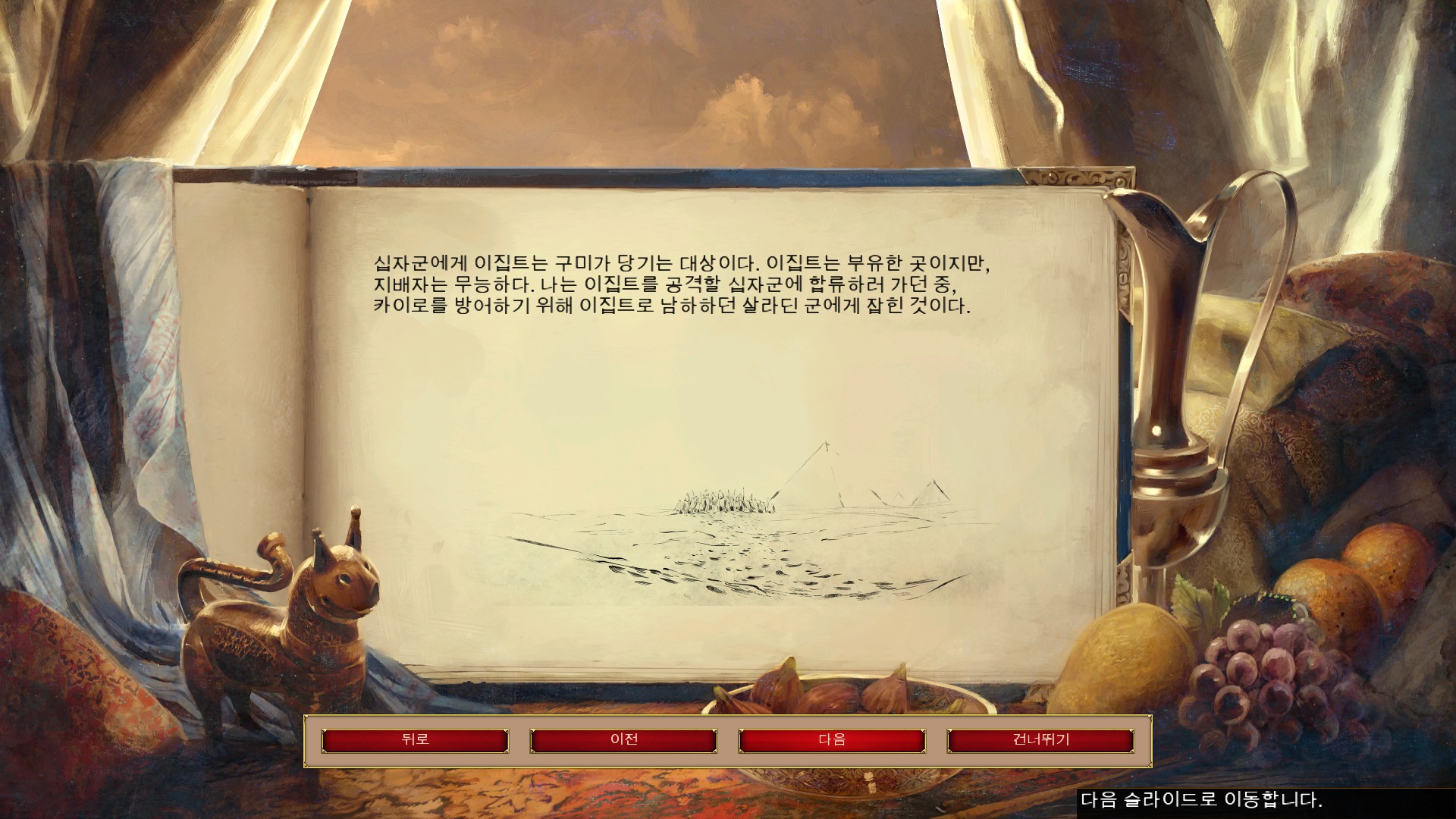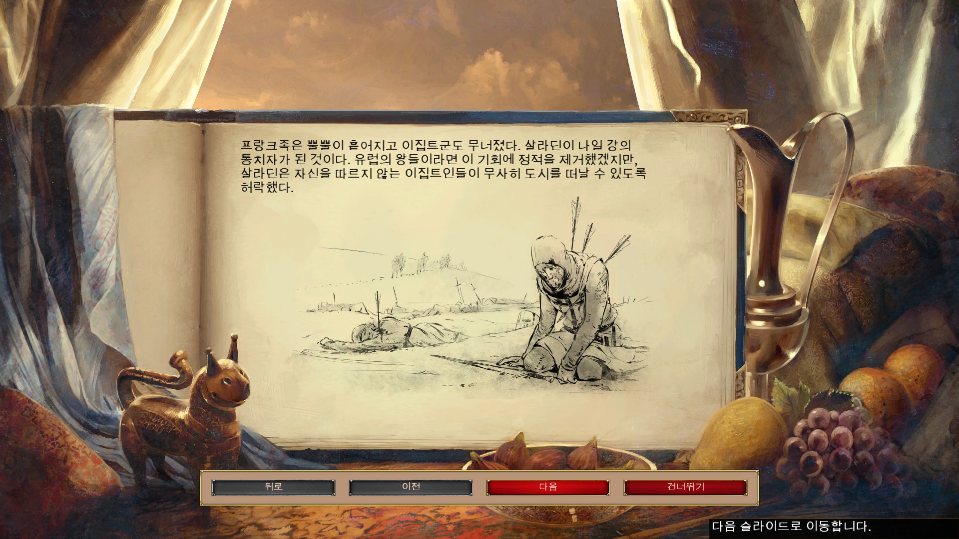 살라딘과 만나 살라딘의 이집트 원정을 이야기 하고 있습니다.