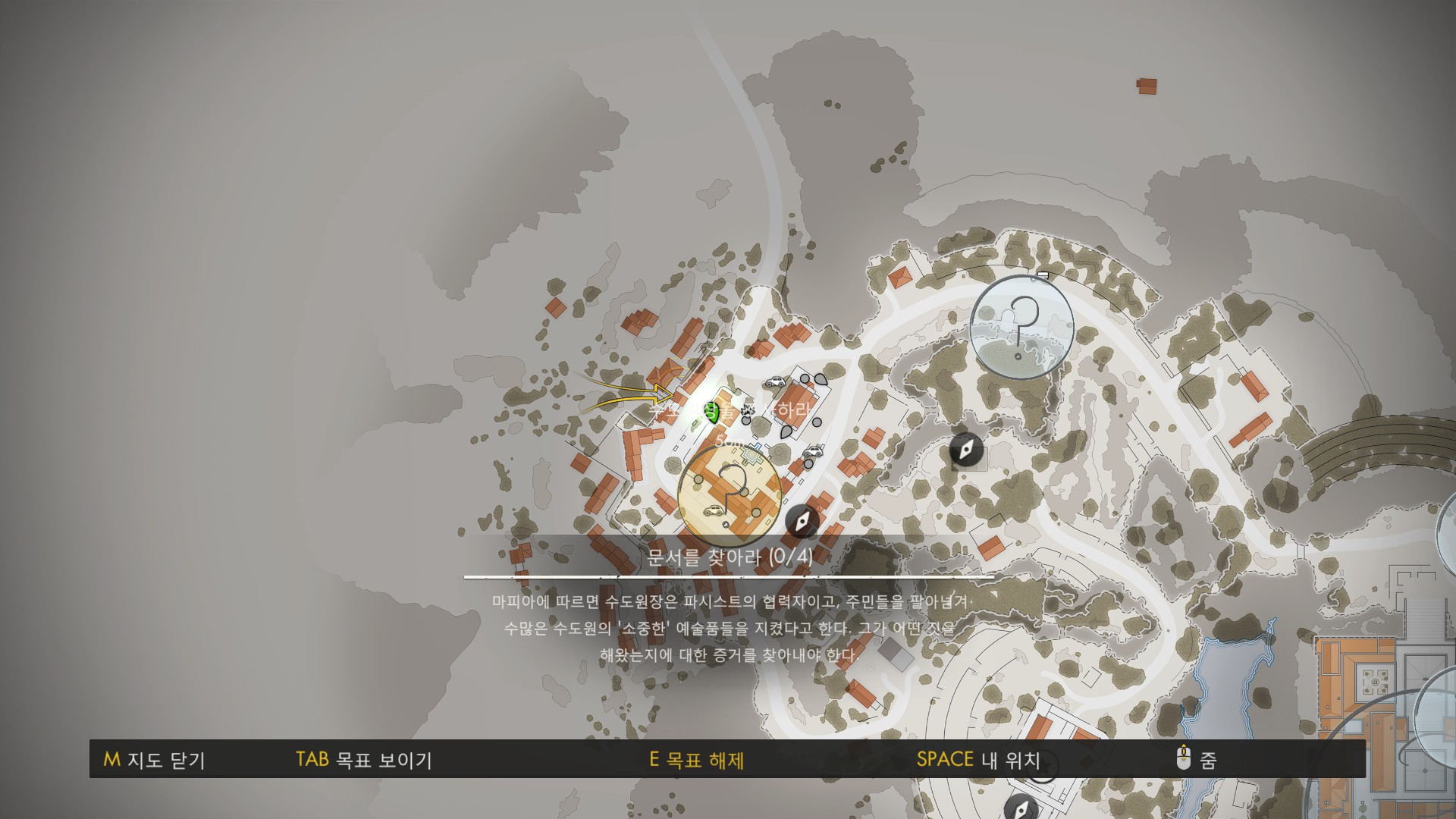 이번 미션은 크게 마을과 수도원 구역으로 나눠져있습니다.