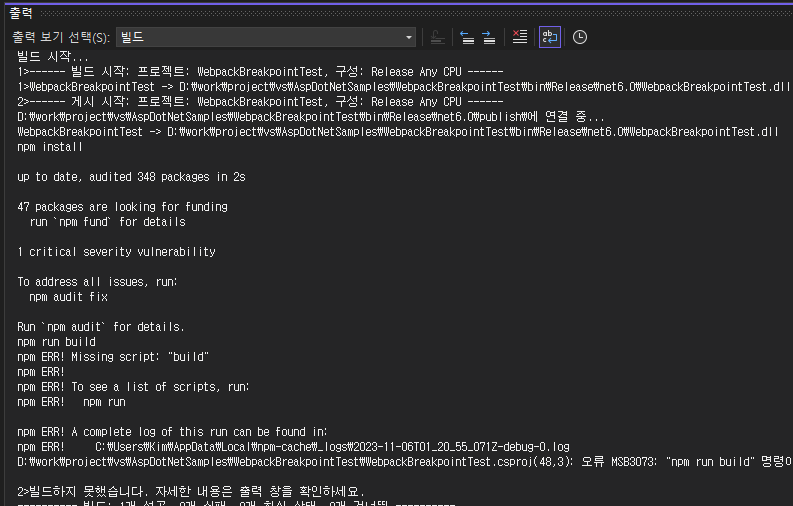 프로젝트를 더블클릭하고 'Target Name="PublishRunWebpack"'로 되어 있는 부분을 찾습니다.