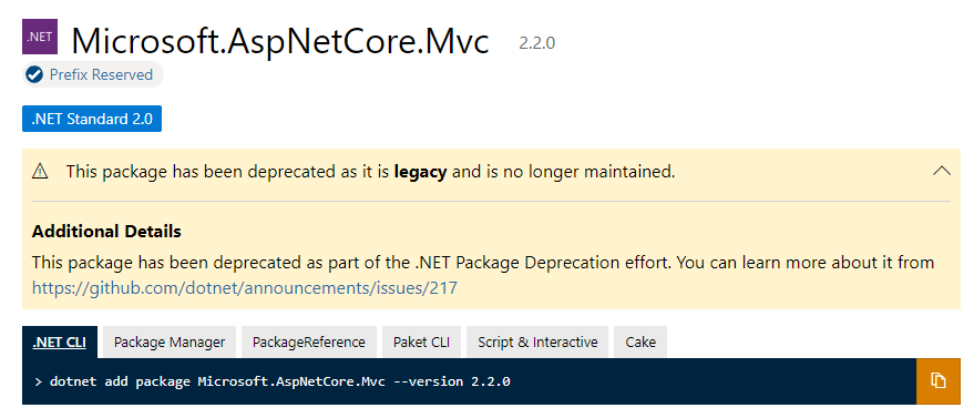 (참고 : stackoverflow - How to install Microsoft.AspNetCore.Mvc.Core with version 3.1.0 from NuGet? - Ramil Aliyev 007님 답변 )