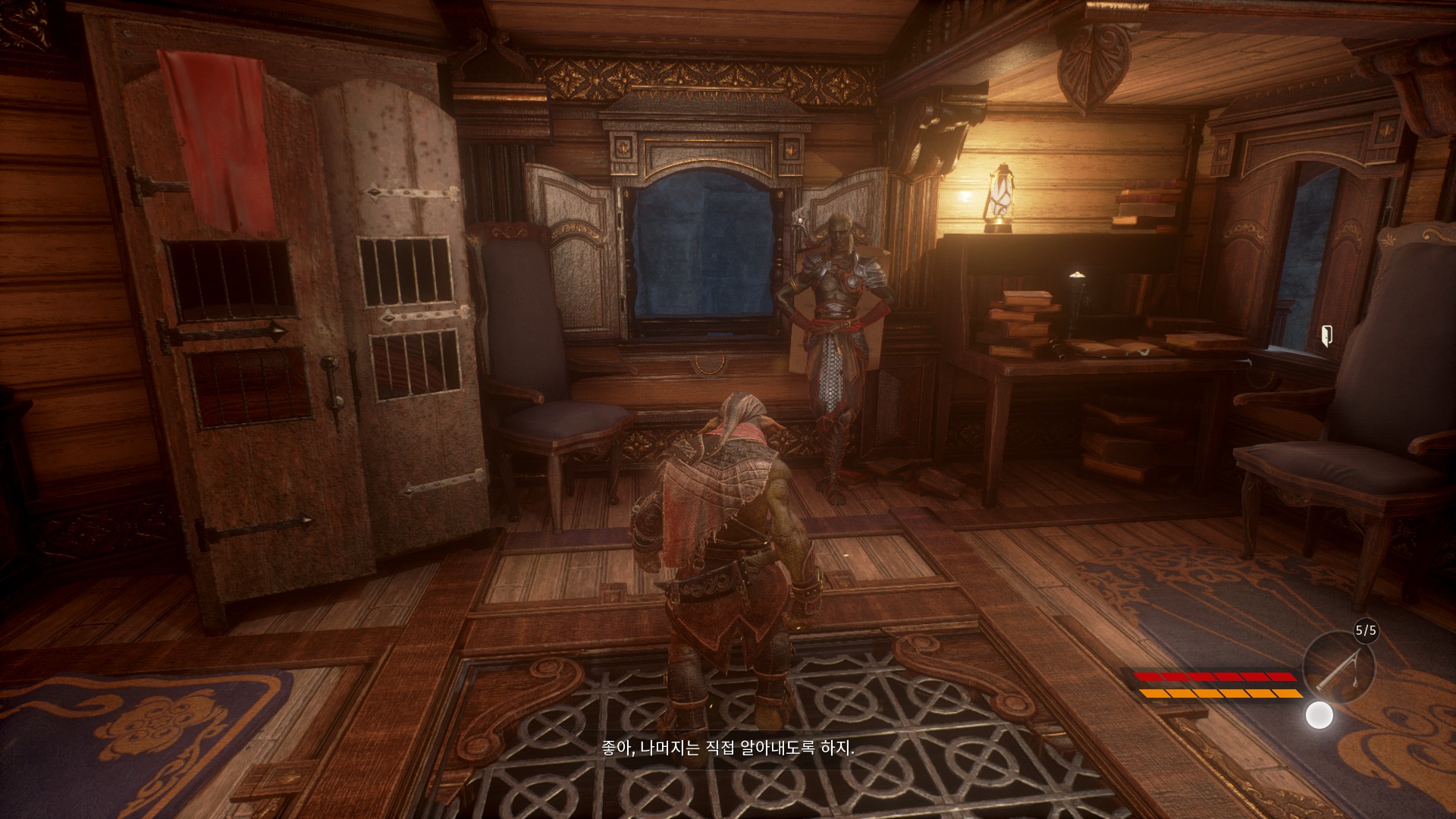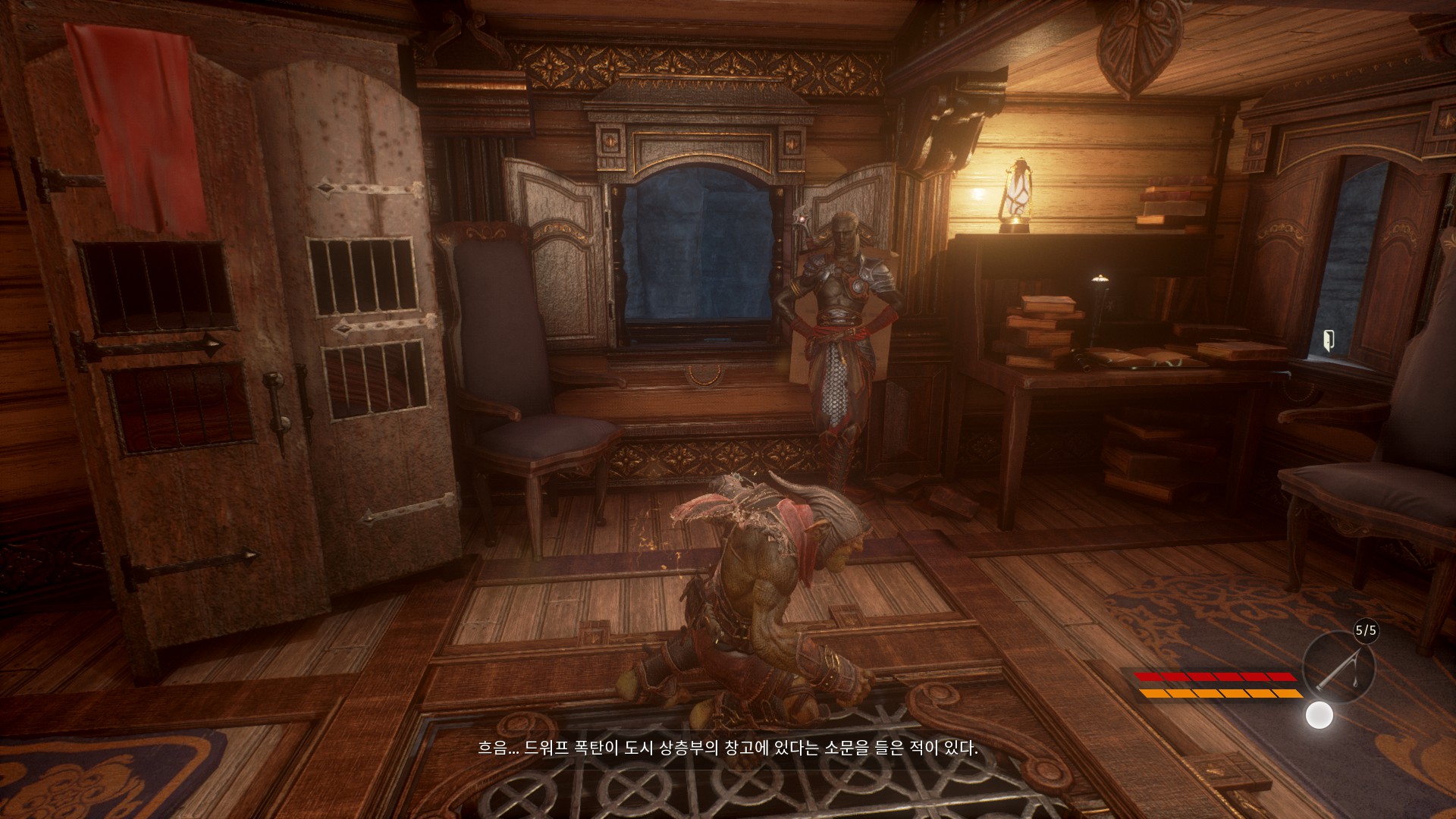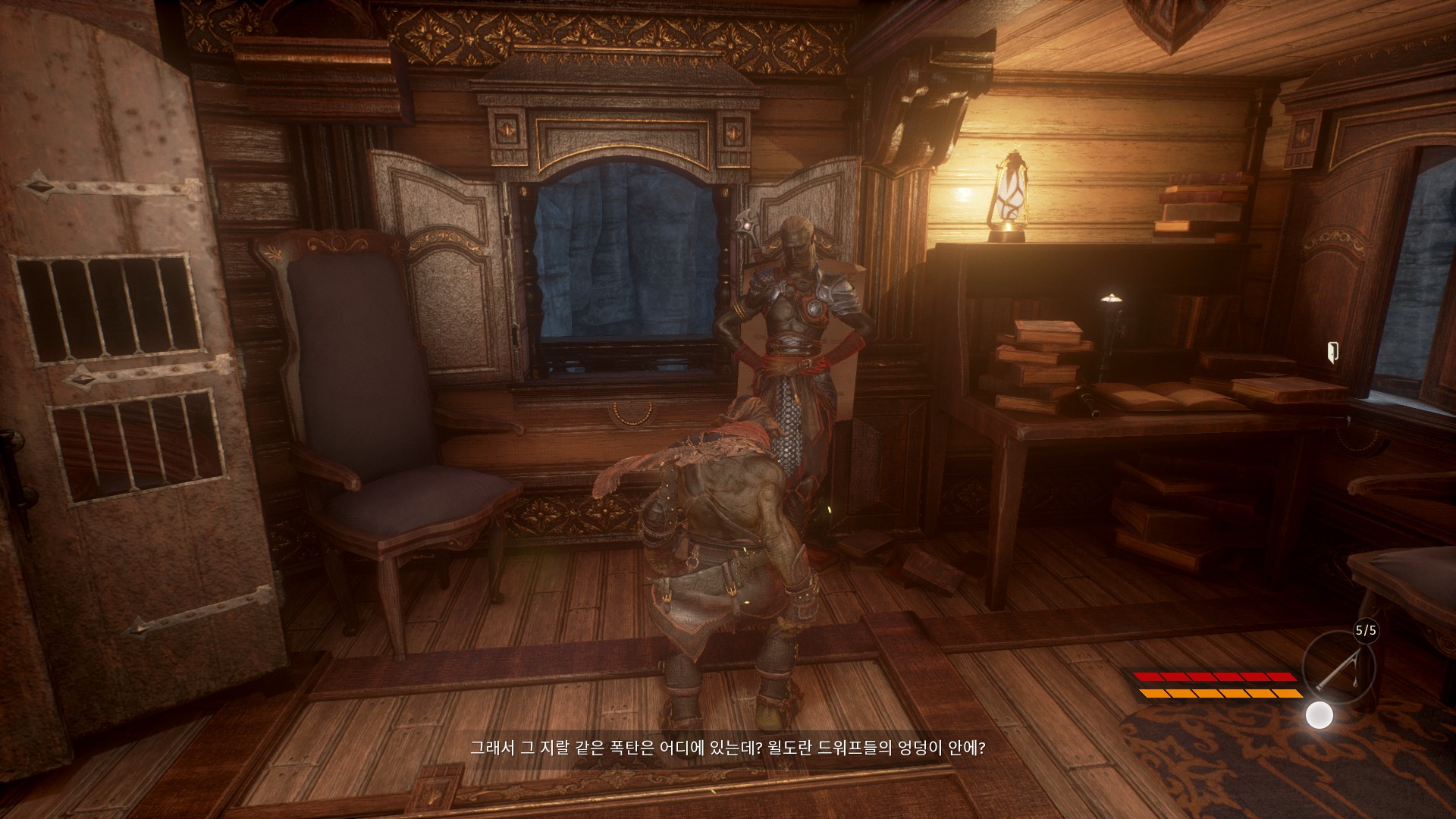 헬레드린이 없는 헬레드린의 비행선에서 드워프들을 어떻게 처리할지 회의를 하고 있습니다.