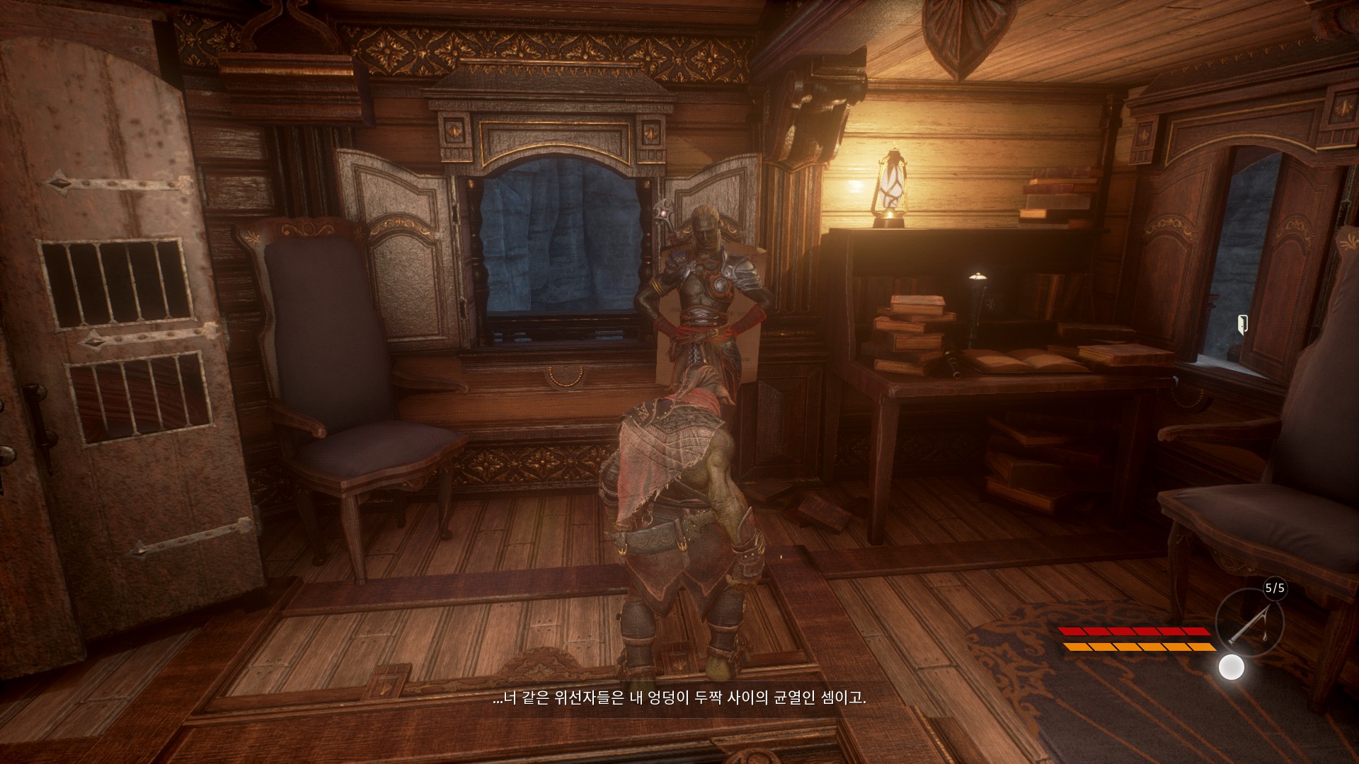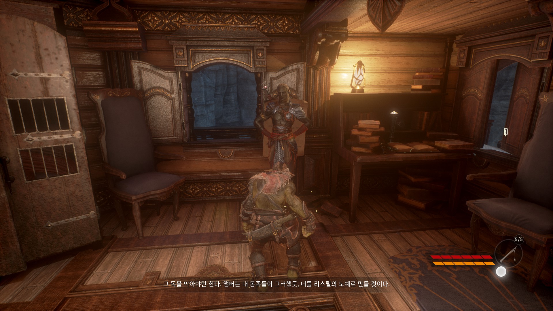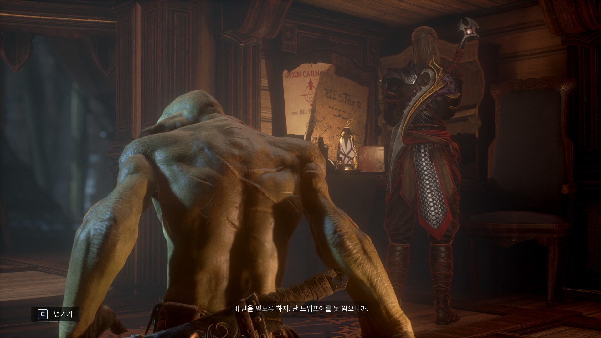 헬레드린이 없는 헬레드린의 비행선에서 드워프들을 어떻게 처리할지 회의를 하고 있습니다.