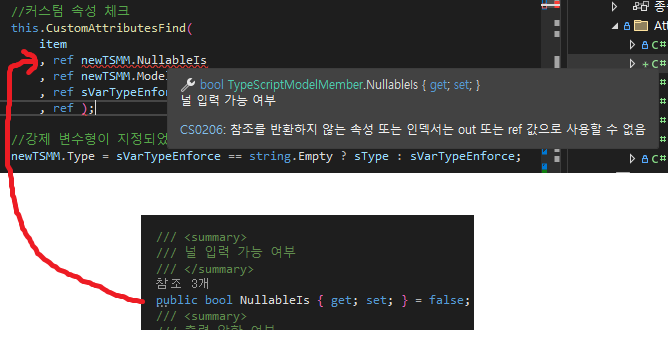 .NET에서 'out'이나 'ref' 한정자를 쓰는데 다음과 같은 에러가 났습니다.
