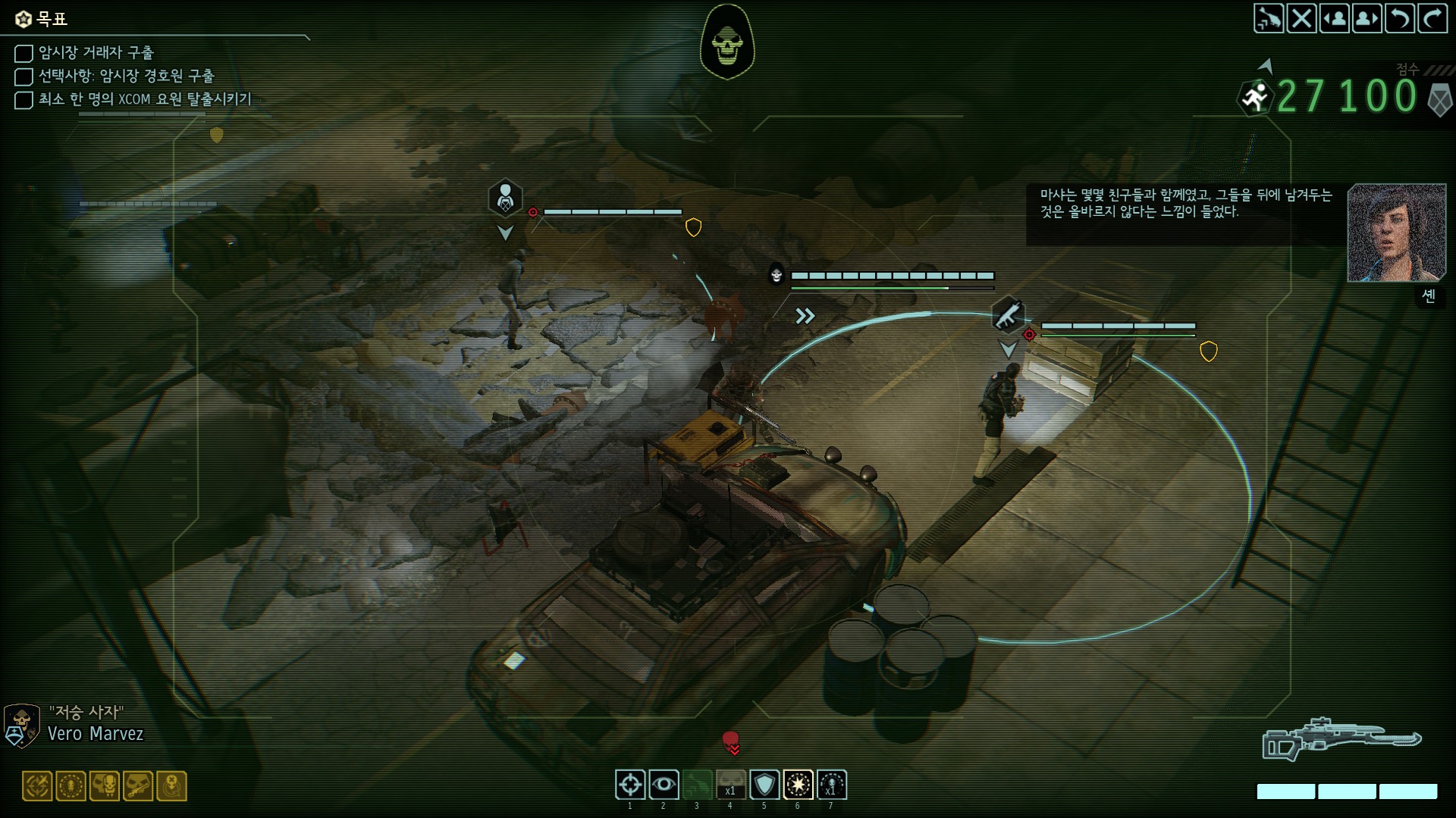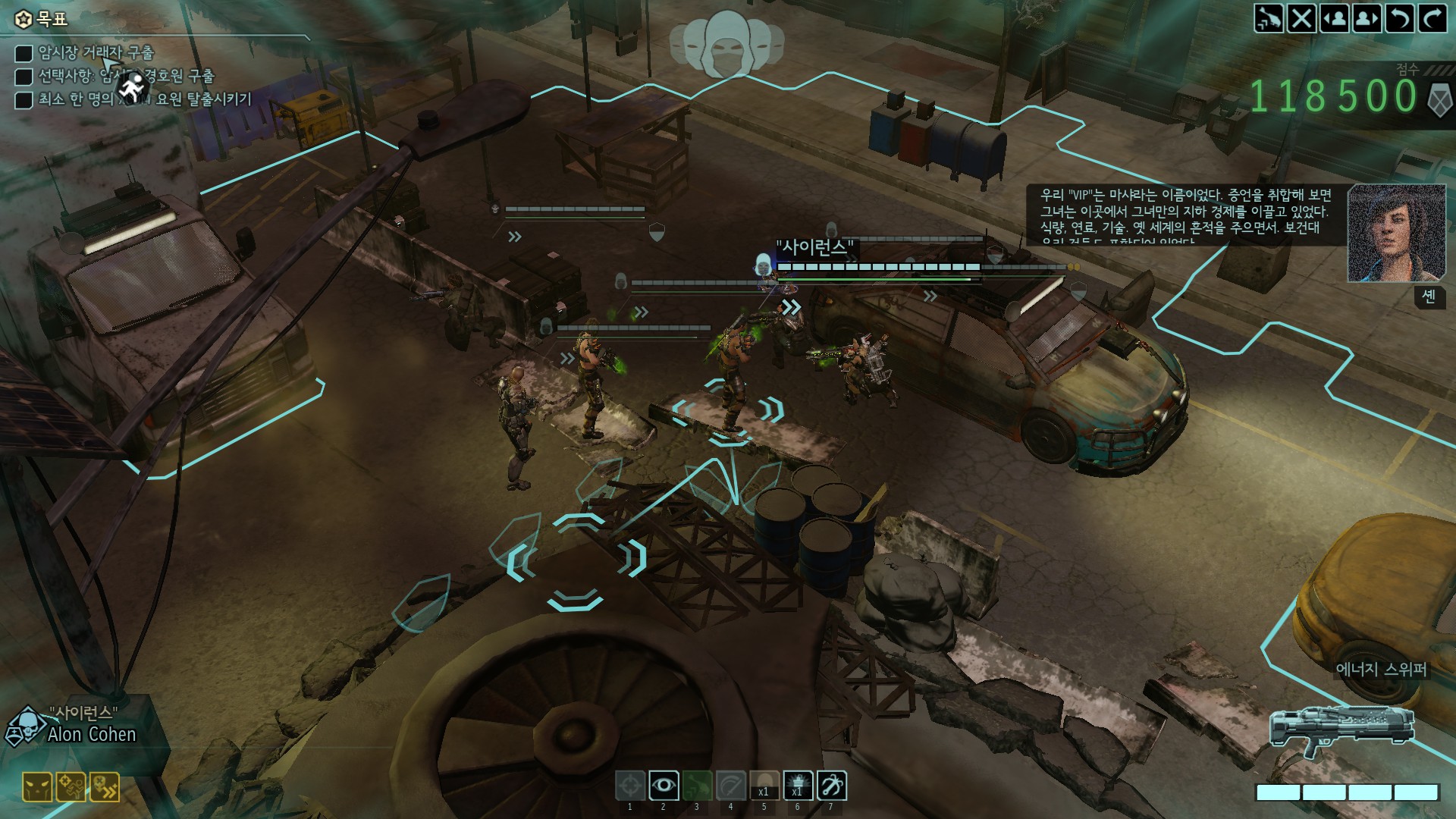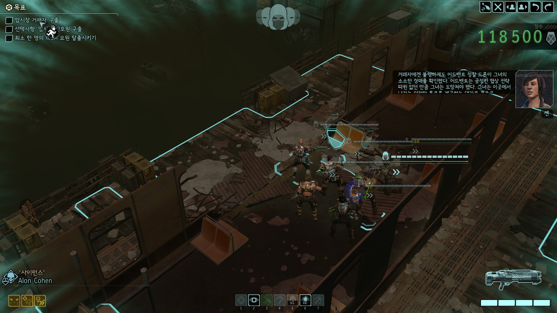 암시장의 거래상이 중요 부품을 가지고 있는데 외계인들의 공격을 받고 있습니다.