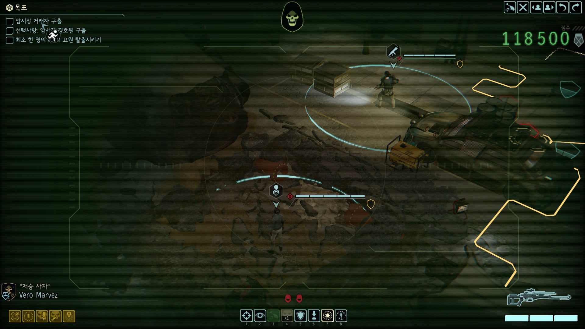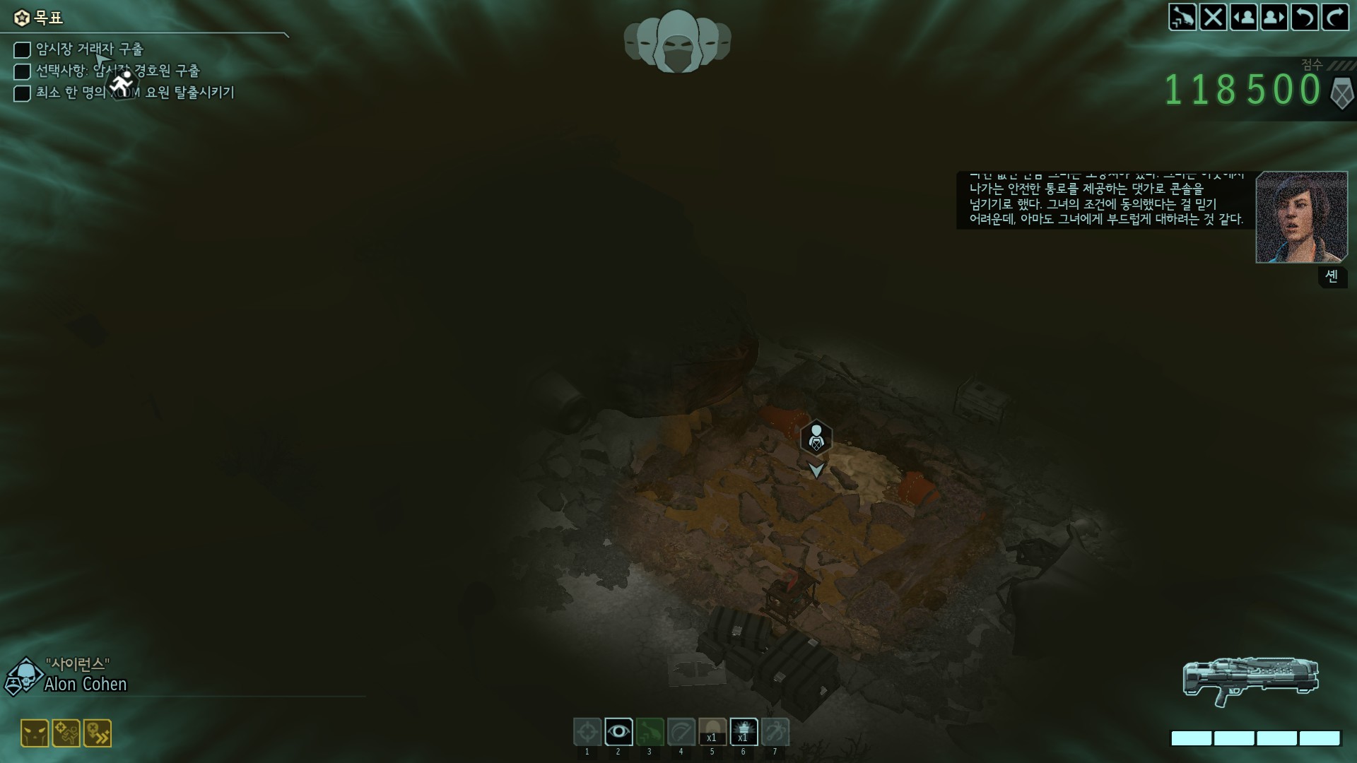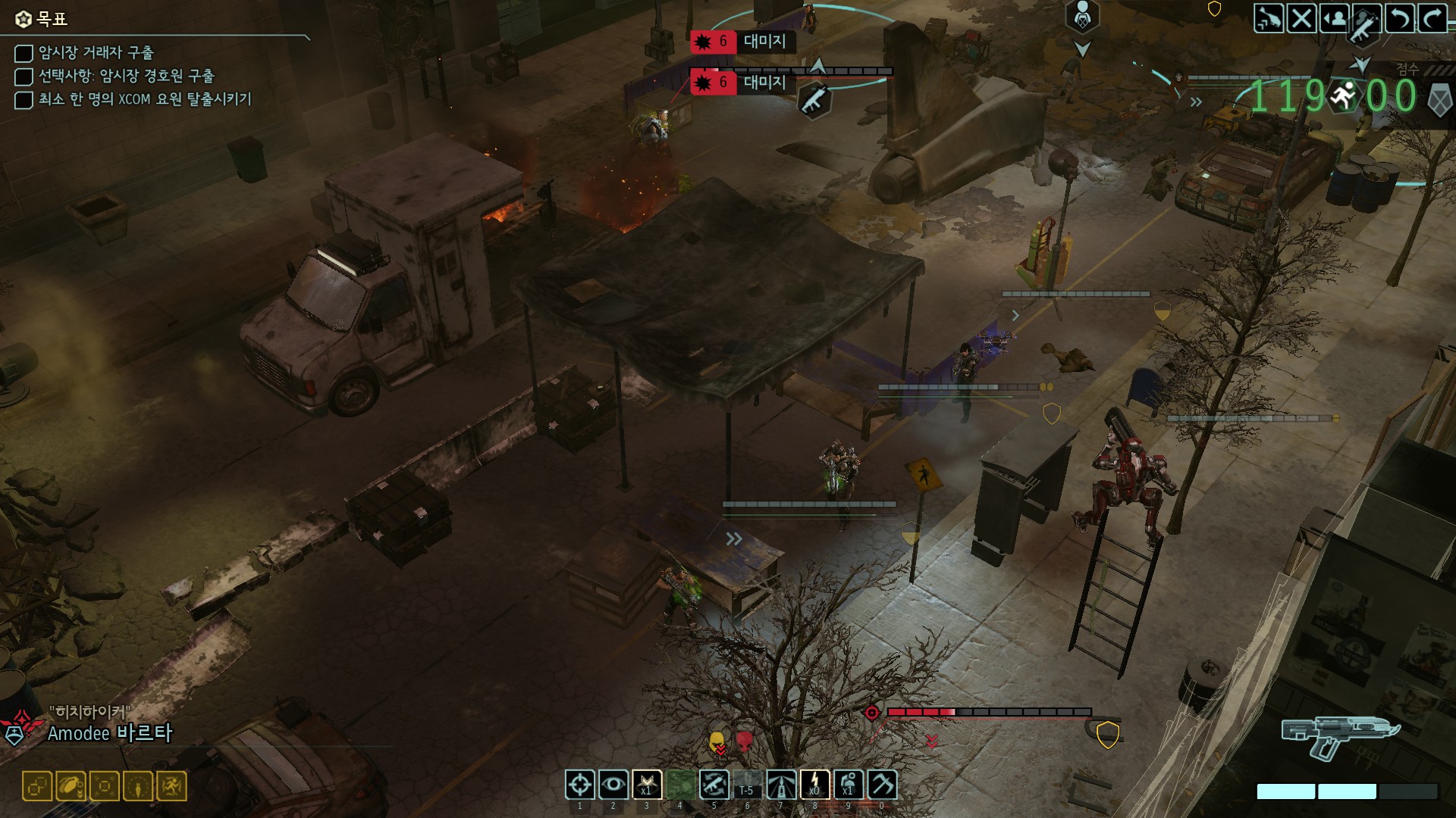 암시장의 거래상이 중요 부품을 가지고 있는데 외계인들의 공격을 받고 있습니다.