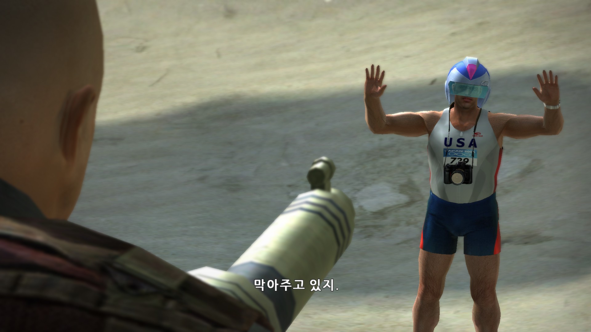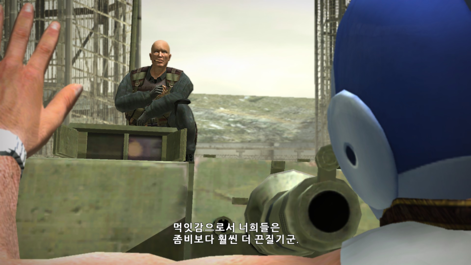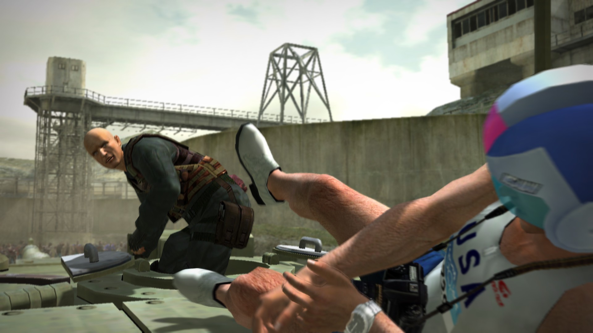 졸렬하게 탱크로 싸움걸더니 안되겠으니까 탱크위에서 주먹다짐을 합니다.