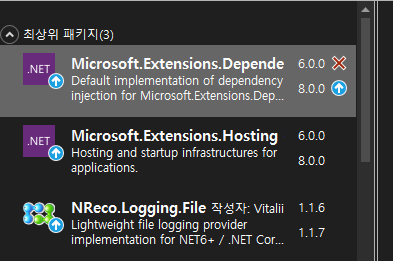 종속성 주입 구현을 위해서 아래 패키지를 누겟(Nuget)에서 찾아 설치해 줍니다.