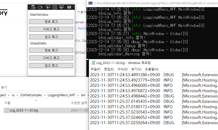 테스트 프로젝트 : githug - DotNetSamples/LoggingNReco_WPF