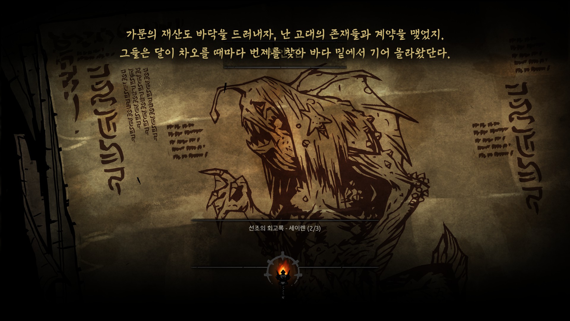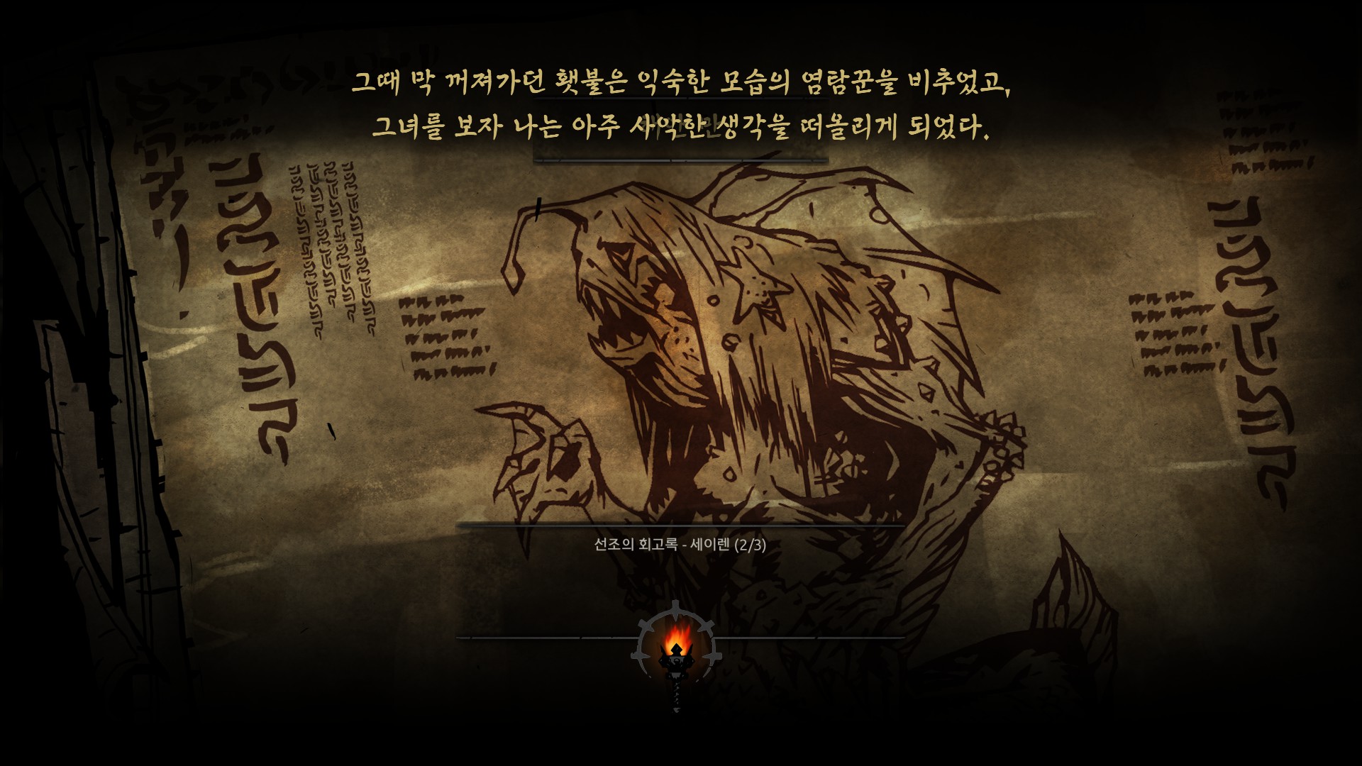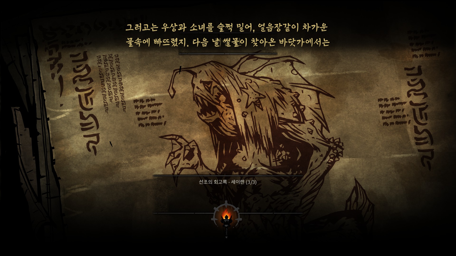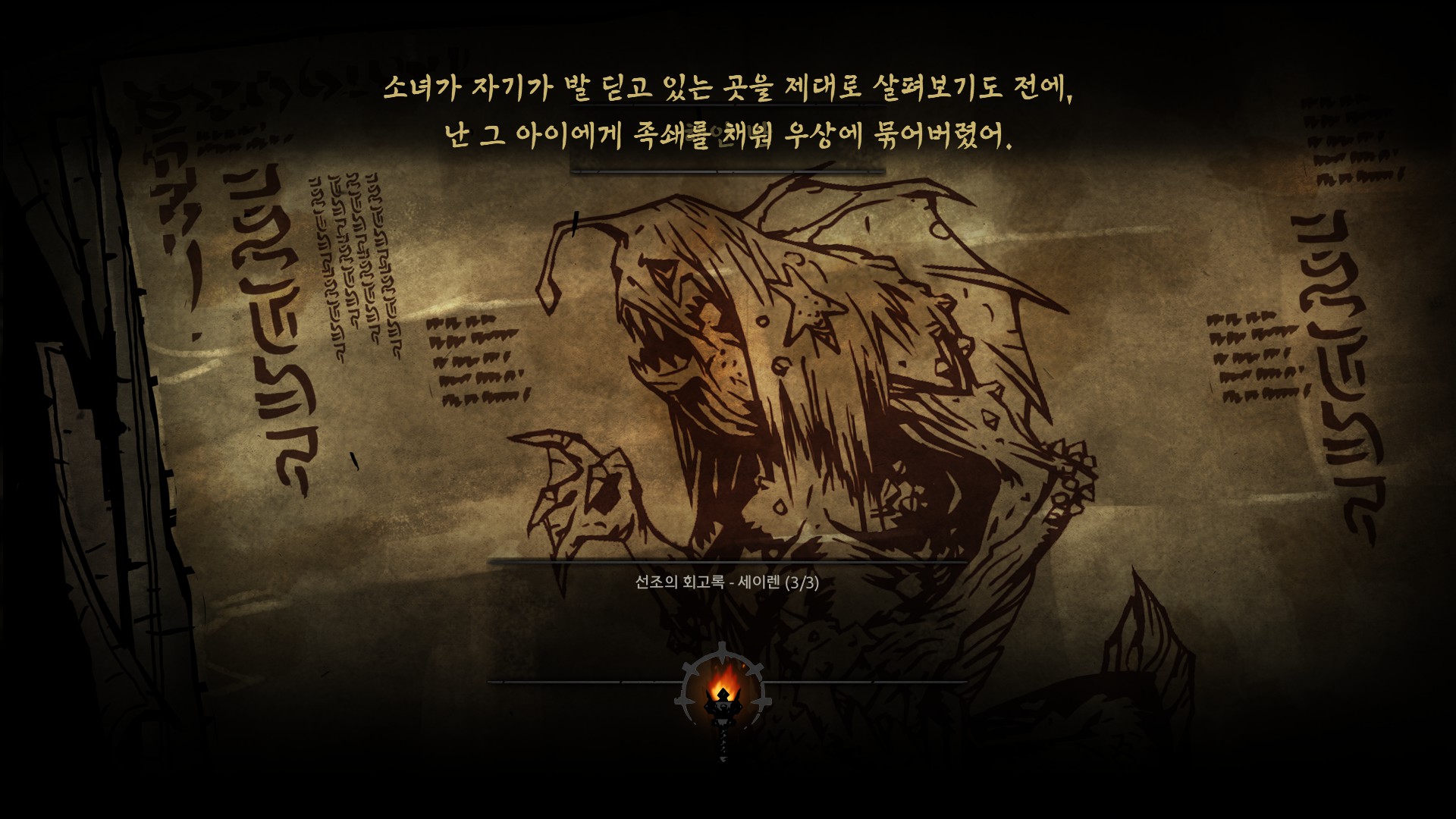 마을의 어린소녀를 제물로 바치는 선조의 인성을 볼 수 있습니다.