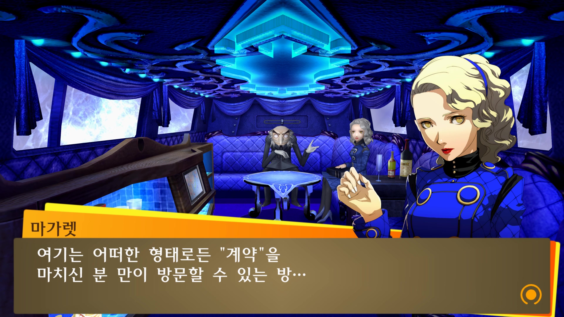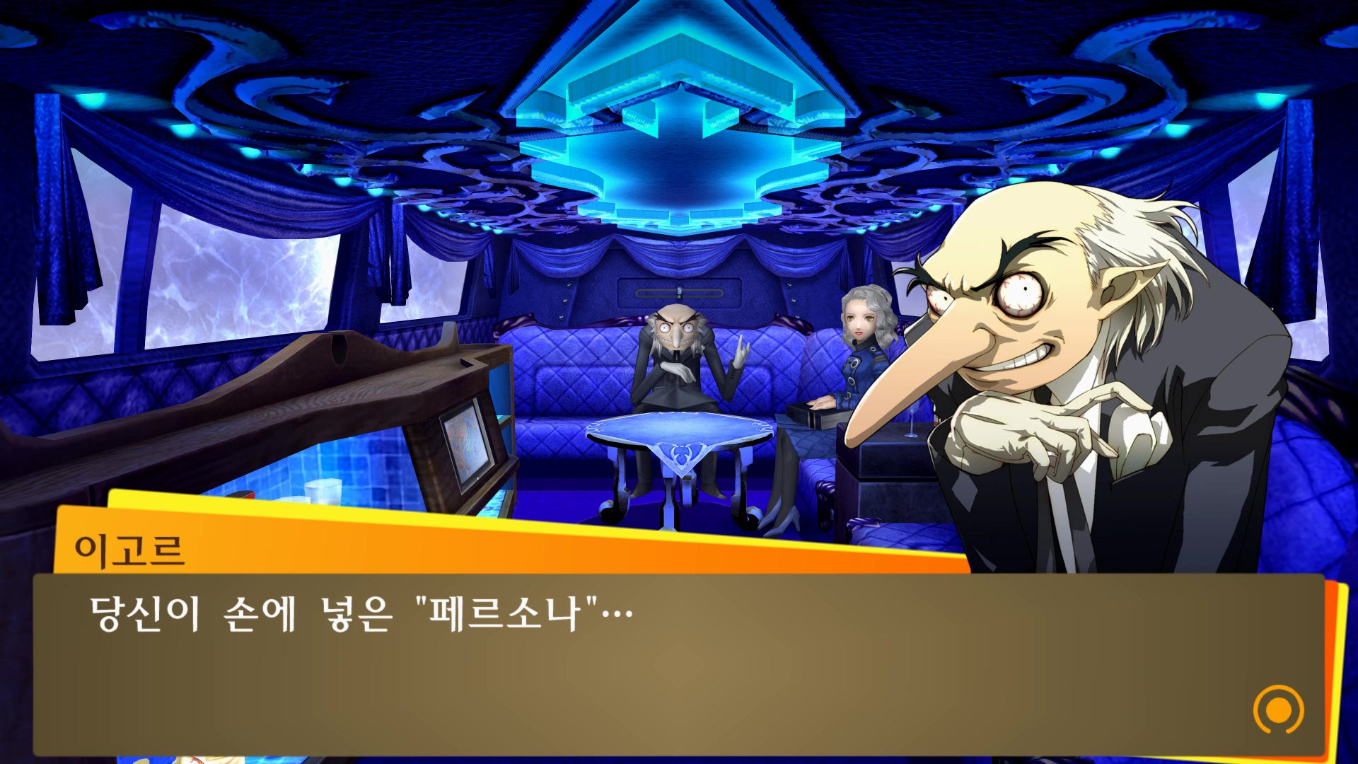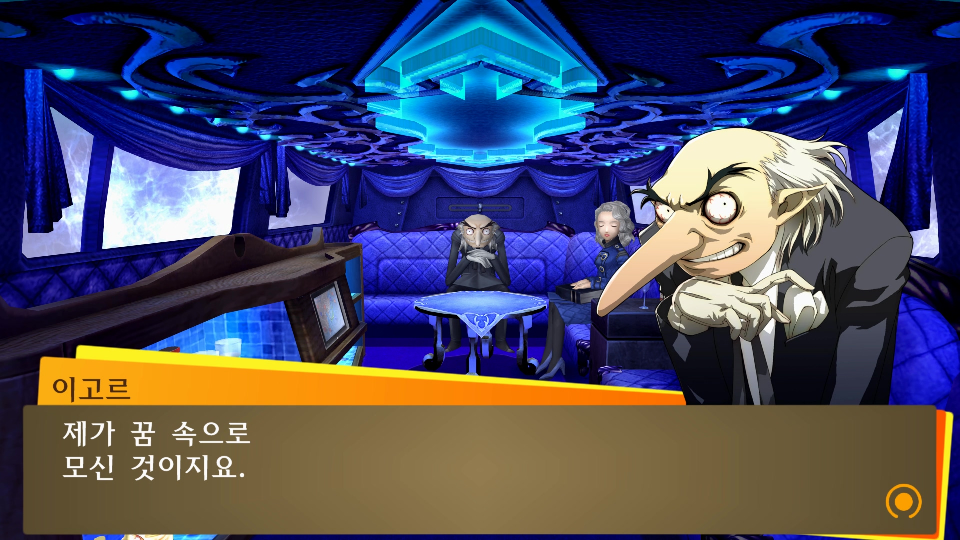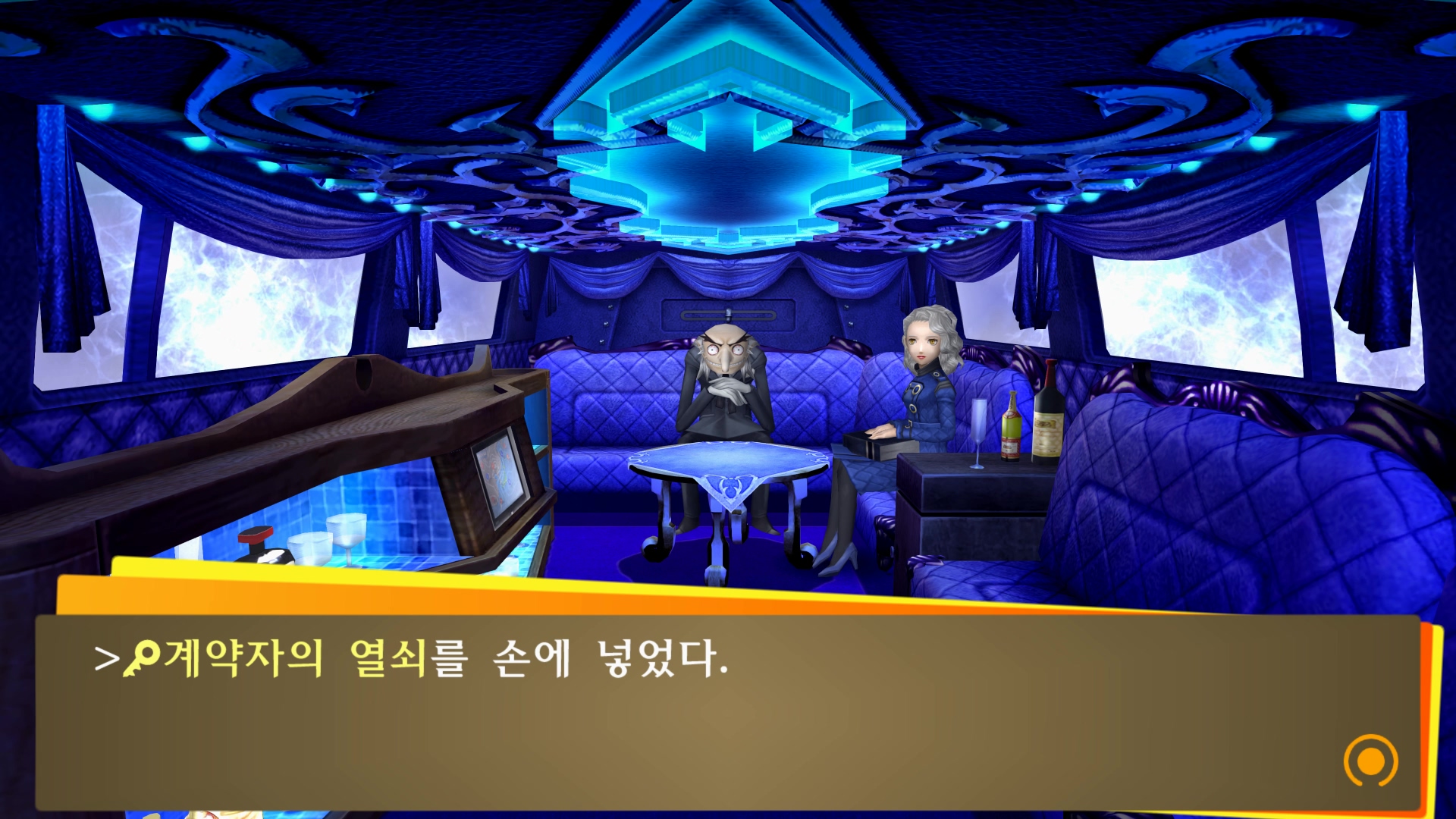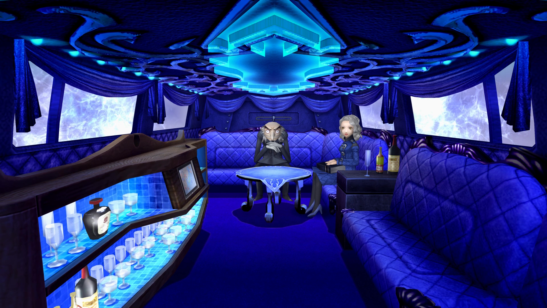 마치 리무진에 타고 있는 듯한 벨벳룸 연출...