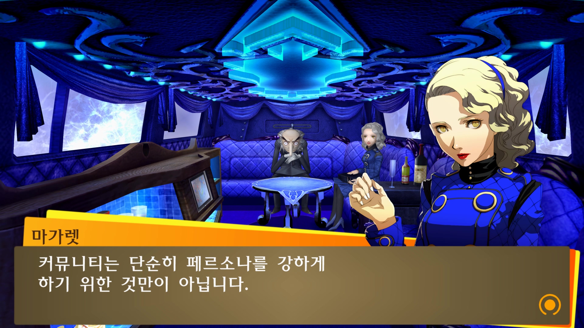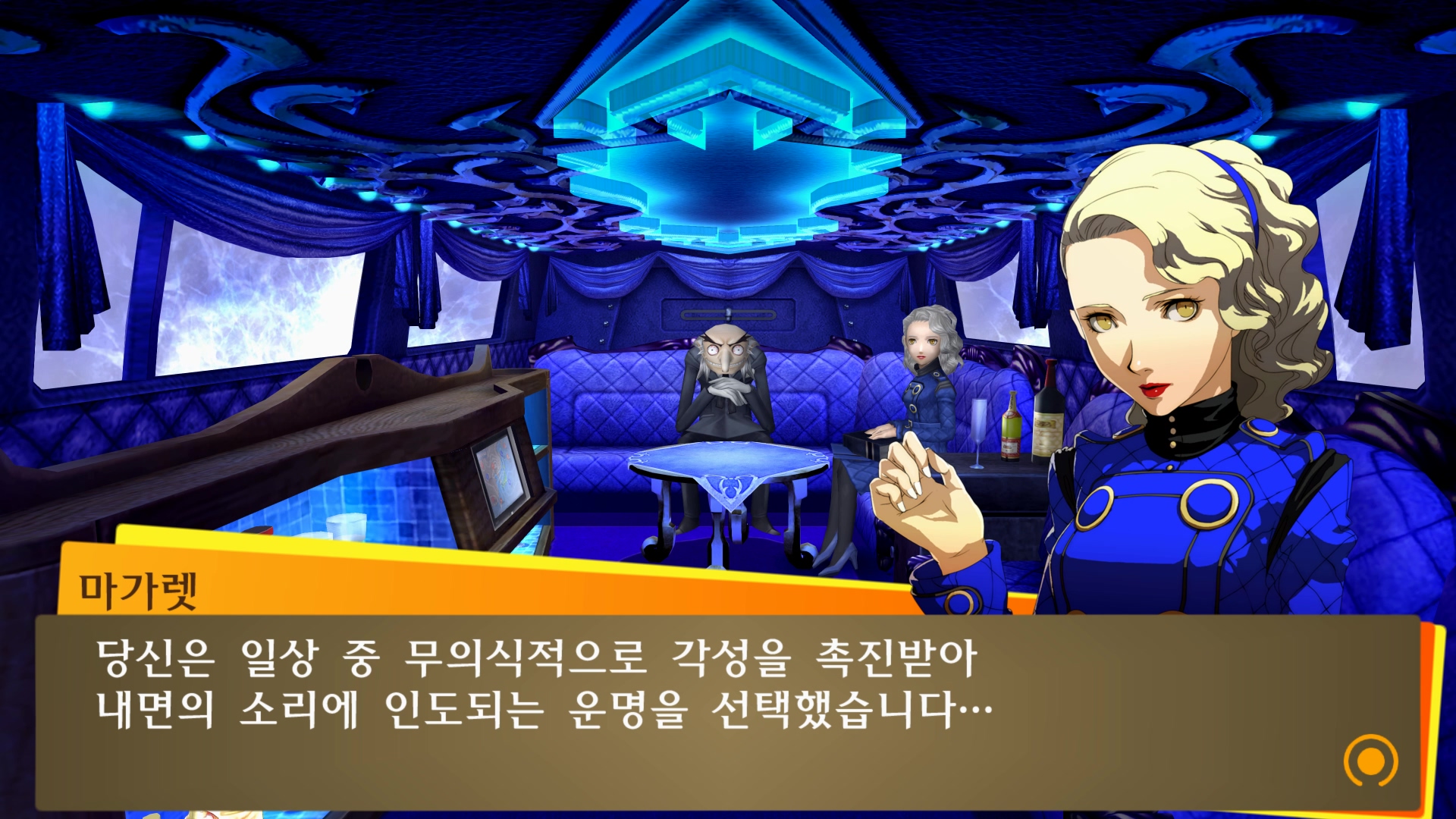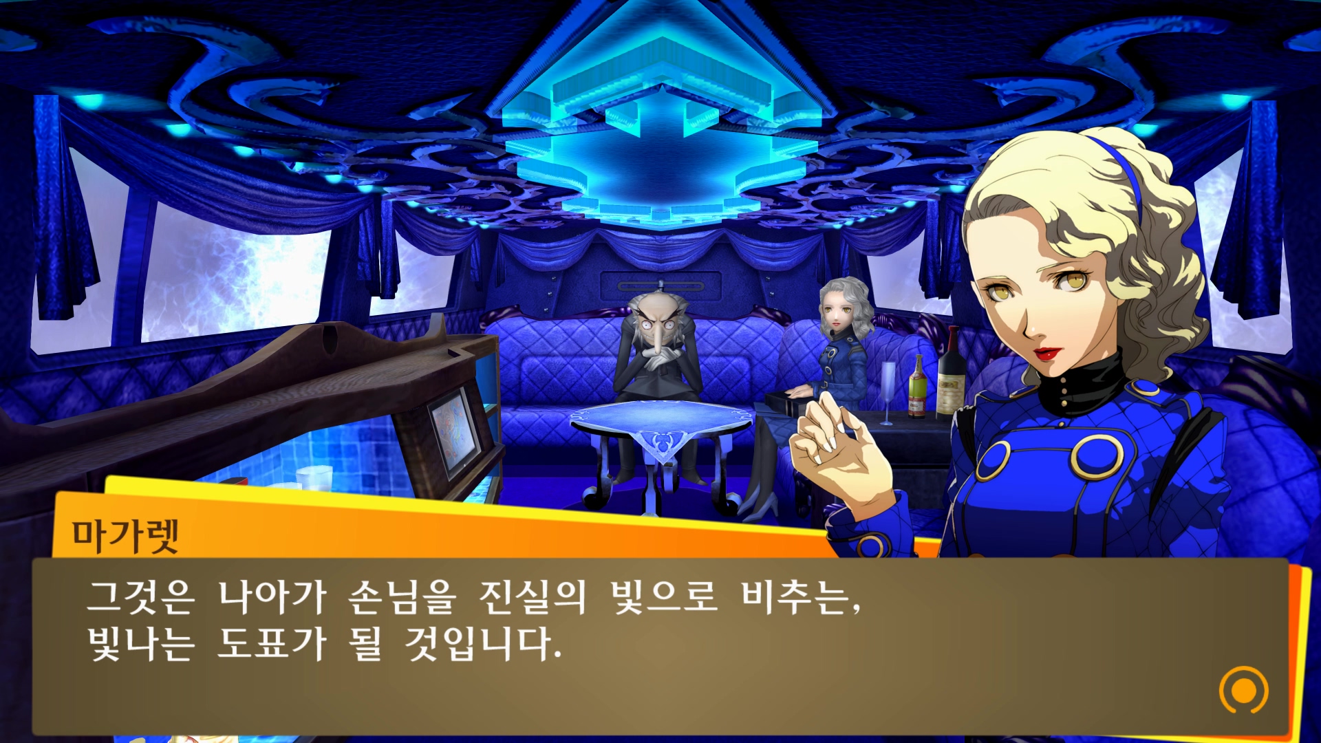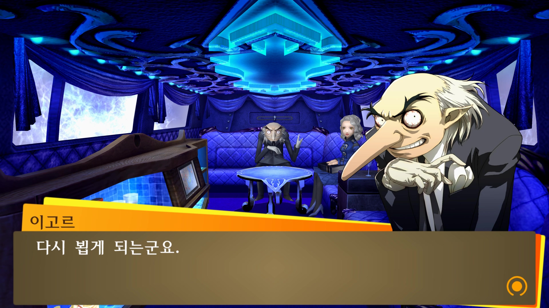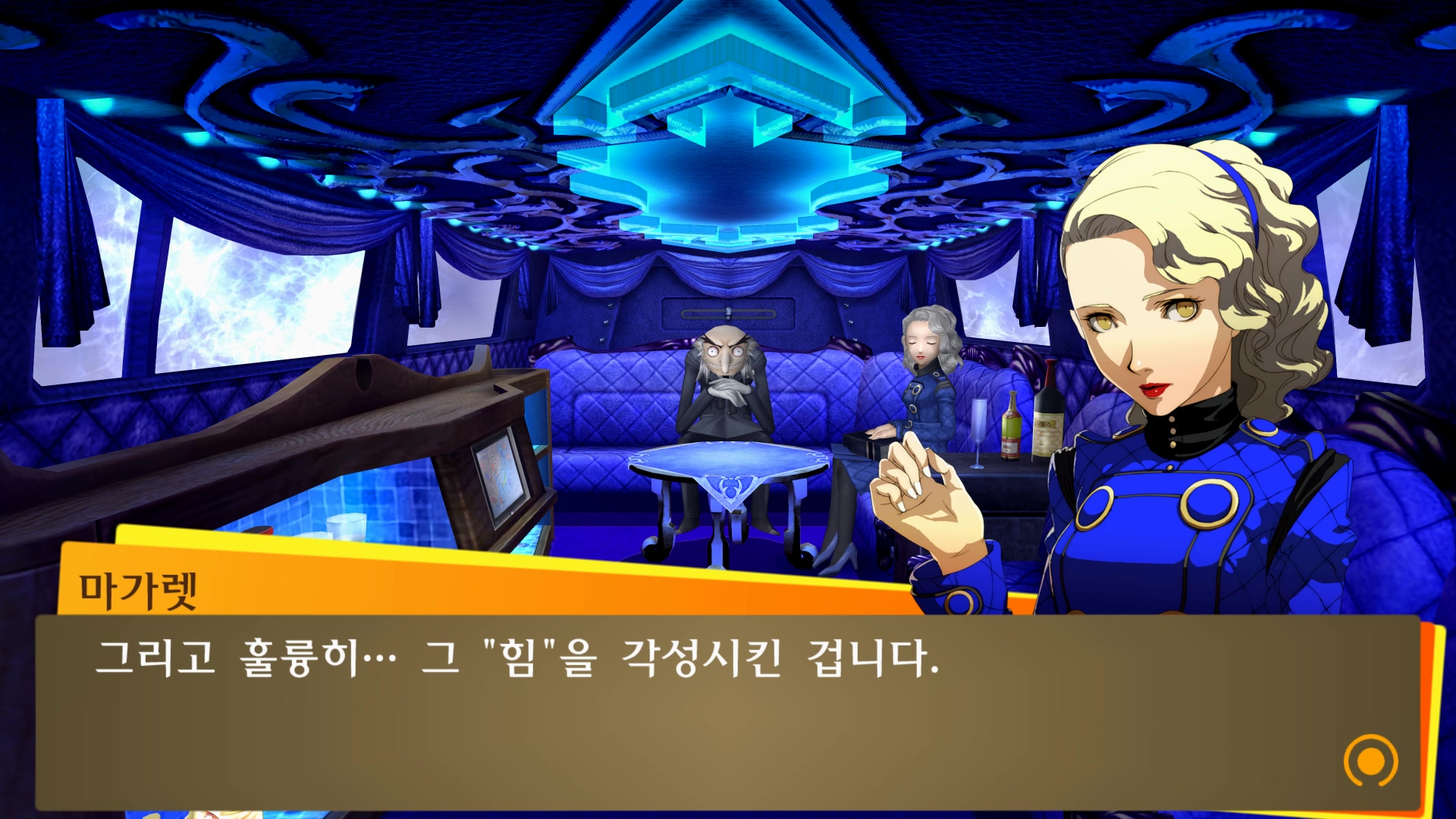 마치 리무진에 타고 있는 듯한 벨벳룸 연출...