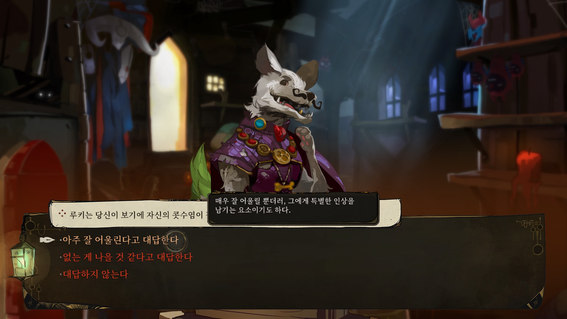 루키가 자신의 콧수염이 어떤지 물어보는군요.....