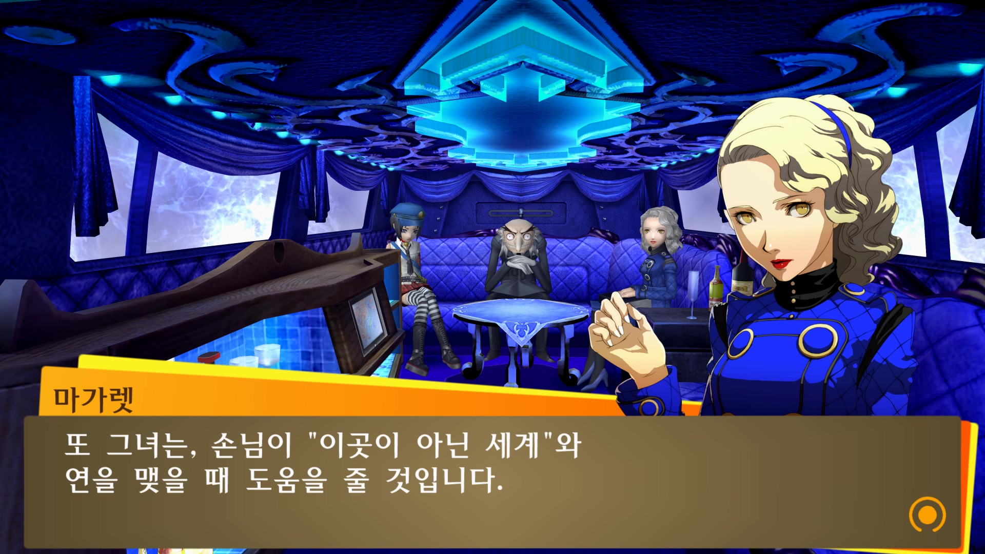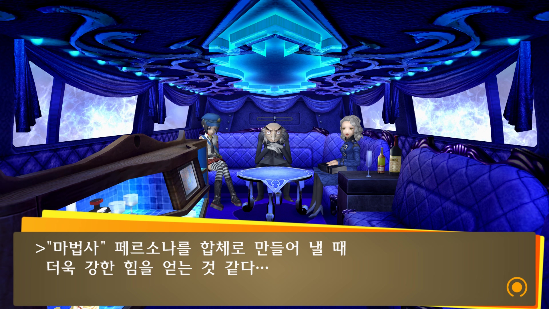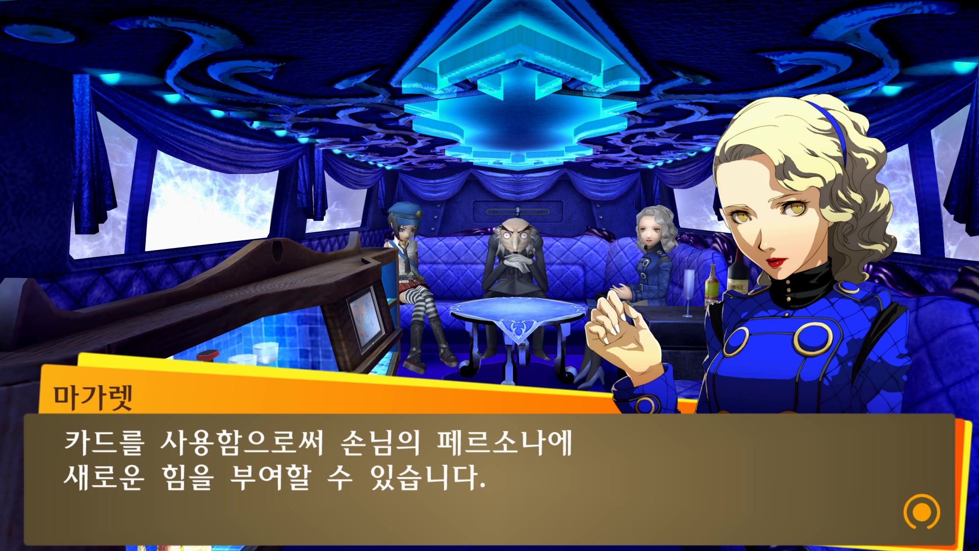 벨벳룸에서 할 수 있는 것들을 설명해주는군요.