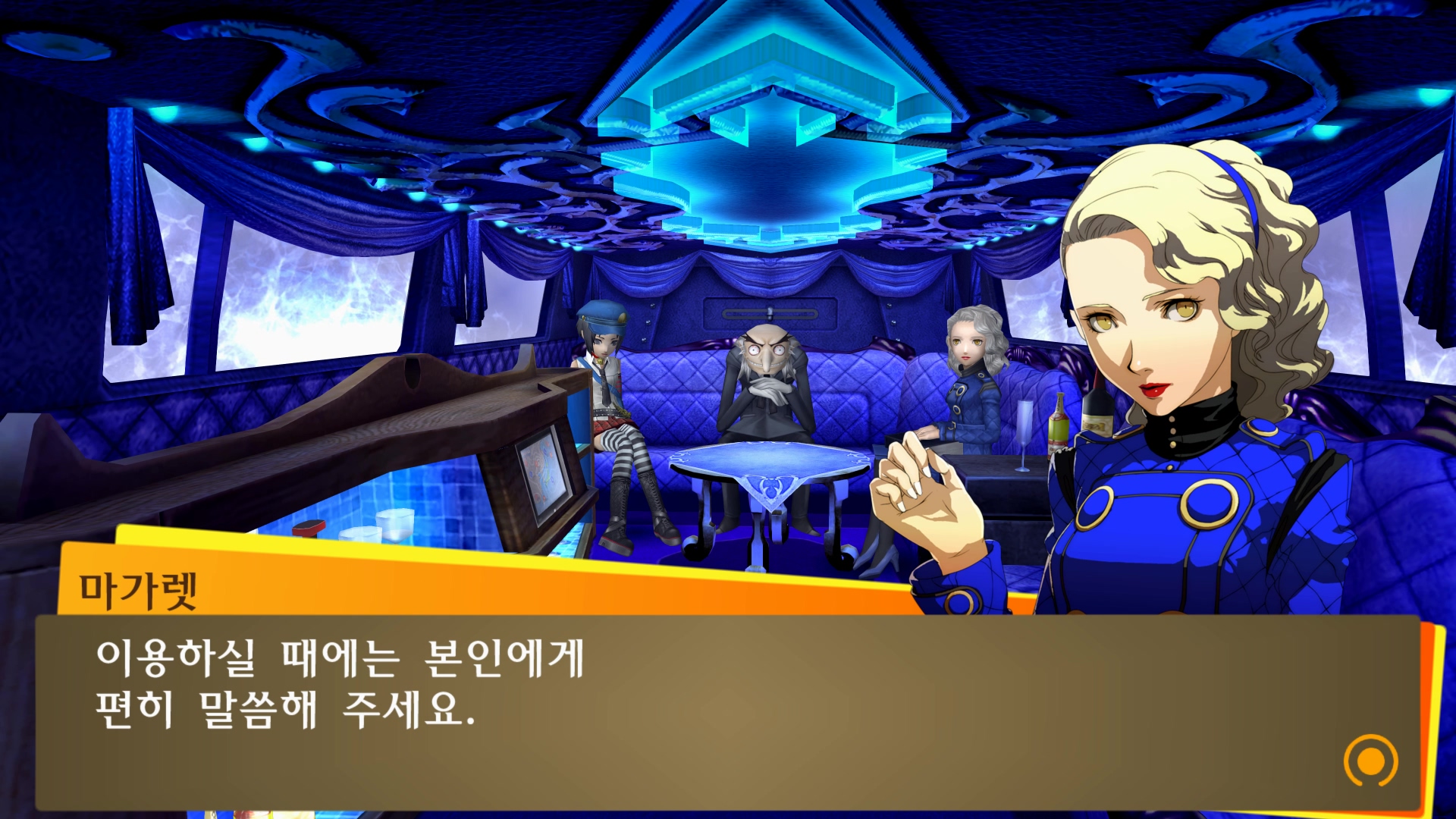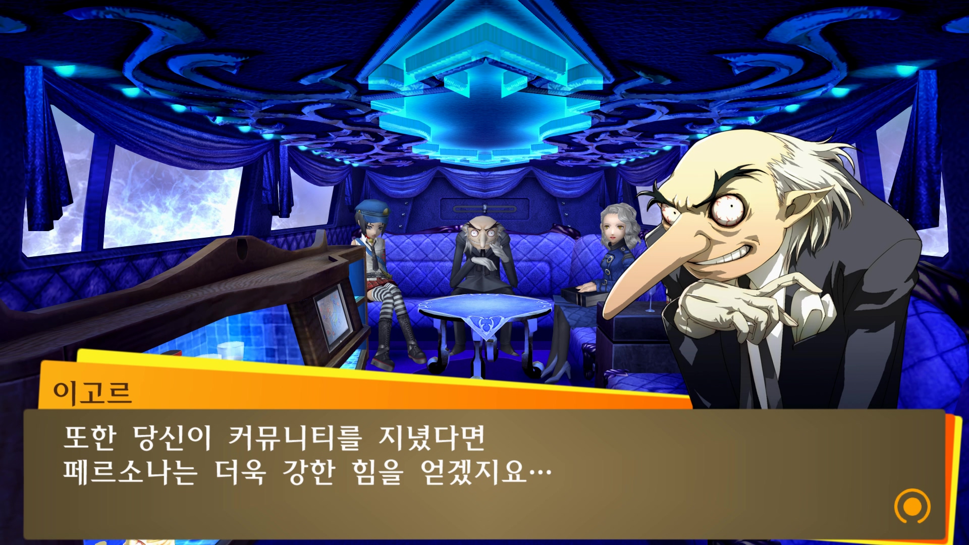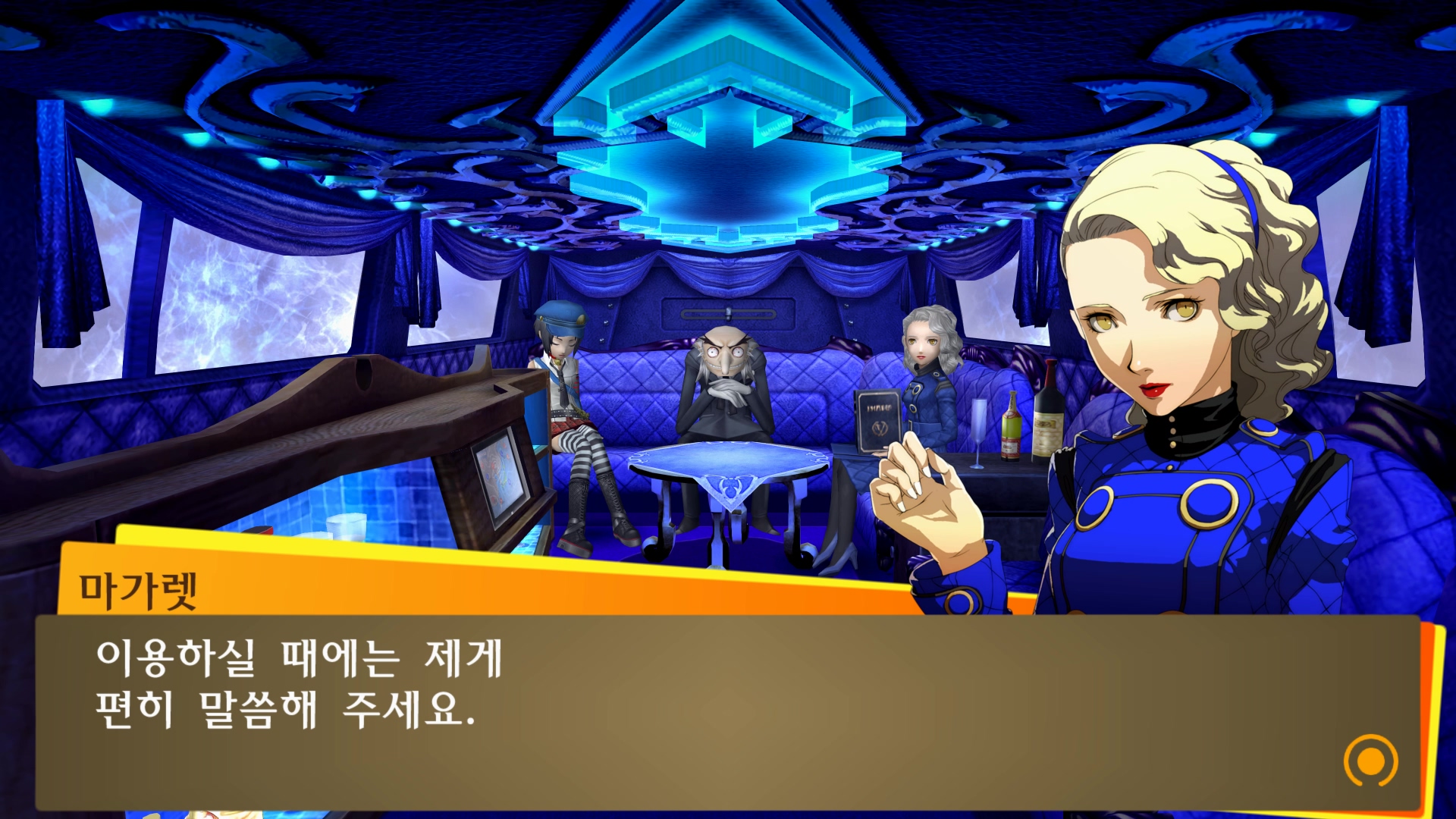 벨벳룸에서 할 수 있는 것들을 설명해주는군요.