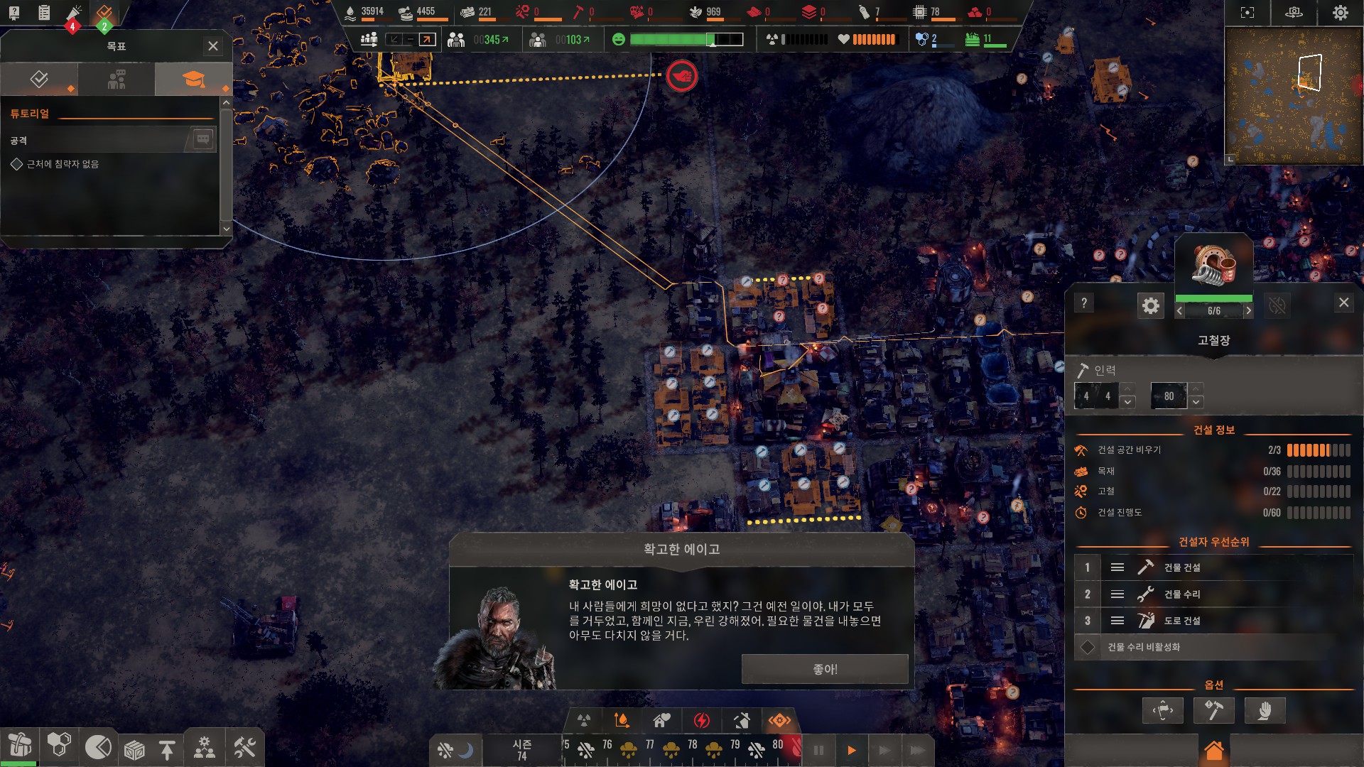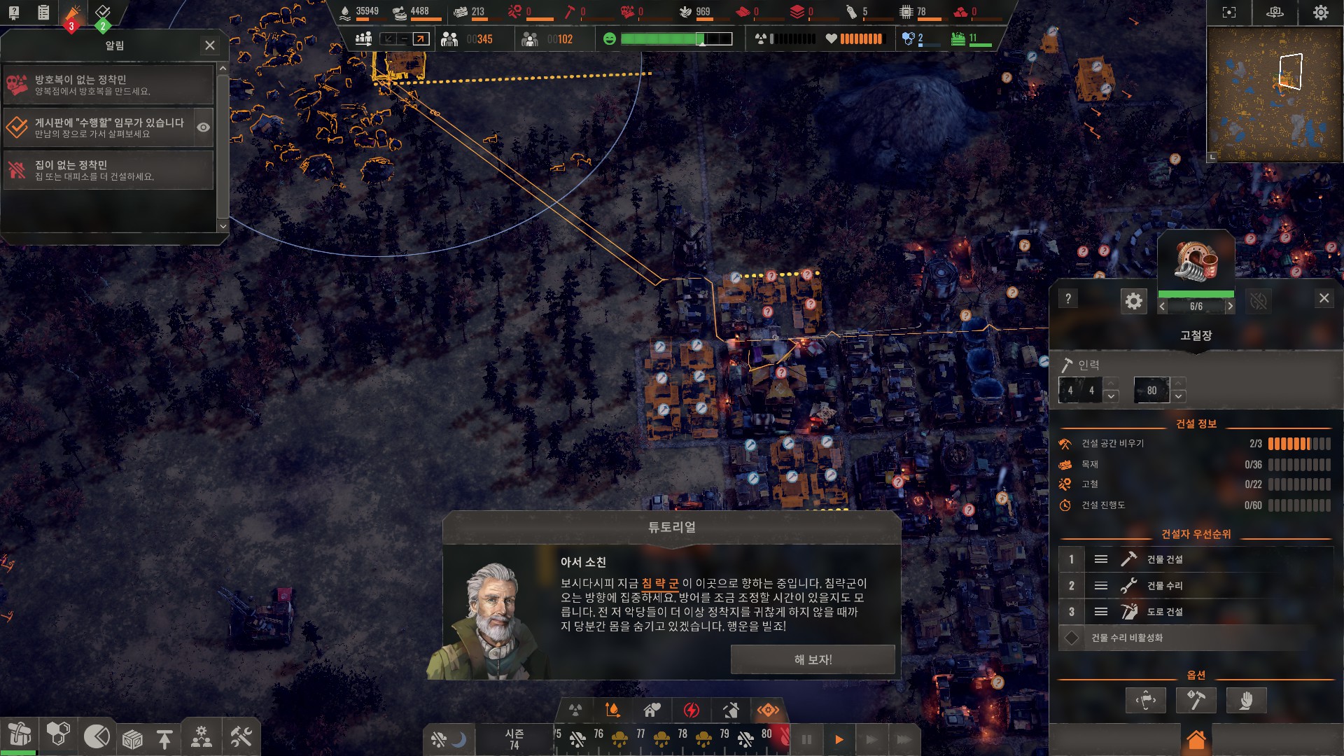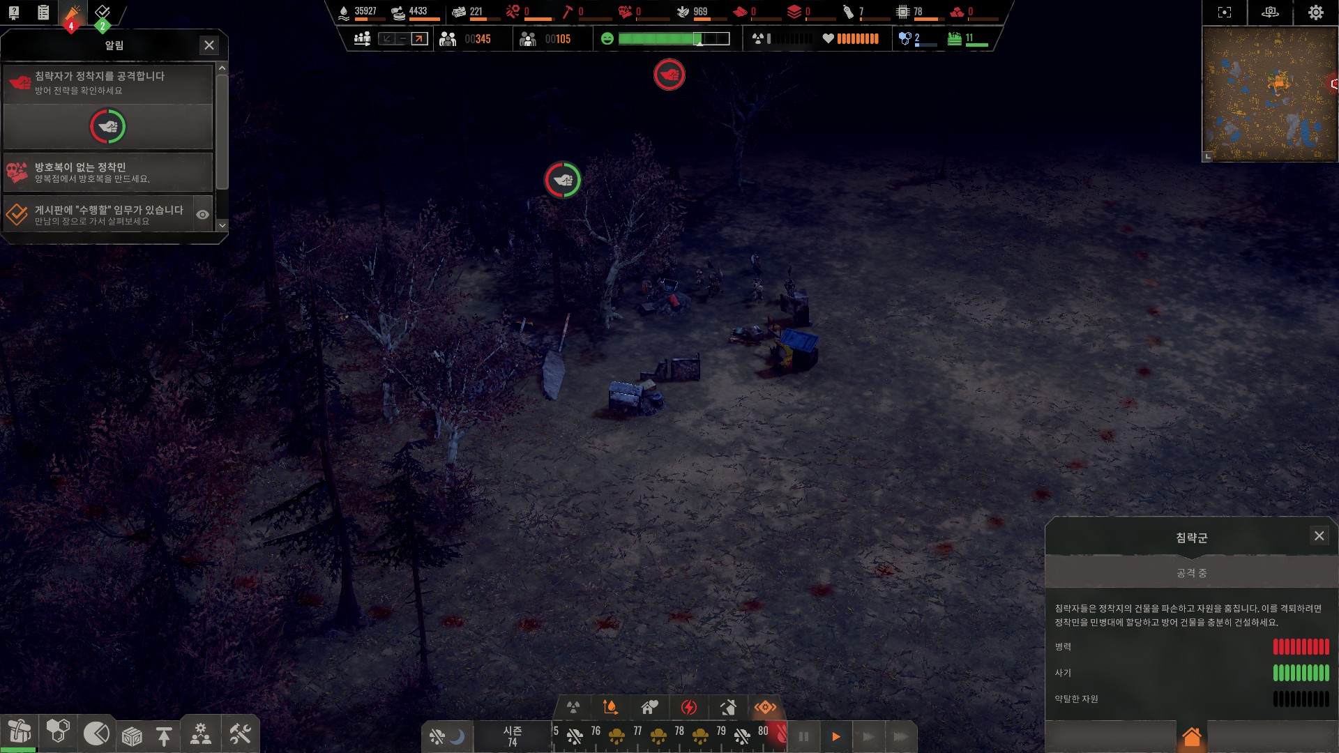 방어 재대로 하려면 적들 오는 방향에 방어 우선깃발 설치해야합니다.