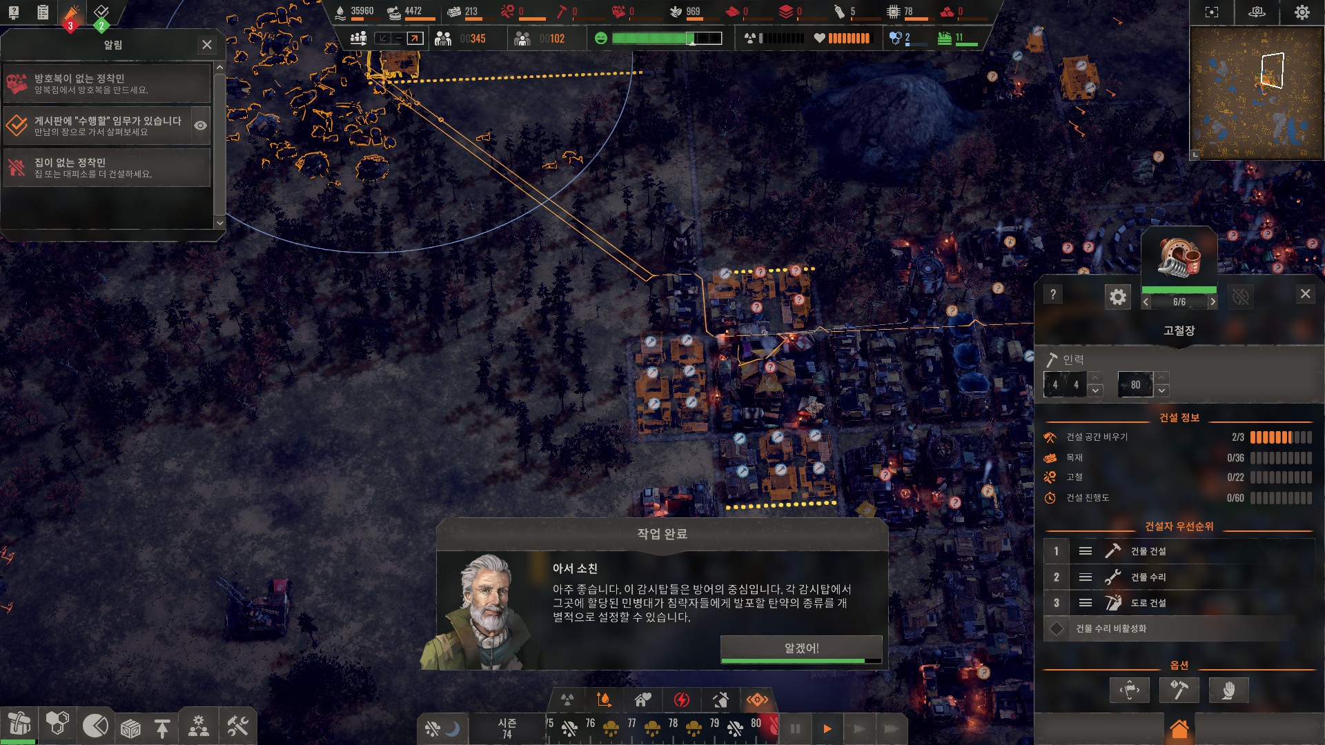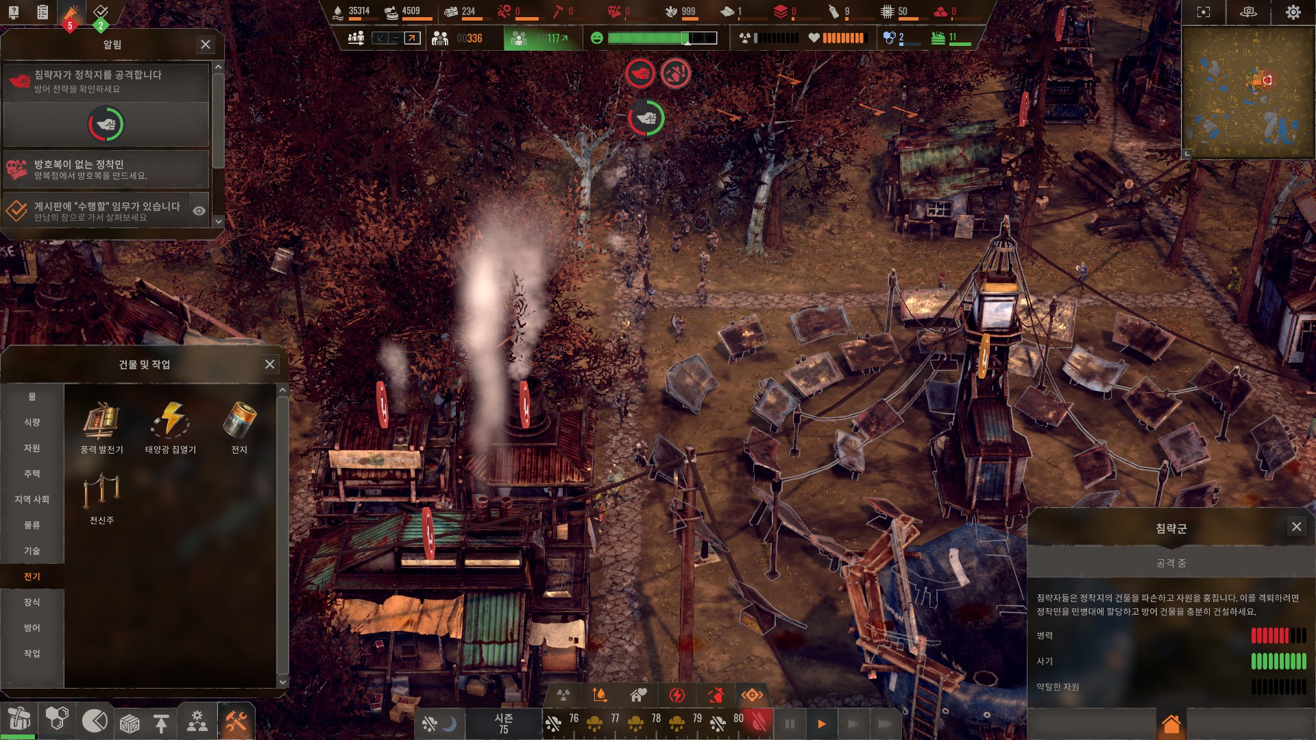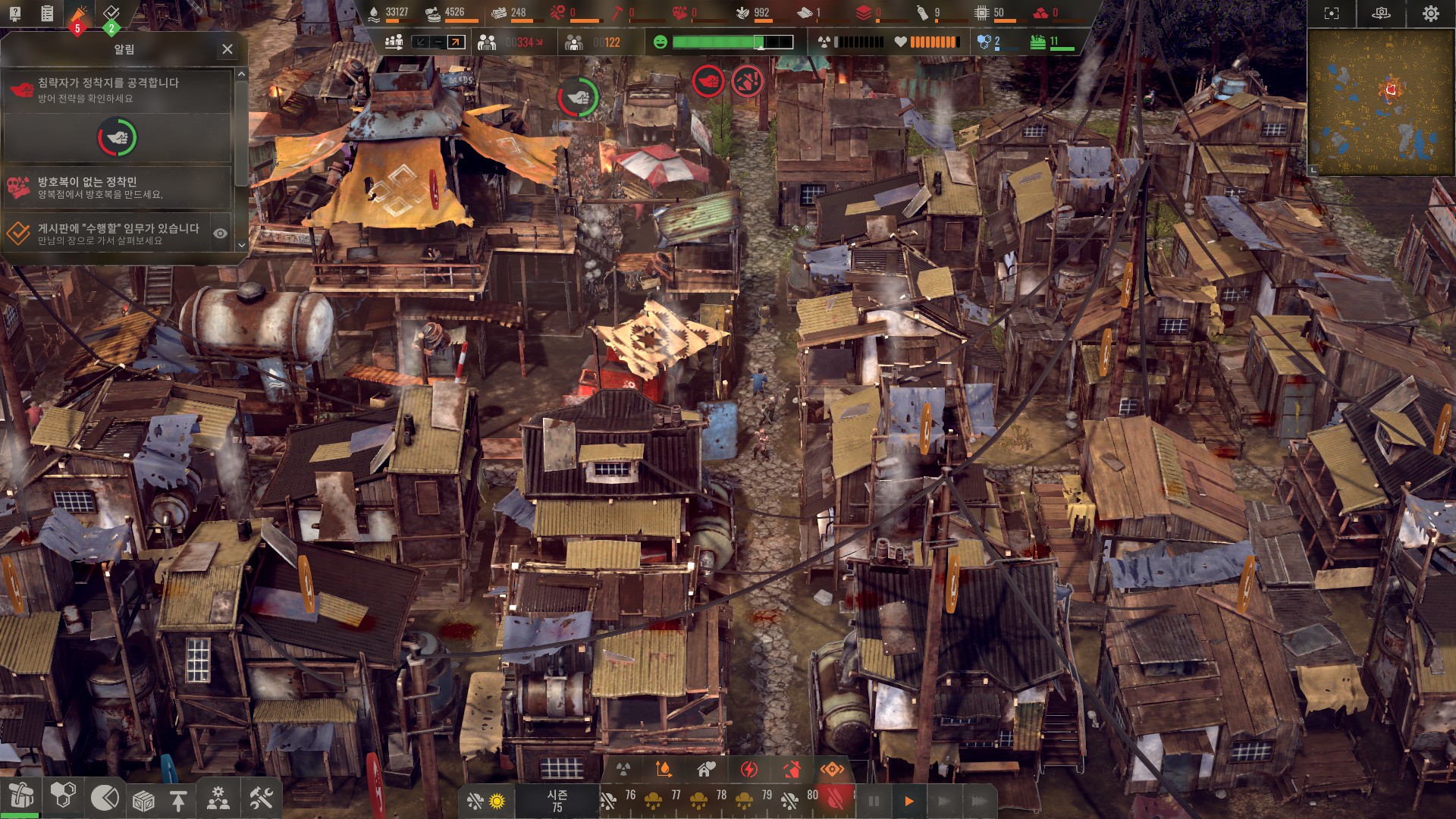 방어 재대로 하려면 적들 오는 방향에 방어 우선깃발 설치해야합니다.