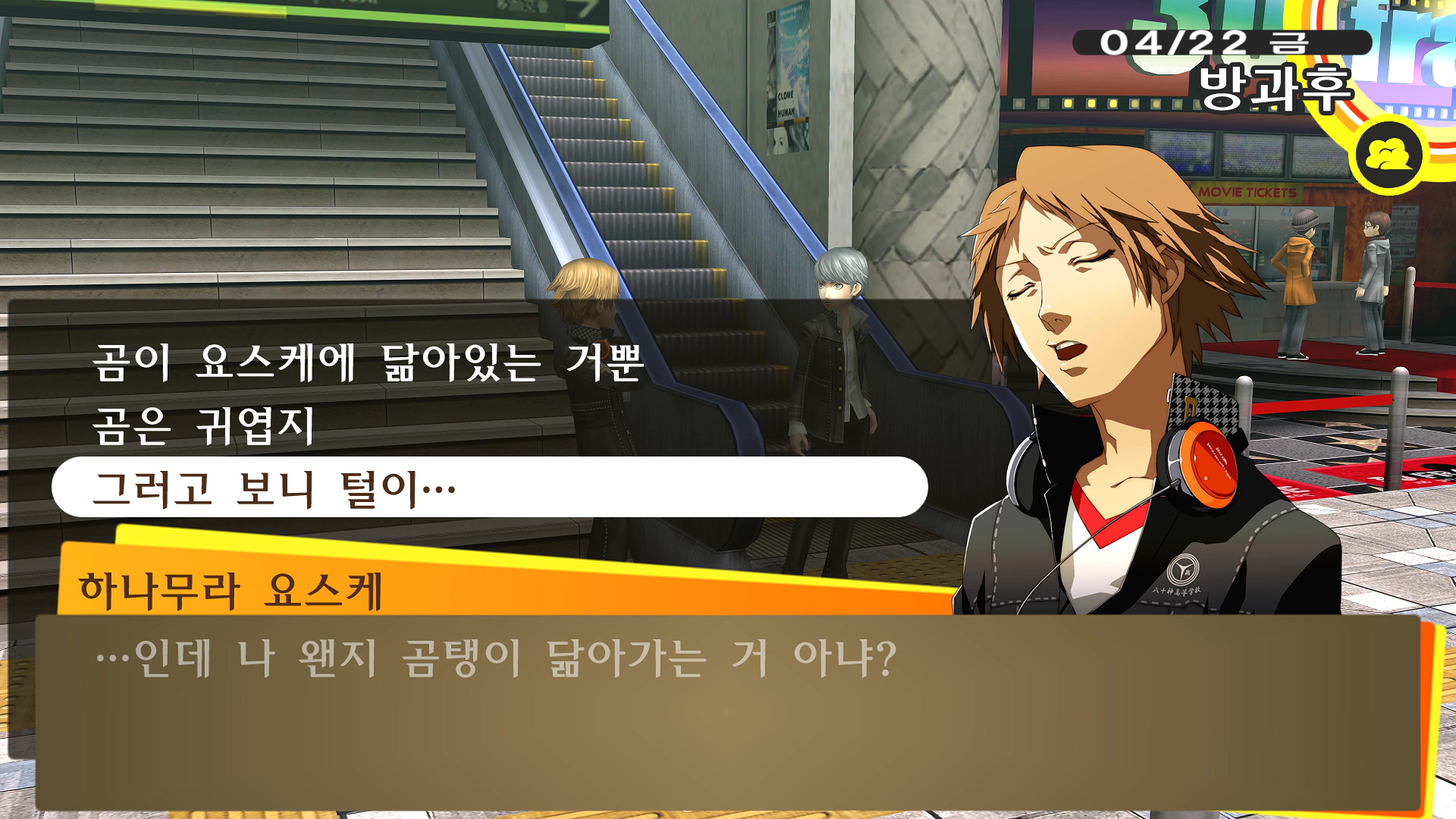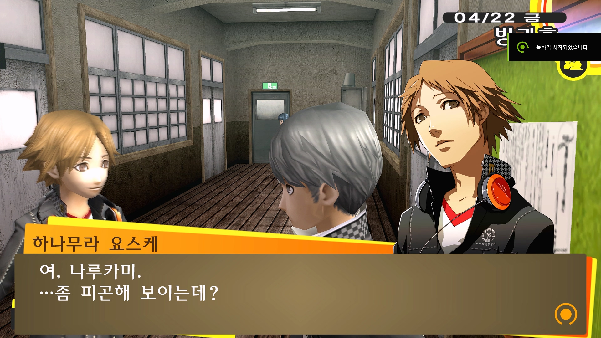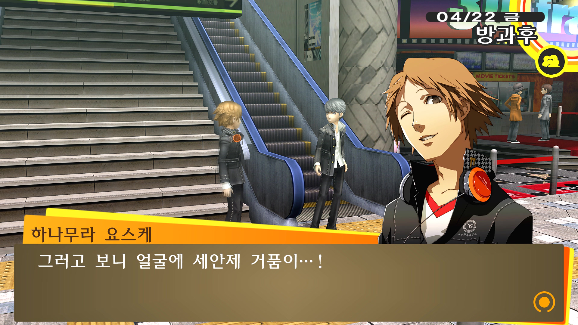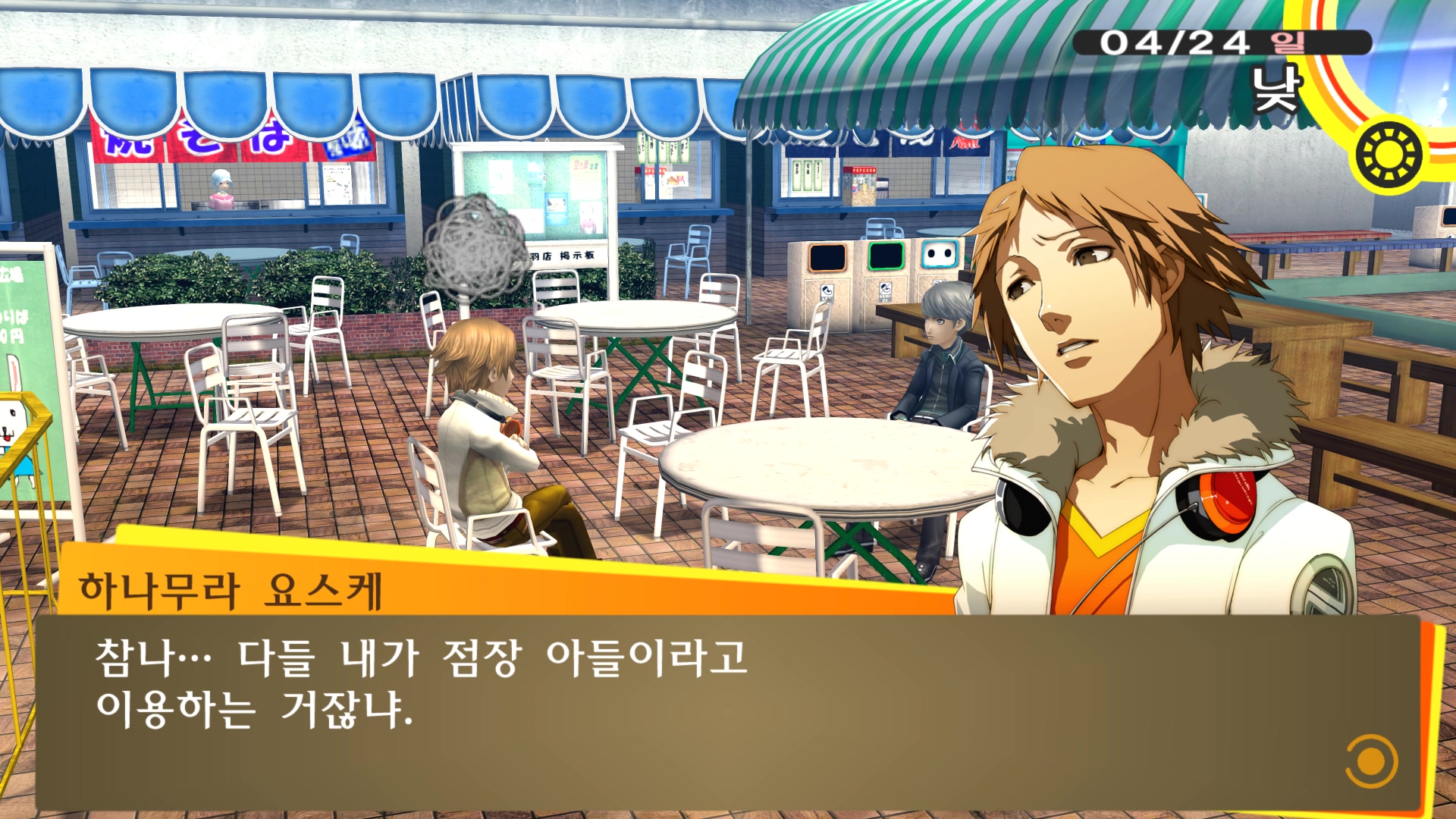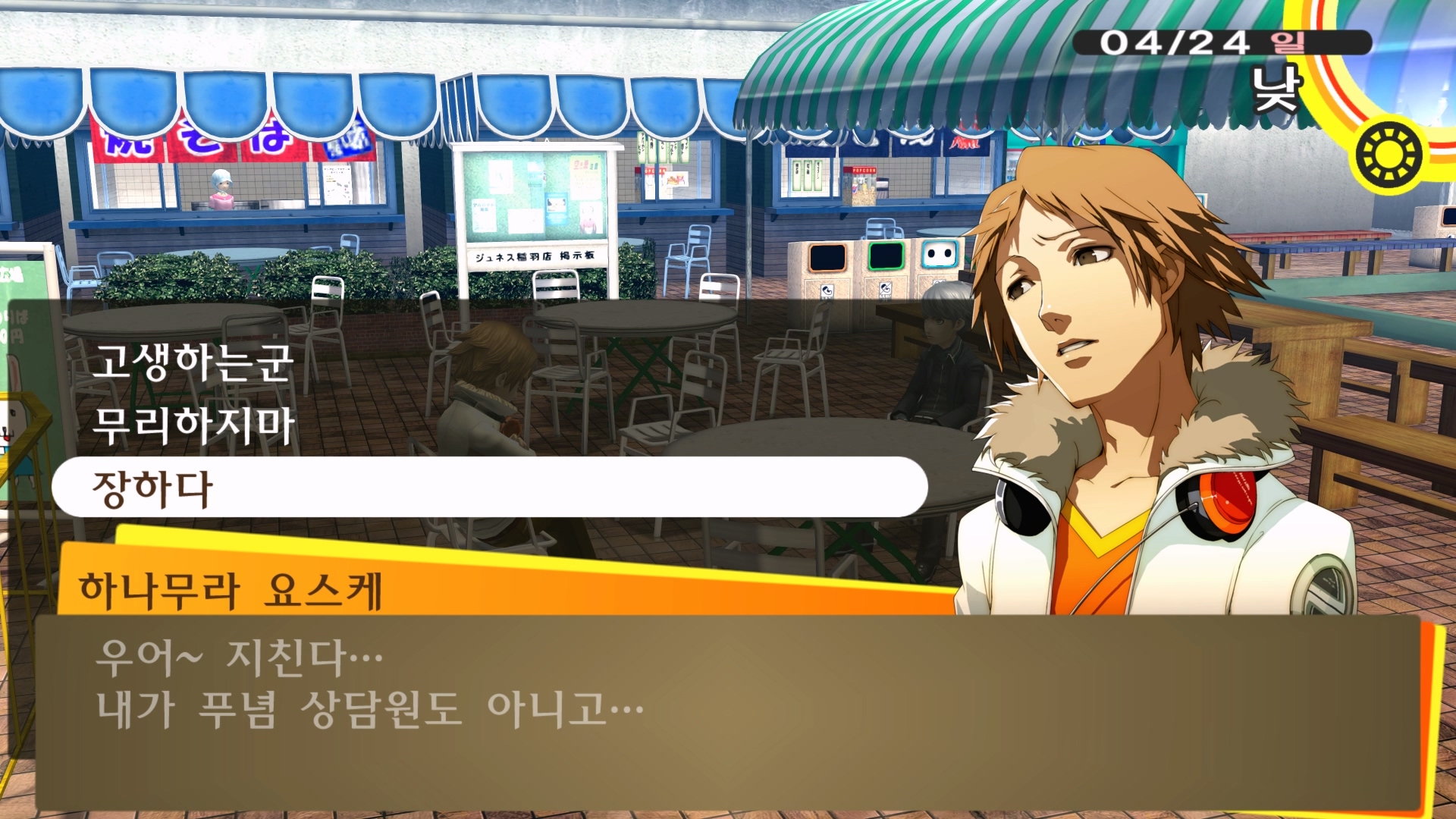페르소나4에서 진히로인 이라는 농담을 듣고 있는 료스케....
