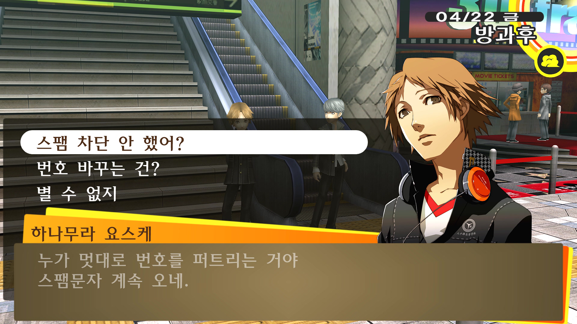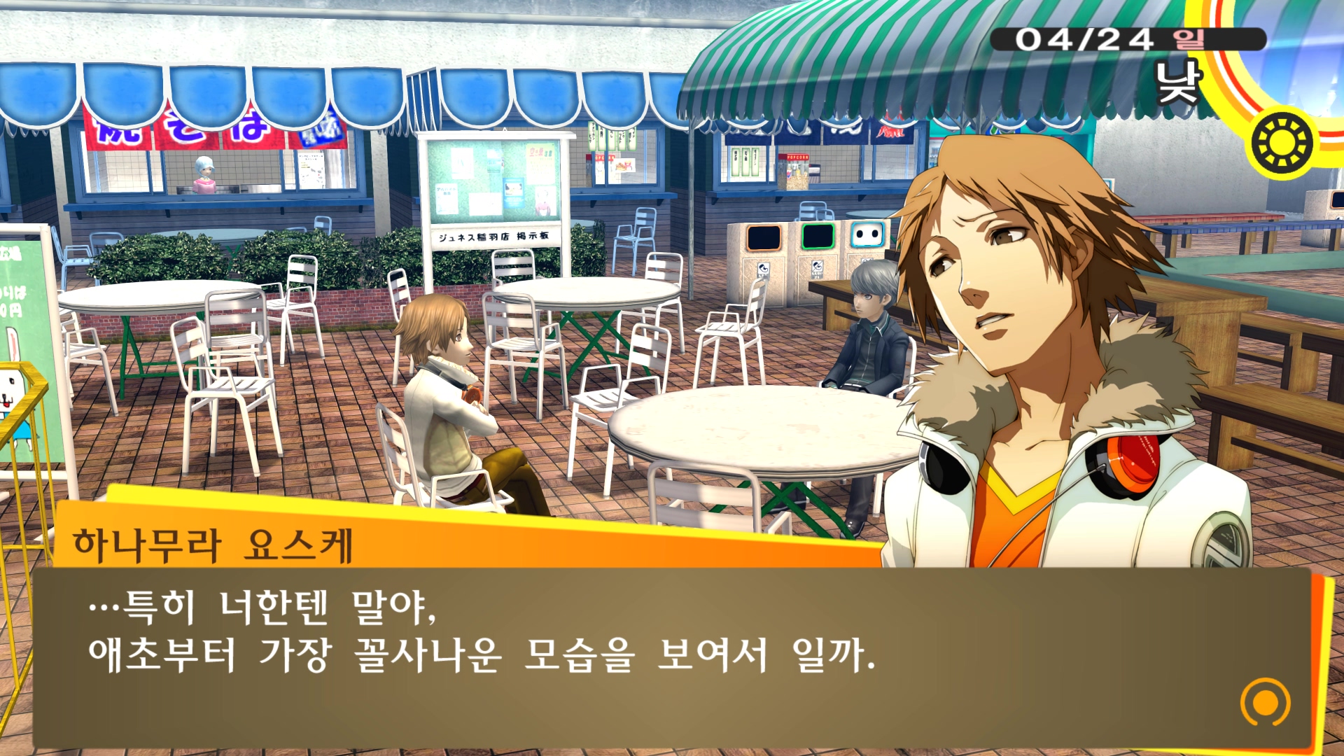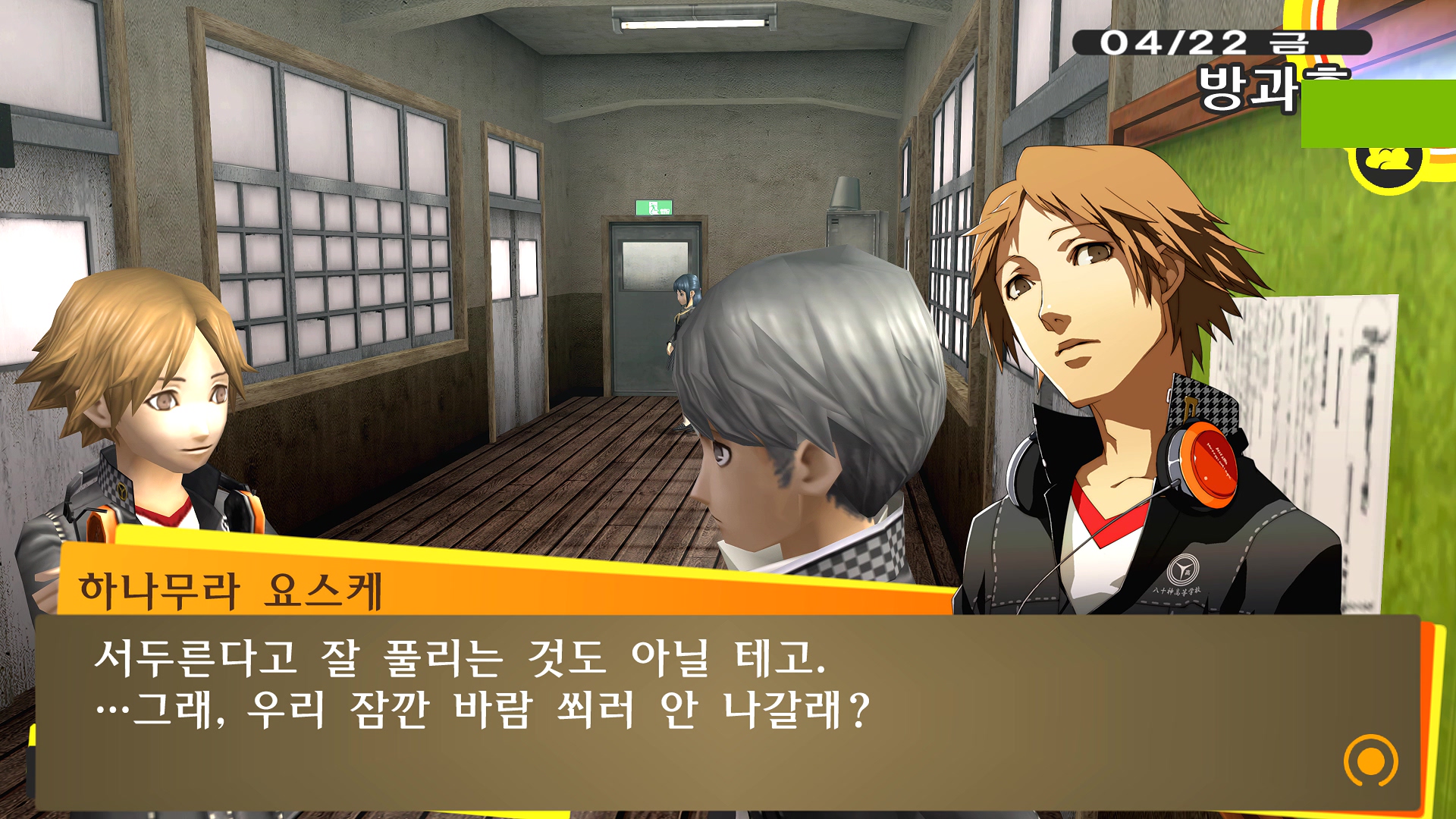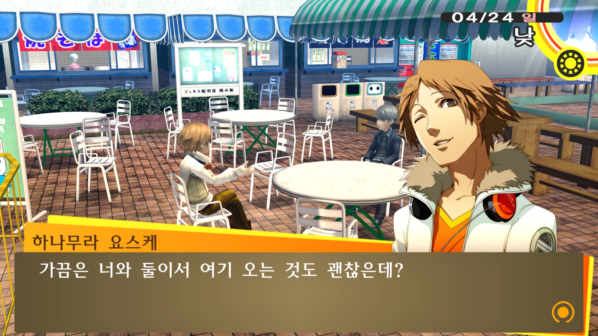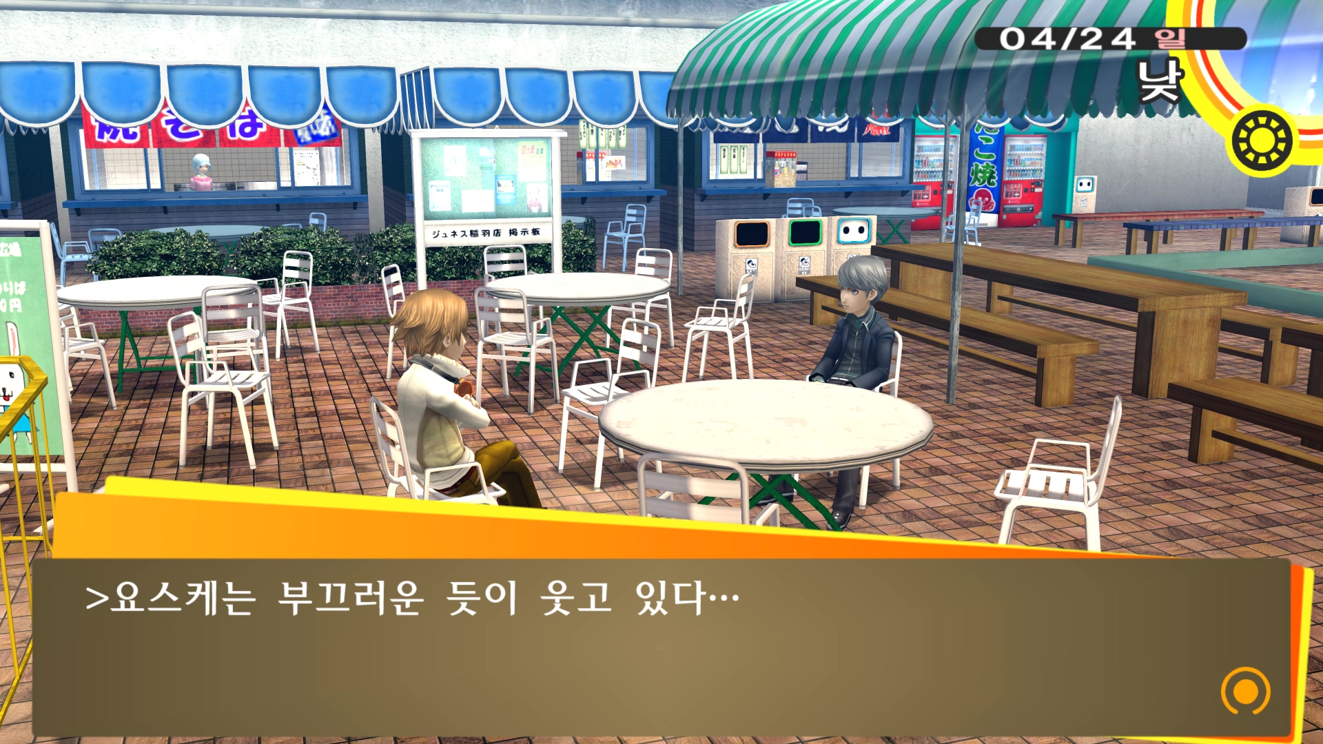 페르소나4에서 진히로인 이라는 농담을 듣고 있는 료스케....